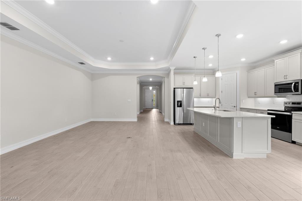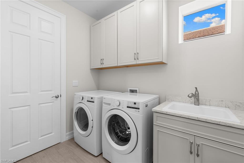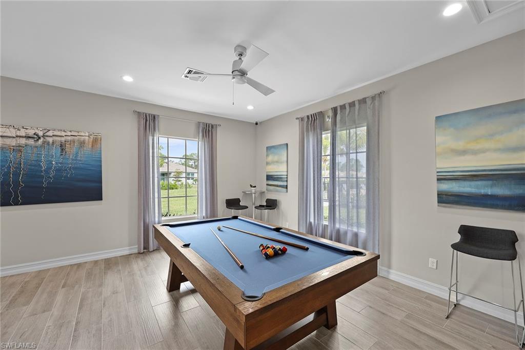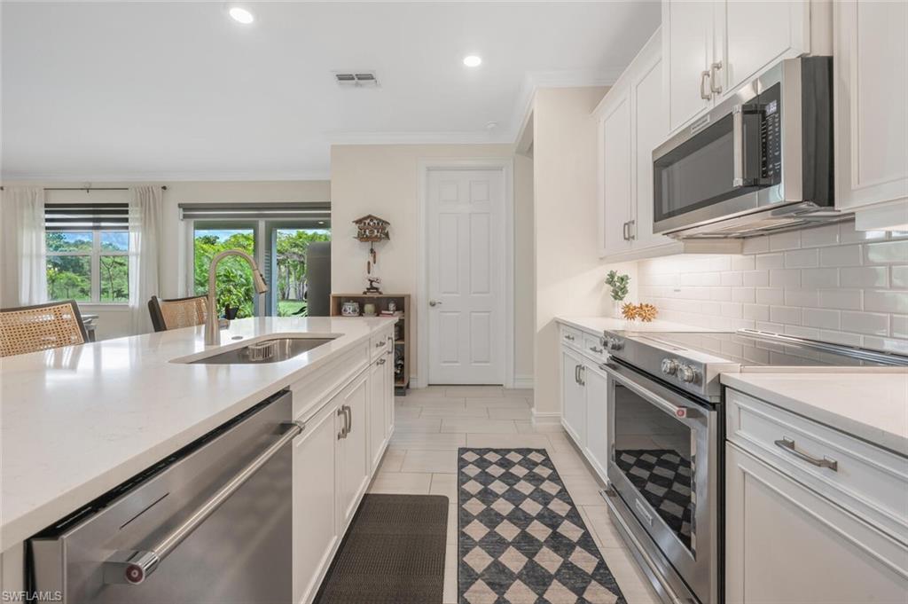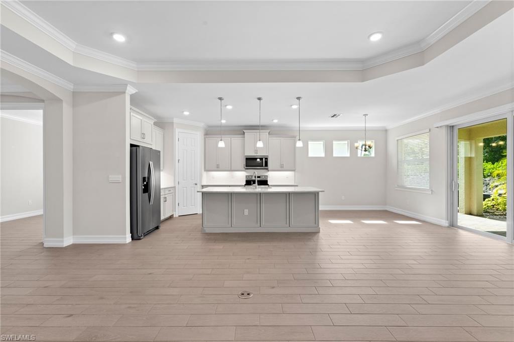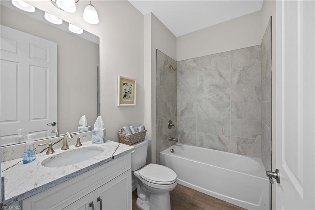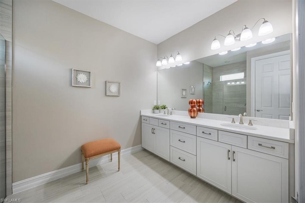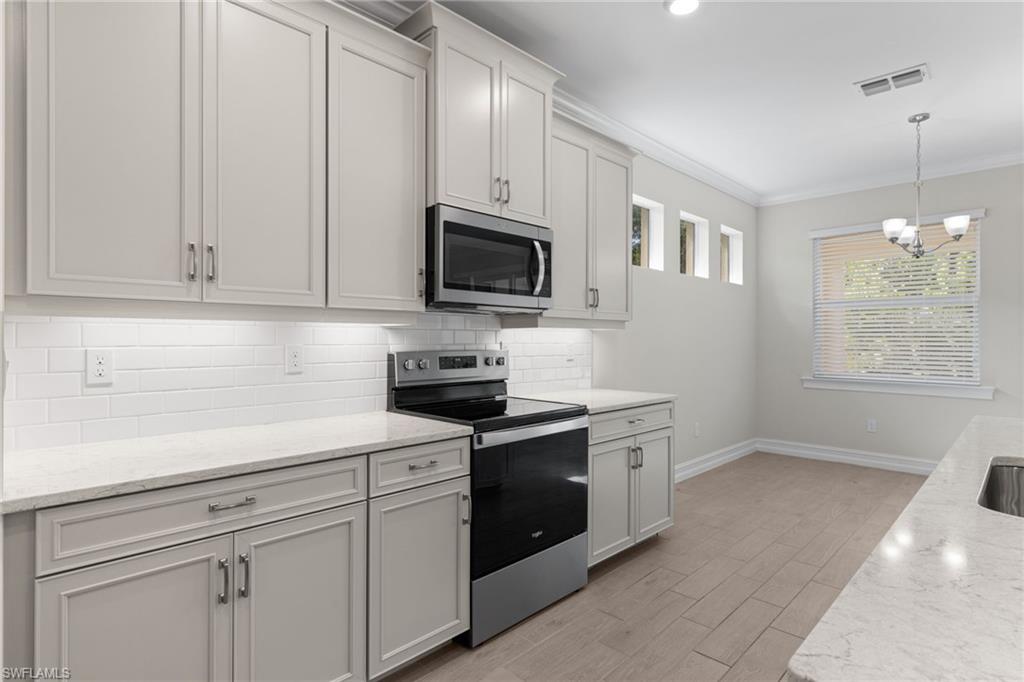 Oversized lot and fenced in backyard! This brand-new, move in ready 2024 designer home boasts 4 bedrooms, 2 baths offering a sophisticated blend of high-end finishes and modern elegance throughout. Below market financing available, see remarks. The light and bright open floor plan is adorned with chic designer furnishings, board and batten carpentry accents, and exquisite lighting fixtures throughout. The spacious kitchen is a showstopper, featuring an expansive quartz island, Whirlpool appliance suite, a walk-in pantry, and upgraded faucets and hardware. For optimal privacy, the primary suite is tucked away in its own serene retreat, complete with a spa-like ensuite bath featuring dual vanities, a walk-in shower, and refined finishes. Meanwhile, the guest bedrooms are thoughtfully positioned in their own wing, offering a private sanctuary for family and visitors. The fourth bedroom serves as a versatile space, perfect for a home office, media room, or additional guest accommodations. Beyond your stunning interior, this home is part of a vibrant community where you can indulge in resort-style amenities, including a clubhouse with a Social & Game Room, a state-of-the-art fitness center, a sparkling pool with lap lanes, and pickleball & bocce courts. Perfectly situated just minutes from shopping, dining, and the sun-drenched Gulf beaches of downtown Olde Naples and Marco Island, this is truly Naples living at its finest.