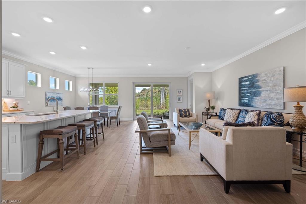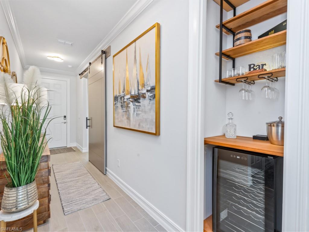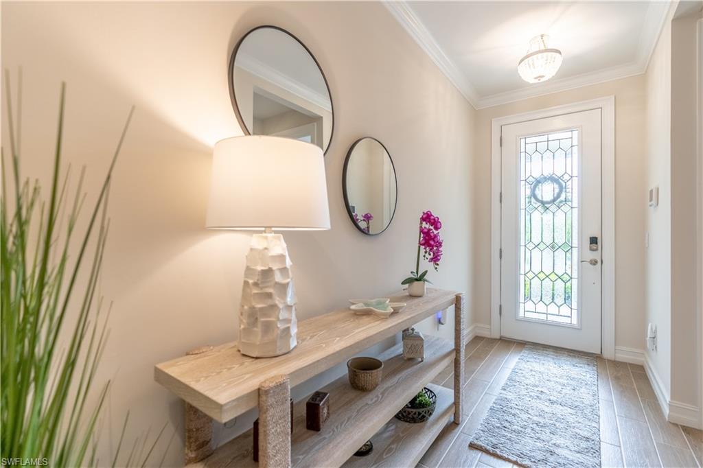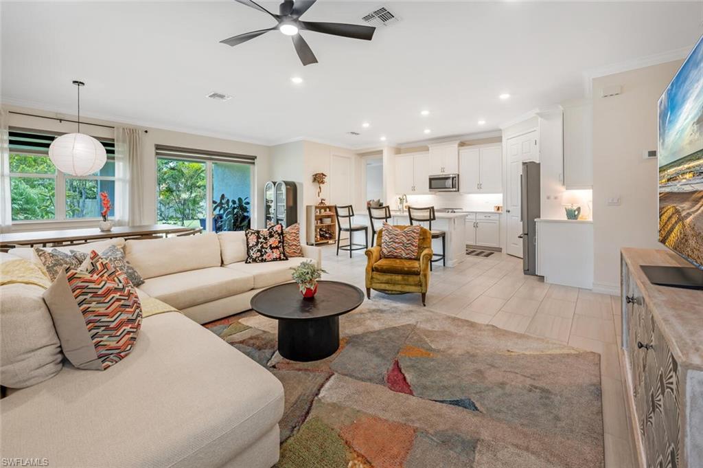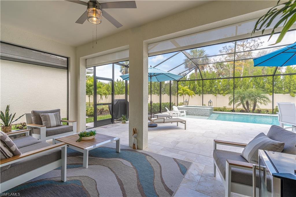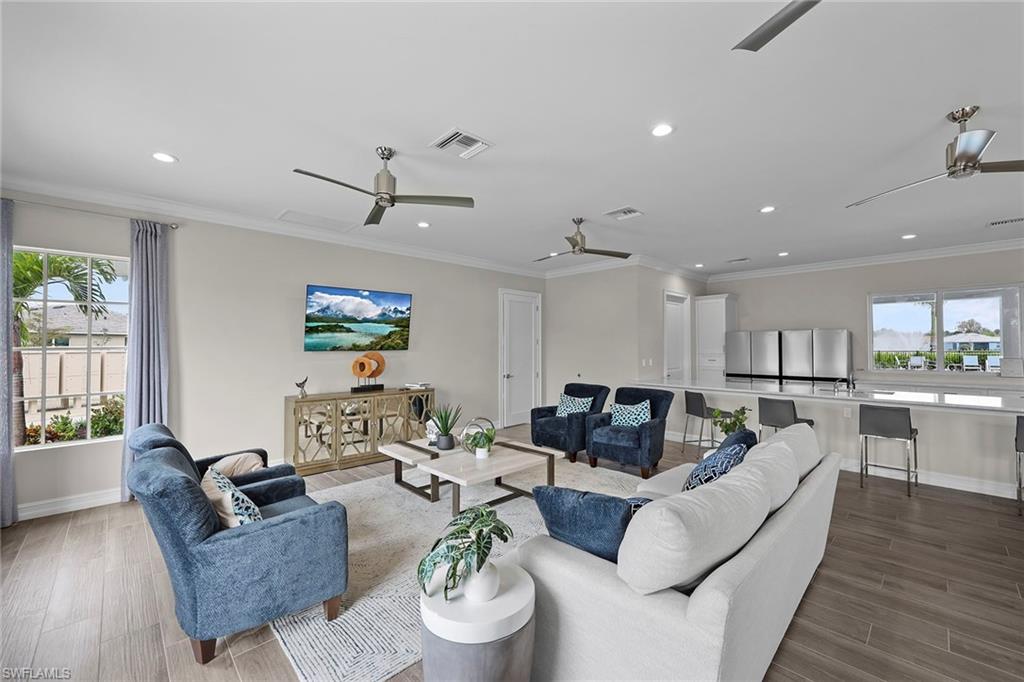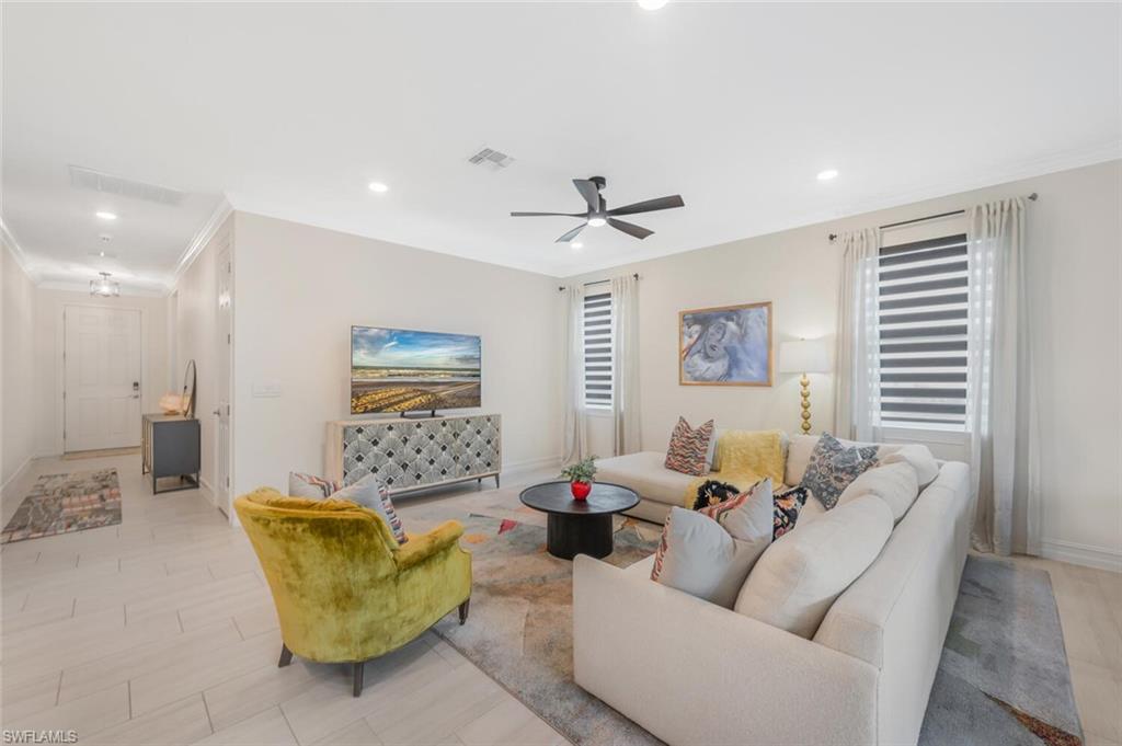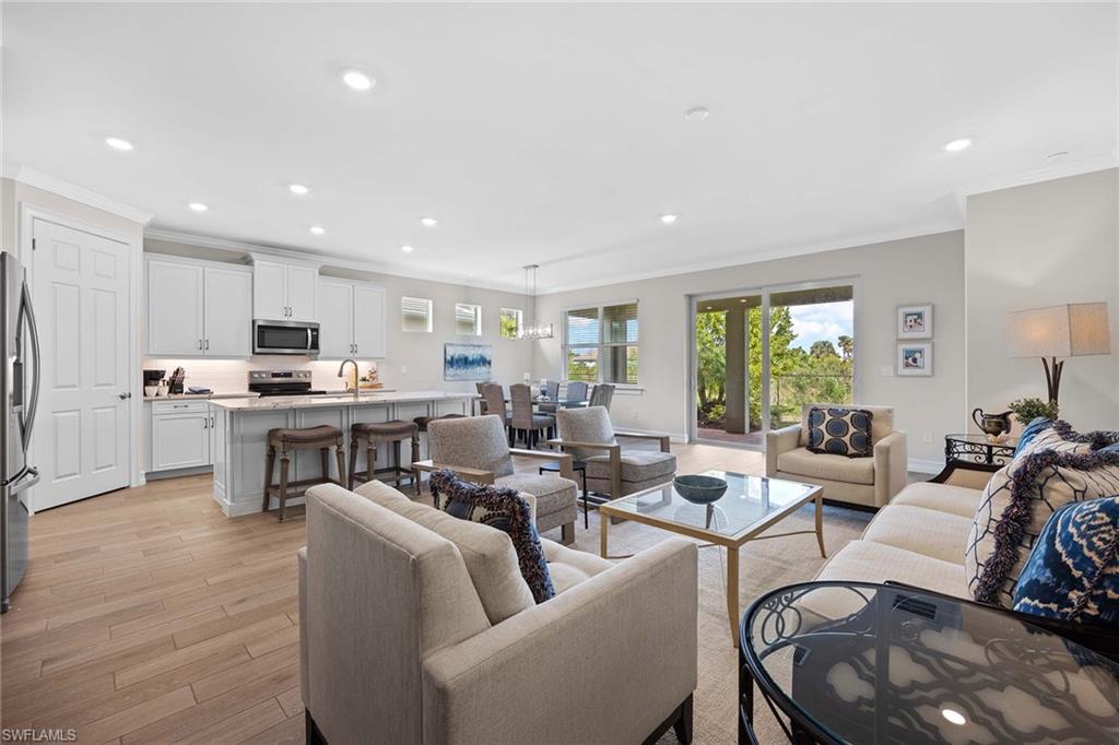 Stunning single family home with Upgrades, Resort-Style Amenities, Room for a Pool, and Prime Location. Discover this gorgeous, light-filled home in Tamarindo, ideally situated in one of the community’s most peaceful and desirable locations. Perfectly positioned just 15 minutes from the beautiful beaches, world-class shopping, dining, boating, and entertainment of both Naples and Marco Island, this residence offers exceptional value and an effortless Florida lifestyle. Thoughtfully designed with coveted southern rear exposure, the home is bathed in natural light throughout the day and enjoys warm breezes and glowing sunsets. Inside, the owners have added more than $17,000 in custom enhancements that elevate both style and functionality. Features include a sophisticated built-in bar, designer-selected lighting fixtures, custom window treatments, a bespoke barn door, epoxy-coated garage flooring, and additional refined touches that set this home apart. Premium builder upgrades further enhance the living experience with quartz countertops, impact-resistant windows and doors, crown moulding, wood-look tile flooring, stainless steel appliances, a frameless glass shower, and integrated smart-home technology for added convenience and peace of mind. The spacious backyard provides ample room to design your own custom pool and spa, allowing you to create the private outdoor oasis you’ve always envisioned. Located in the preferred “X” flood zone, this home offers lower insurance considerations and added security. Tamarindo residents enjoy an impressive suite of resort-style amenities with low HOA fees, including a beautiful clubhouse, sparkling community pool, modern fitness center, pickleball and bocce courts, a social room, game room, and more. The neighborhood’s convenient location near Collier Boulevard provides quick access to parks, golf, dining, shopping, boat ramps, and the airport, making everyday living effortless. For buyers seeking convenience, an optional furniture and décor package is available for a truly turnkey move-in. Beautifully maintained, stylishly upgraded, and ideally located—this exceptional home invites you to start living the Southwest Florida lifestyle you deserve!