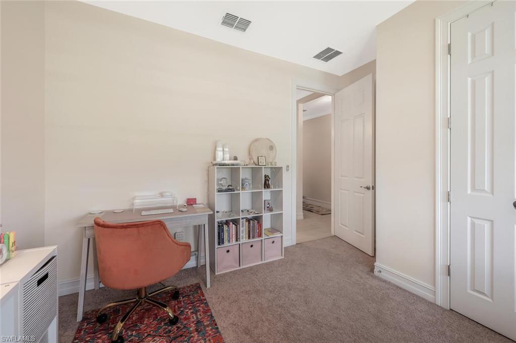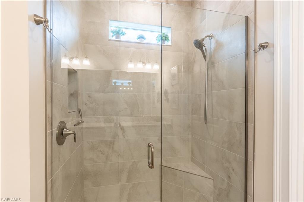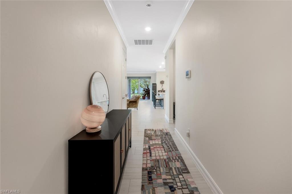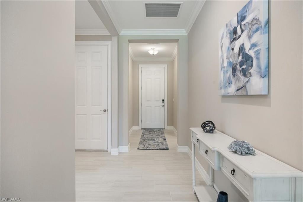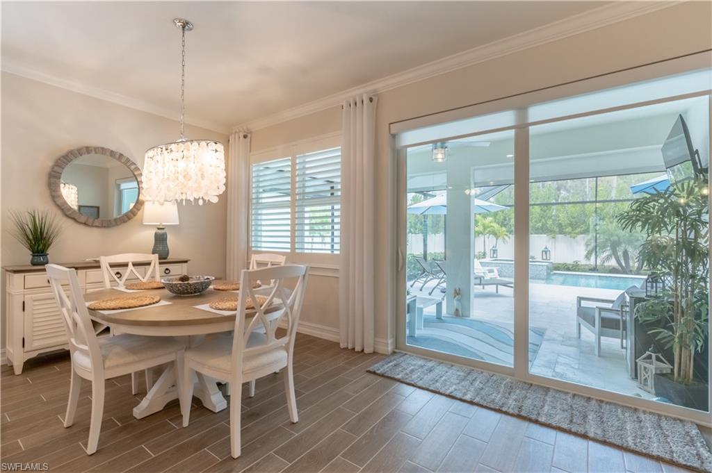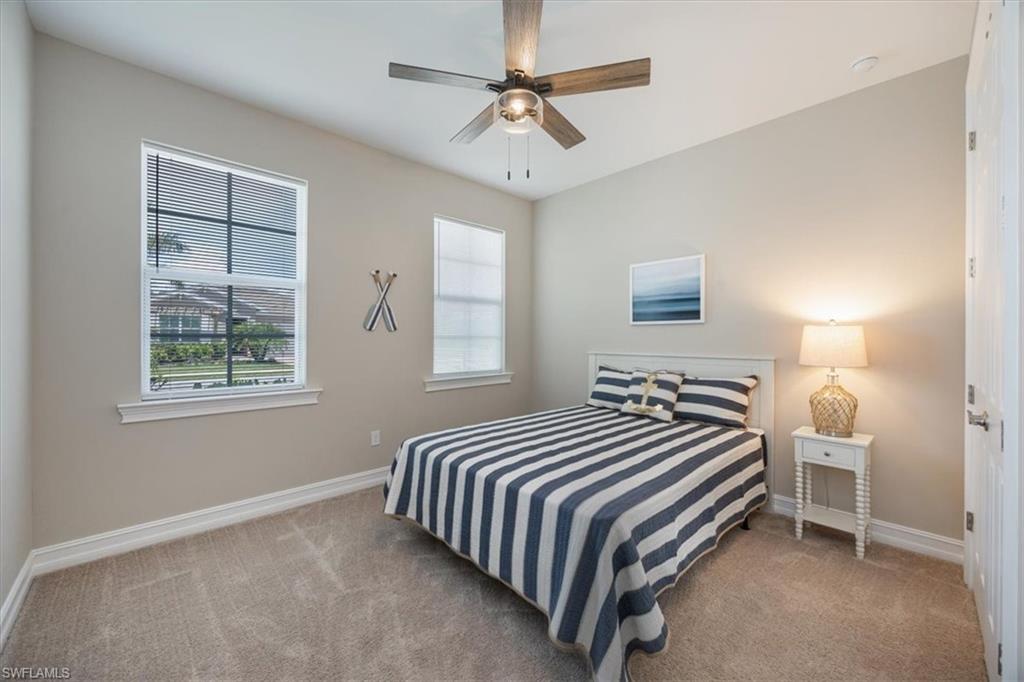 Newer construction 2023! This beautifully designed Shelby model features 3 bedrooms, a private den, and 2.2 baths(Outdoor Pool Bath), plus a spacious foyer and wide hallway for a bright, open feel. The well-planned layout offers the primary suite split from the secondary bedrooms, ideal for privacy. Set on a south-facing private lot in a premier South Naples location and Flood Zone X, this home is a standout choice for those who love the peace of mind, efficiency, and fresh finishes that new construction delivers. The open-concept design highlights high ceilings, crown molding, tray ceilings in both the living area and primary bedroom, and durable gray wood-look tile flooring throughout. The chef’s kitchen features a large quartz island with seating, Whirlpool stainless steel appliances, soft-close cabinetry with crown molding, a walk-in pantry, and designer pendant lighting—creating the perfect space for entertaining or relaxing at home. The expansive primary suite offers dual vanities with quartz countertops, a soaking tub, large walk-in shower with a bench, and a private water closet. The laundry room includes front-loading washer and dryer, upper cabinetry, and a utility sink. Additional highlights include impact windows, recessed lighting, a smart home system with Qolsys IQ panel, and an oversized 32.6’ deep garage—perfect for a golf cart, toys, or extra storage. Located in a smaller, well-maintained community of just 251 homes, this neighborhood offers a rare combination: resort-style amenities with low quarterly HOA fees. Enjoy a clubhouse, resort pool, pickleball, bocce, and game room—all included in a fee of just \$903/quarter, which also covers irrigation and lawn care. Additionally, flexible leasing allows for up to three rentals per year, each with a 30-day minimum. This home is conveniently located approximately 9 miles from 5th Avenue, 13 miles from Marco Island, and 5 miles from I-75, providing fast access to Naples' best beaches, dining, shopping, and medical services. Move-in ready, thoughtfully designed, and located in one of South Naples’ most accessible communities—don’t miss this exceptional opportunity.