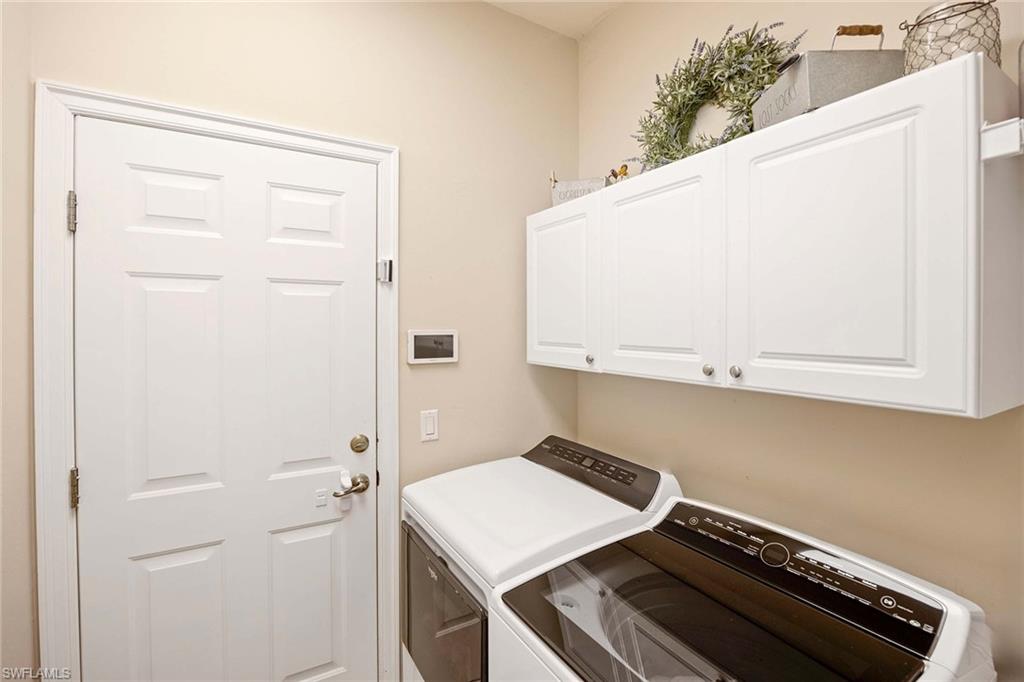 Spacious 3BR/2BA First-Floor Villa in Tarpon Bay with Preserve Views + Smart Home Upgrades Welcome to this beautifully maintained first-floor villa offering over 1,760 sq ft of thoughtfully designed living space with tranquil preserve views. Built in the early 2000s by WCI, known for their luxury lifestyle communities, this home delivers comfort, privacy, and smart modern updates throughout. Interior Features 3 Bedrooms | 2 Bathrooms with split floor plan Spacious primary suite with large walk-in closet Formal dining area that seats eight Open kitchen with natural gas stove/oven, walk-in pantry, and ample counter space Third bedroom functions perfectly as a home office or flex space Recent Upgrades & Smart Features (2024): New garage door opener with keyless + app-enabled entry Updated door, bath, and cabinet hardware (except primary bath sinks) All new light fixtures & fans, app-enabled with smart LED bulbs throughout (fluorescents remain only in kitchen/laundry) USB/USC outlets in bedroom New toilets installed New roof (installation scheduled and paid for by owner) Resort-Style Amenities at Tarpon Bay: Infinity-edge pool overlooking a 15-acre lake Spa, sun deck, and covered outdoor dining with BBQ grills Elegant clubhouse with formal foyer, smart TV, and surround sound Catering kitchen, ideal for private events Business center with Wi-Fi, library, and printers Fitness center with cardio/strength machines, group exercise room, locker rooms, TVs & music Billiards and card room Lighted Har-Tru courts for tennis, pickleball, basketball & bocce Children’s play center, lakefront gazebo, fishing, canoe/kayak storage, and walking/jogging paths This villa offers a rare combination of modern updates, peaceful natural surroundings, and unmatched community amenities in one of the most desirable gated communities in the area. Don’t miss this opportunity!