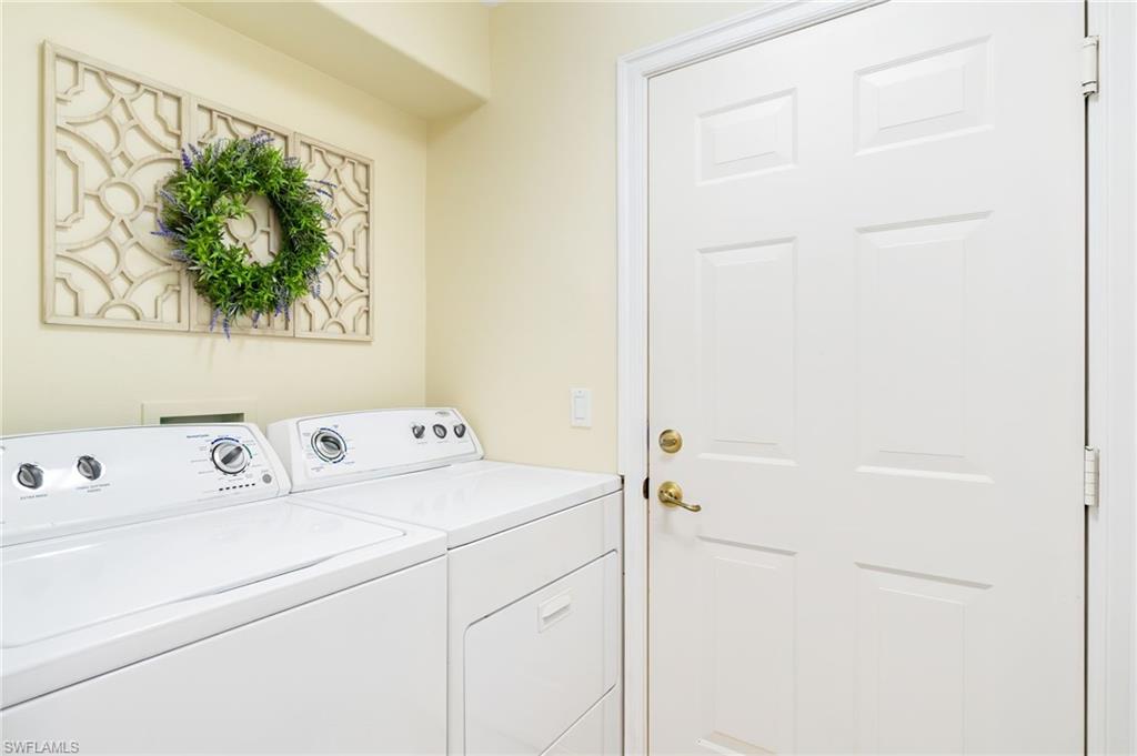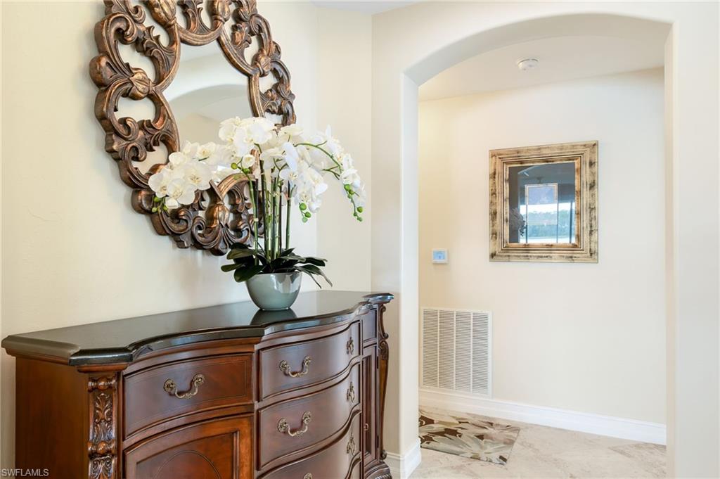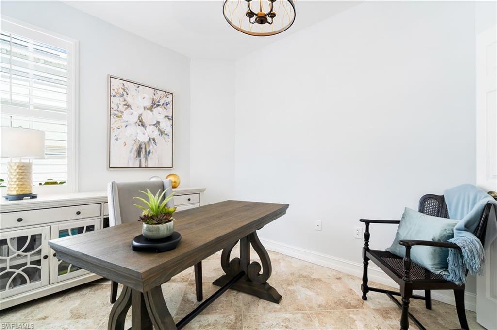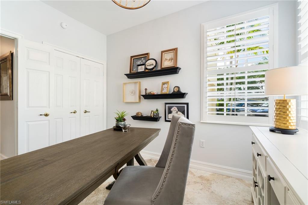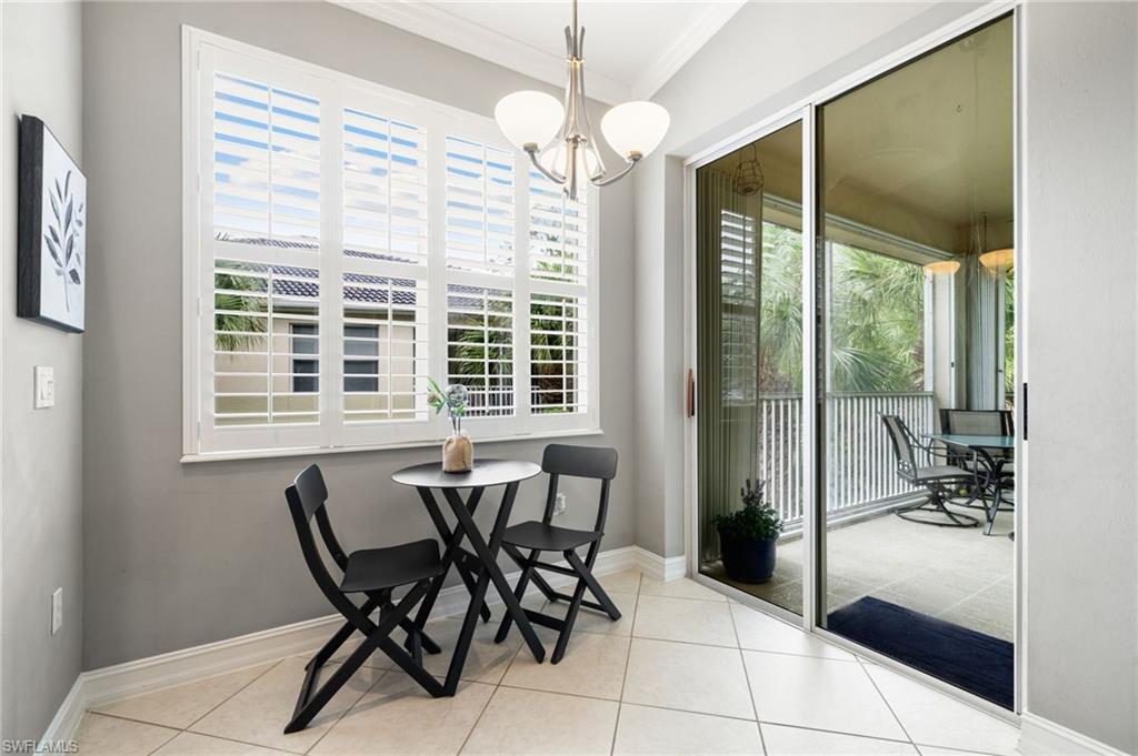 Perfectly placed within Tarpon Bay, this spacious 2nd-floor residence boasts the community’s largest open split floor plan. Offering 3 bedrooms plus a den and a 2-car garage, this home blends comfort, style, and functionality. Inside, you’ll find granite countertops in both the kitchen and baths, crown molding, plantation shutters, and diagonal tile flooring. The kitchen is a chef’s delight with GE slate gray appliances, double oven and a natural gas range, oversized double composite sink, upgraded pantry door, and glass backsplash. Recent updates include a 2024 refrigerator, 2014 AC but 2024 compressor, and tankless water heater, and upgraded bathroom fixtures with a frameless glass shower and pebble tile floor in the primary bath. Added conveniences include an Ecobee Wi-Fi thermostat and a monitored alarm system. The screened lanai overlooks a serene preserve and offers plenty of room for both dining and lounging. Accordion hurricane shutters provide peace of mind. Tarpon Bay is a gated, resort-style community with world-class amenities, including clay tennis courts, pickleball, basketball, volleyball, billiards, gas grills, infinity-edge pool, spa, and fishing pier. Ideally located near I-75 and just minutes to Naples’ pristine beaches, shopping, and dining, this community offers the ultimate Naples lifestyle. NEW ROOF coming this year! Assessment of 18k paid in full!