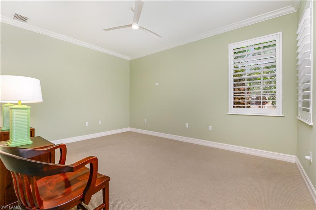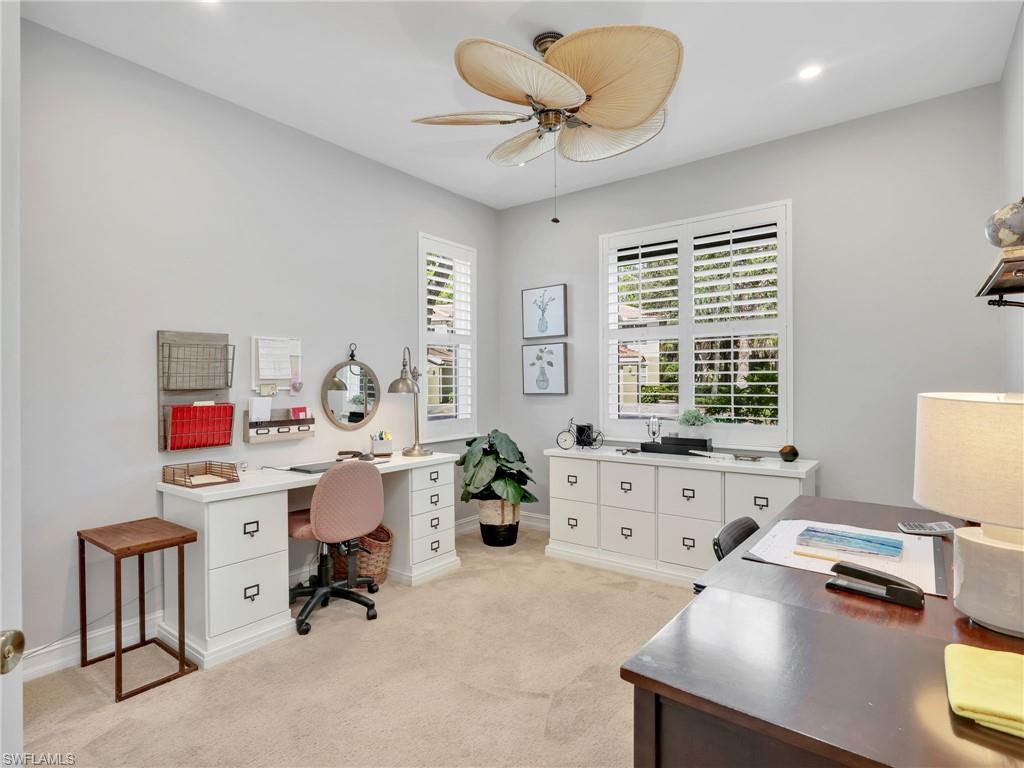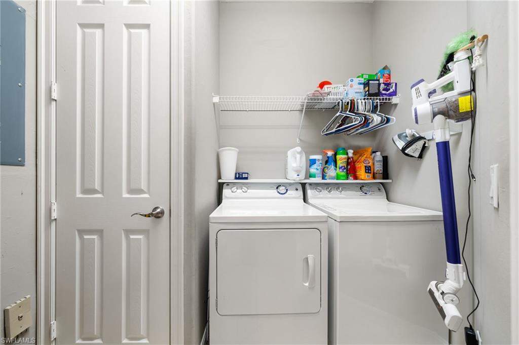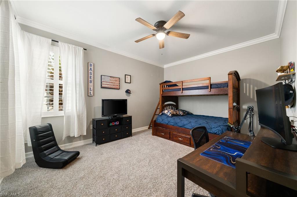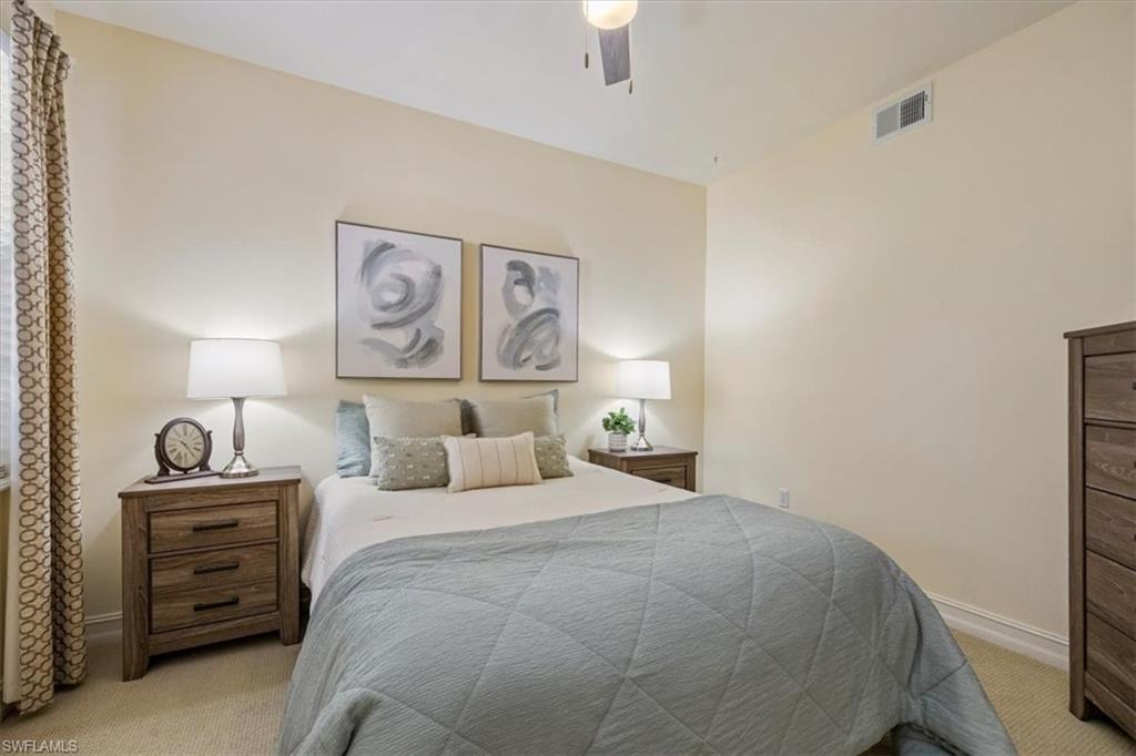Perfectly placed within Tarpon Bay, this spacious 2nd-floor residence boasts the community’s largest open split floor plan. Offering 3 bedrooms plus a den and a 2-car garage, this home blends comfort, style, and functionality. Inside, you’ll find granite countertops in both the kitchen and baths, crown molding, plantation shutters, and diagonal tile flooring. The kitchen is a chef’s delight with GE slate gray appliances, double oven and a natural gas range, oversized double composite sink, upgraded pantry door, and glass backsplash. Recent updates include a 2024 refrigerator, 2014 AC but 2024 compressor, and tankless water heater, and upgraded bathroom fixtures with a frameless glass shower and pebble tile floor in the primary bath. Added conveniences include an Ecobee Wi-Fi thermostat and a monitored alarm system. The screened lanai overlooks a serene preserve and offers plenty of room for both dining and lounging. Accordion hurricane shutters provide peace of mind. Tarpon Bay is a gated, resort-style community with world-class amenities, including clay tennis courts, pickleball, basketball, volleyball, billiards, gas grills, infinity-edge pool, spa, and fishing pier. Ideally located near I-75 and just minutes to Naples’ pristine beaches, shopping, and dining, this community offers the ultimate Naples lifestyle. NEW ROOF coming this year! Assessment of 18k paid in full!
