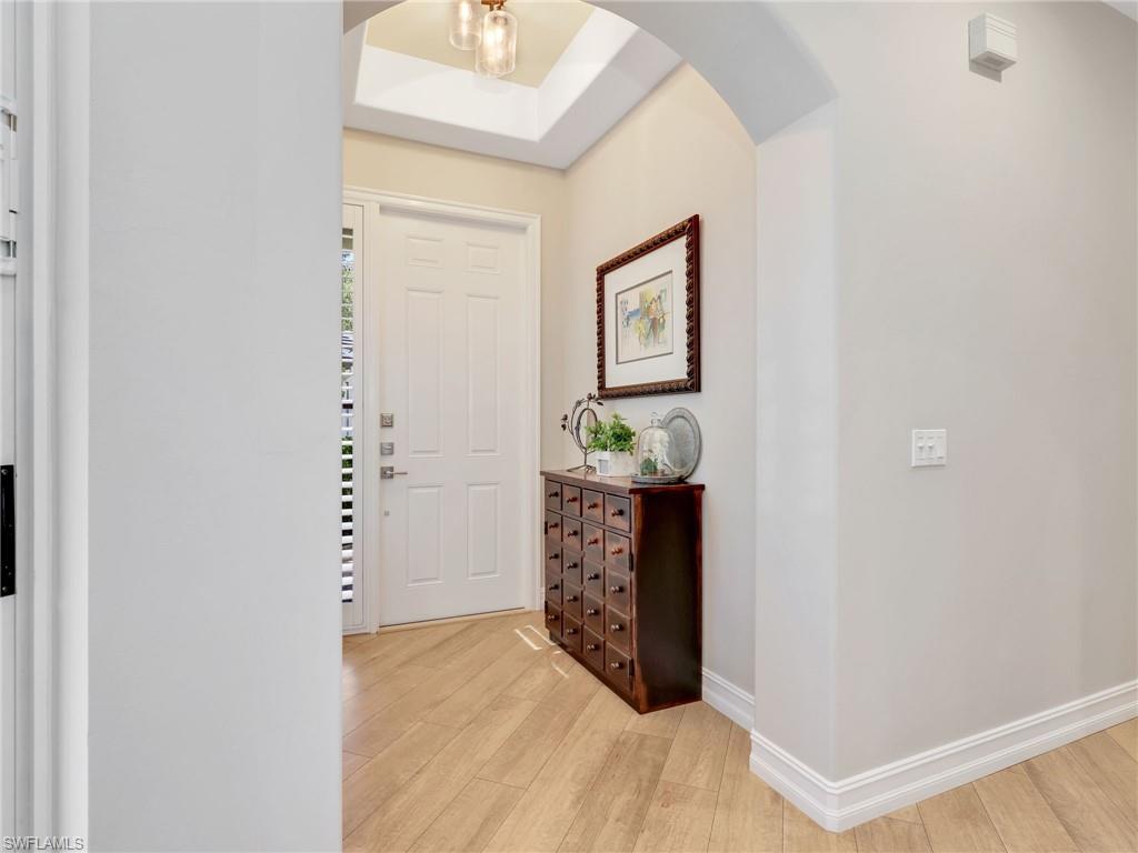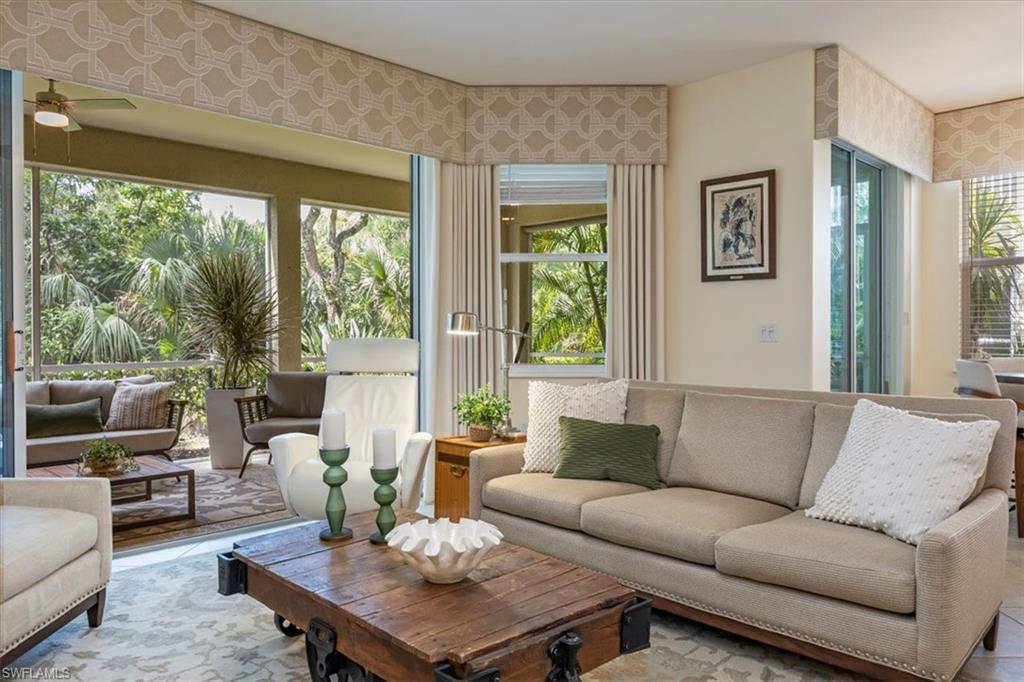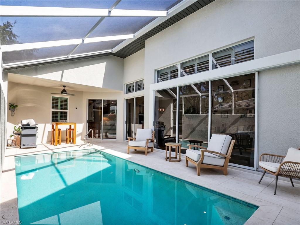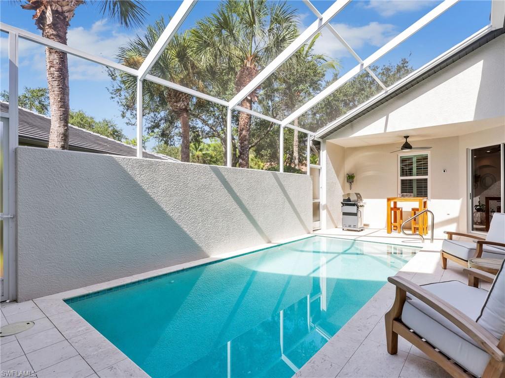 New roof, impact windows and all new exterior features. Also includes a private pool spa and a tranquil courtyard, this exceptional home offers an unparalleled pool retreat area and privacy like no other. Designed for seamless indoor-outdoor living, this villa boasts massive pocketed sliding glass doors that open to a completely private plunge pool spa lanai. The spacious deck is ideal for lounging, grilling or soaking up the sun, all while enjoying serene views of the cascading waterfall. Luxury features include a tankless water heater, newer appliances, light and bright Corian countertops, and rare direct natural gas cooking for a chefs kitchen. Inside, you'll find a spacious rooms, cedar closets, updated baths, laundry room with built-in cabinetry, elegant diagonal tile flooring, decorator shelf accents, upgraded lighting, custom motorized window treatments and more. Volume and tray ceilings add to the home's sophisticated appeal and sense of space. Tarpon Bay Resort offers exceptional resort-style amenities, including an infinity-edge pool, spa, fitness center, barbecue grills, fishing pier, pickleball and tennis courts, billiards and a community kitchen. Ideally in North Naples, this villa is just minutes from top-tier dining, shopping and the area's best beaches. With all major updates completed, this move-in-ready home is a rare opportunity to experience luxury, privacy and the ultimate Florida lifestyle.