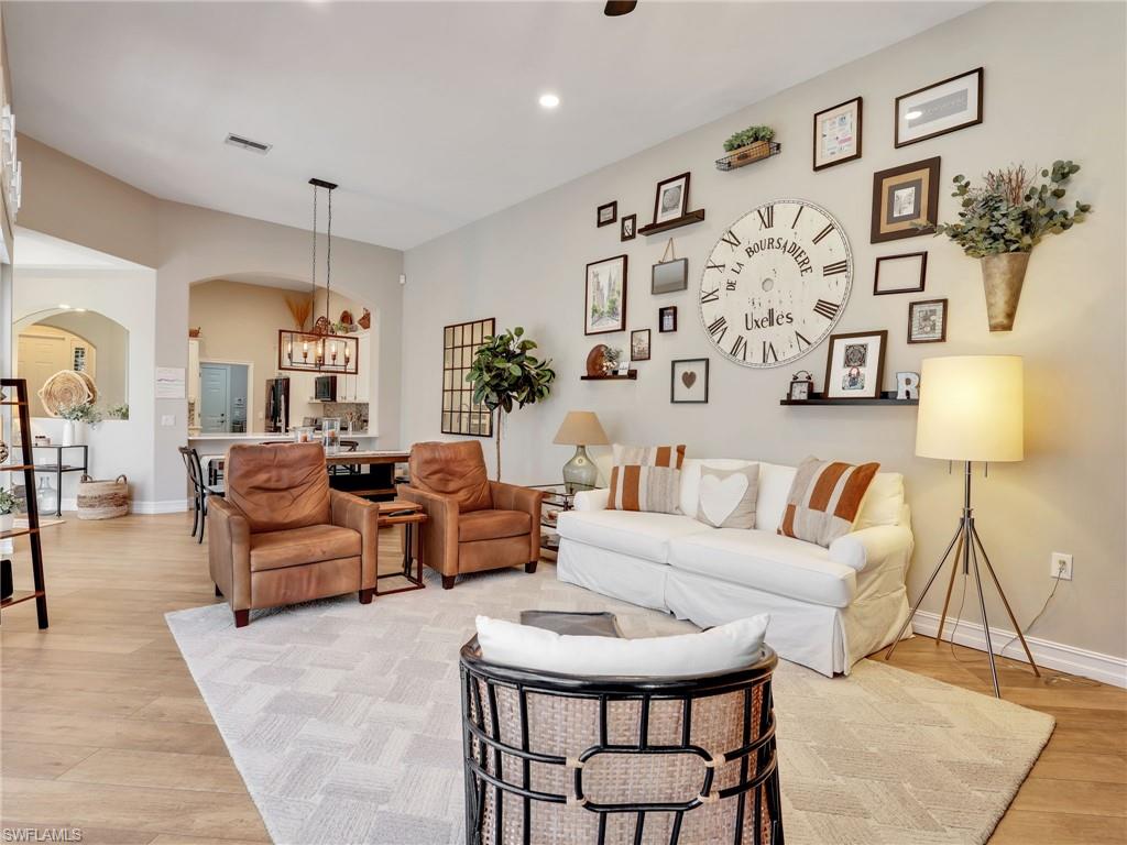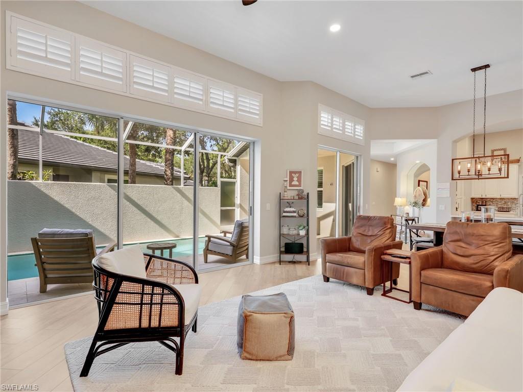 Discover the perfect blend of comfort, convenience, and Florida lifestyle in this beautifully updated 3-bedroom, 2-bathroom attached villa offering 1,879 sq ft of living space. Located in the highly sought-after gated community of Tarpon Bay, this residence is move-in ready and ideal for full-time living, a seasonal getaway, or an investment property. Recent improvements include a brand-new roof (2024), fresh interior and exterior paint, and new Luxury Vinyl Plank flooring in all bedrooms, replacing the original carpet. The open floor plan seamlessly connects the living, dining, and kitchen areas, creating a spacious and inviting environment perfect for everyday living or entertaining guests. Step outside to your private screened-in pool and enjoy year-round outdoor enjoyment. The home is offered unfurnished, giving you the opportunity to personalize it to your taste. Tarpon Bay offers residents resort-style amenities, including an infinity-edge pool, relaxing spa, modern fitness center, clubhouse with billiards, and secure gated entry. Perfectly located near Naples' pristine beaches, upscale shopping, fine dining, and with quick access to I-75. Don’t miss out — schedule your private showing today and experience the lifestyle Tarpon Bay has to offer!