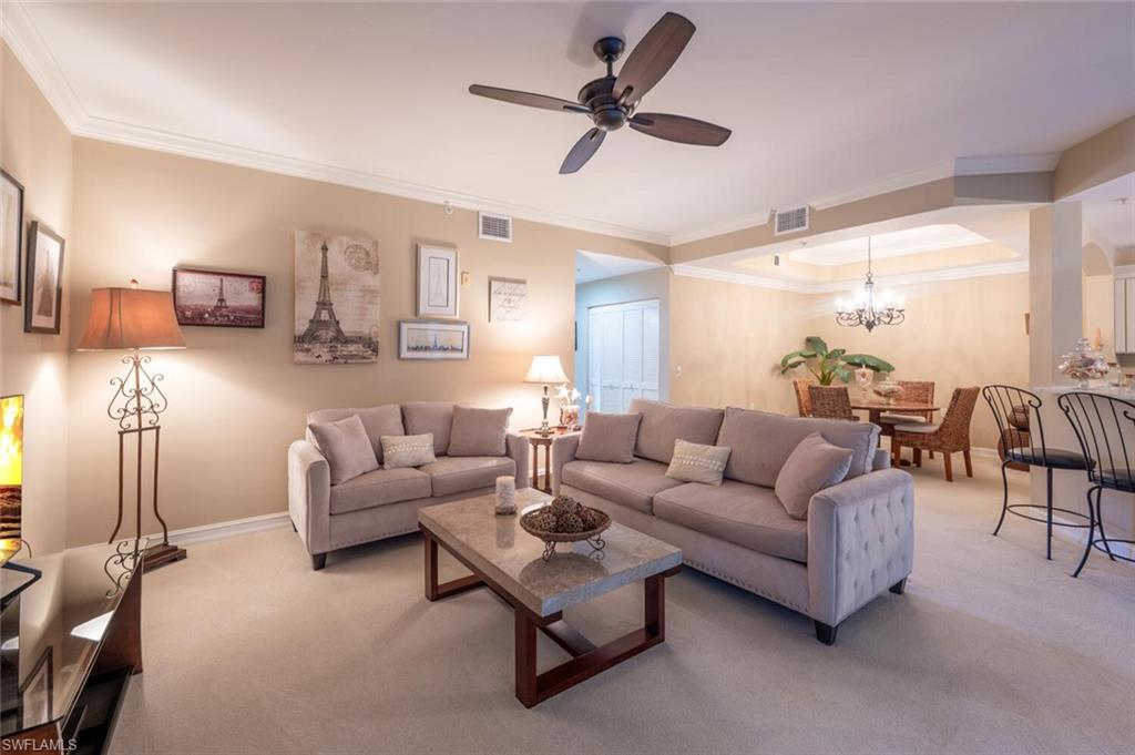 Just Reduced! Don't Miss this Opportunity! Looking for a Charming Turnkey-Furnished Condo in North Naples? This beautifully appointed 2-bedroom, 2-bathroom condo located in the highly desirable community of Tarpon Bay in North Naples might be it. Nestled on the second floor, this turnkey furnished home offers the perfect blend of comfort, privacy, and style, all just minutes from Naples’ best beaches, dining, and shopping. This spacious move-in ready residence is thoughtfully designed with a convenient laundry area, a nearby large storage unit, and a covered carport for your vehicle. Enjoy the sunny Florida lifestyle from the bumped-out lanai, which offers a bright exposure and serene views of preserved palm tree canopies—a peaceful retreat ideal for morning coffee or relaxing evenings. Inside, you'll find a charming and rich interior with crown moldings, wood plantation shutters, upgraded fans and lighting, lush carpeting, and elegant chandeliers that create a warm and inviting atmosphere. The recently updated kitchen is both stylish and functional, featuring wood cabinetry, Upscale quartz countertops with a deep chef’s sink, Updated appliances, including a natural gas range, Pantry with pull-out drawers for added convenience, Abundant natural light throughout. The owner’s suite is a relaxing haven with crown moldings, his and hers closets, and a private ensuite bathroom with a spacious shower. The guest bedroom, complete with a double-door closet and plantation shutters, offers flexibility as a guest room or a home office. Located in Tarpon Bay, a gated community in one of Naples most desirable area, known for its lush landscaping, tranquil setting, and proximity to all that Naples has to offer. You will find yourself just minutes away from exquisite dining, boutique shopping, and pristine beaches. Whether you're looking for a leisurely day by the water or an evening out on the town, everything you need is within easy reach. Tarpon Bay is a resort-style amenities rich community! Dive into the sparkling Infinity Edge Pool or unwind in the rejuvenating spa. Stay active with access to a state-of-the-art fitness center, his and hers locker rooms, and a yoga fitness studio. Challenge friends to a friendly match on the Pickleball or tennis courts or enjoy a casual game of basketball. The clubhouse offers a sophisticated club room offering a great room, billiards and a card room with a banquet style kitchen and poolside gas grills and cabana, perfect for hosting gatherings and creating lasting memories. Don’t miss your opportunity to own this beautifully furnished Pied A terre in Naples Florida! Schedule your private tour today!