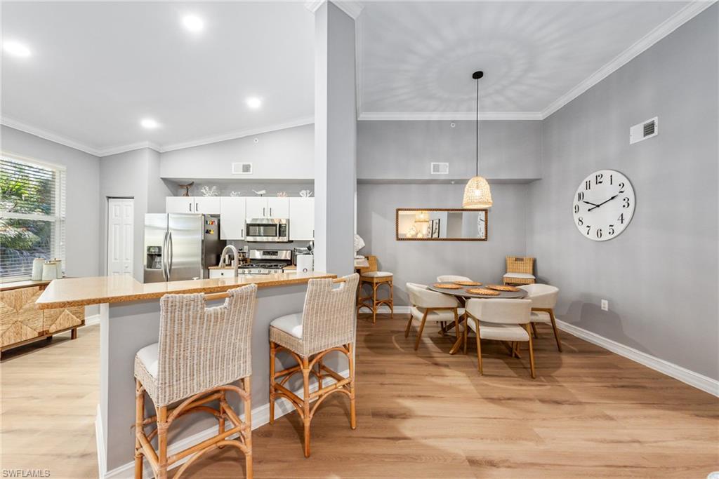 Have you been looking for your little place in the sun? This beautiful property could be the one! Hurry, this condo is being sold Turnkey Furnished, making it easy and convenient to start enjoying the Florida lifestyle right away. The property includes 2 spacious bedrooms, 2-bathrooms and an open floor plan with split bedrooms, perfect for privacy and easy living. A private lanai offers privacy and peaceful tropical preserve views. This condo offers a fresh and modern feel with new wood looking laminate plank flooring in the main living area and bedrooms, fresh interior paint, fans, lighting and window coverings throughout. The spacious kitchen is updated with quartz countertops, a double sink, a stylish backsplash, and stainless-steel appliances—including a natural gas range. Enjoy your morning coffee in the cozy kitchen eat-in area by the window or at the elevated quartz bar, ideal for casual dining or while entertaining. The owner's suite offers a serene retreat, opening onto a peaceful lanai that overlooks a lush tropical preserve. It also boasts a generous walk-in closet, while the en-suite bathroom features a spacious shower with a glass door, double sinks, and plenty of counter space. The condo also includes a large exterior storage closet and a covered carport for your vehicle just steps from the front door for added convenience. Located in one of Naples' most desirable areas, you'll find yourself just minutes away from exquisite dining, boutique shopping, and pristine beaches. Whether you're looking for a leisurely day by the water or an evening out on the town, everything you need is within easy reach. Tarpon Bay is a resort-style amenities rich community! Dive into the sparkling Infinity Edge Pool or unwind in the spa. Stay active with access to the fitness center, his and hers locker rooms, and a yoga fitness studio. Challenge friends to a friendly match on the Pickleball or tennis courts or enjoy a casual game of basketball. The clubhouse offers a sophisticated great room, billiards, a hobby room, business center and a banquet style kitchen. Poolside gas grills and a cabana are also available to you and the entire clubhouse and pool area are Wi-Fi accessible for your convenience. All offered in a perfect setting for hosting gatherings and creating lasting memories. Don’t miss out on this incredible opportunity to own your little place in the sun or the guests overflow home that you have been thinking about! Call to schedule your private showing today!