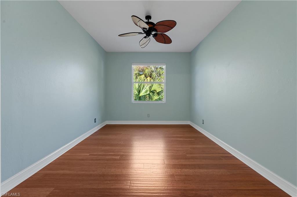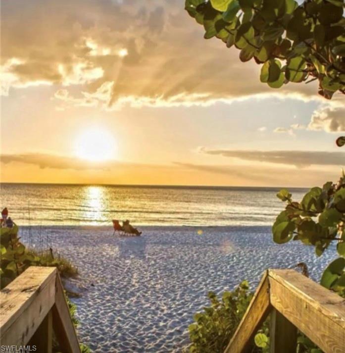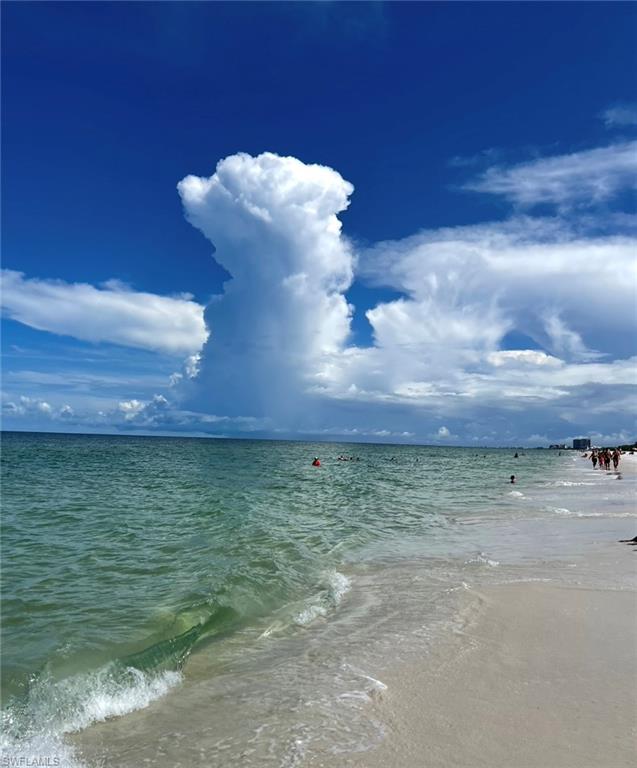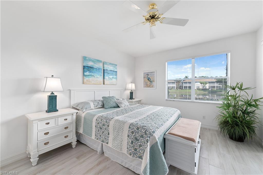 This end unit Coach Home with a SOUTHWEST view has a great New Price. Largest living space in Tarpon Cove. Enjoy the coastal breezes and spectacular water views of the lake and fountains from this enviable second-floor unit. Note the additional privacy offered by the adjacent green space separating you from your neighbors. The Entry features 3 windows and a gallery loft leading up to the spacious open floor plan. The hand-scraped engineered hardwood flooring flows throughout the den, hall, kitchen, main living area, and master bedroom. The white cabinet-packed kitchen features recessed lighting, a lighted ceiling fan, under cabinet lighting, a tiled backsplash, a walk-in pantry, white appliances, a breakfast bar, and a cozy nook for added space. Three generously sized bedrooms, each with a walk-in closet, corner windows for lots of light and cross-breezes, and ceiling fans. Loads of storage space. Den/Office is open and bright. The large Lanai is L-shaped, tiled, and is accessed from kitchen, master & living rm. The driveway provides an advantage because only two residents use it. Recent updates include: Bathroom faucet fixtures, dual master shower head, garage door motor, water heater, garbage disposal, Ecobee smart thermostat, ceiling fans in lanai and kitchen, A/C 2021. Ready to move in & furnished. Within biking distance of both Barefoot Beach and Delnor Wiggins State Park. Tarpon Cove community has 3 pools, a hot tub, and a community building with kitchen, library and social gatherings during season. If you want more activities/amenities, the Tarpon Cove Yacht & Racquet Club is mins up the road offering Tennis, fitness, bocce, inside/outside dining, boat taxi, pool, and great social events. The Marina has slips to rent or buy, make this your next location in SW Florida.