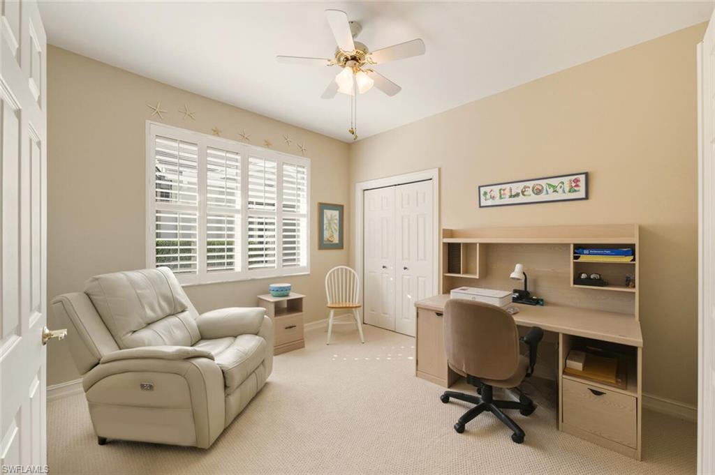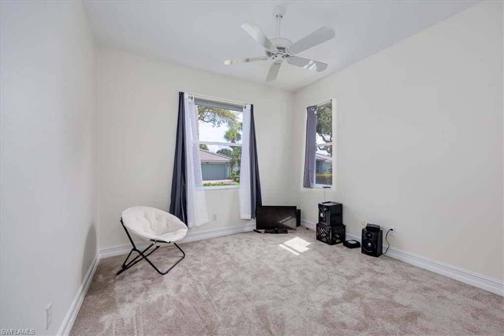Discover effortless coastal living in this beautifully appointed 2-bedroom plus den, 2-bath first-floor residence located in the highly desirable gated community of Tarpon Cove. Enjoy tranquil water and fountain views from the enclosed lanai, which extends the living area and creates a peaceful indoor-outdoor retreat. A private entry breezeway welcomes you into the home, where comfort and style blend seamlessly throughout. The primary suite offers a walk-in closet plus an additional closet for exceptional storage, while the versatile den—already equipped with a closet—can easily serve as a third bedroom, home office, or relaxation space. Peace of mind comes with an A/C system just two years old and a meticulously maintained interior with no history of flooding or water intrusion. Tarpon Cove residents enjoy an exceptional lifestyle with lush tropical landscaping, three resort-style pools, a spa, community clubhouse, and a west-of-41 location just minutes to the Gulf—bikeable to the beach and close to the vibrant shopping, dining, and entertainment of Mercato. The newly developed Kinsale Golf Club nearby enhances the appeal for golf enthusiasts, while the Tarpon Cove Yacht & Racquet Club—available for separate membership—offers tennis, fitness, indoor and outdoor dining, bocce, a resort pool, and a boat taxi to the beach. This rare lakefront move in ready Turnkey offering combines location, lifestyle, and livability in one of North Naples’ most sought-after communities. A must-see opportunity—schedule your private showing today.