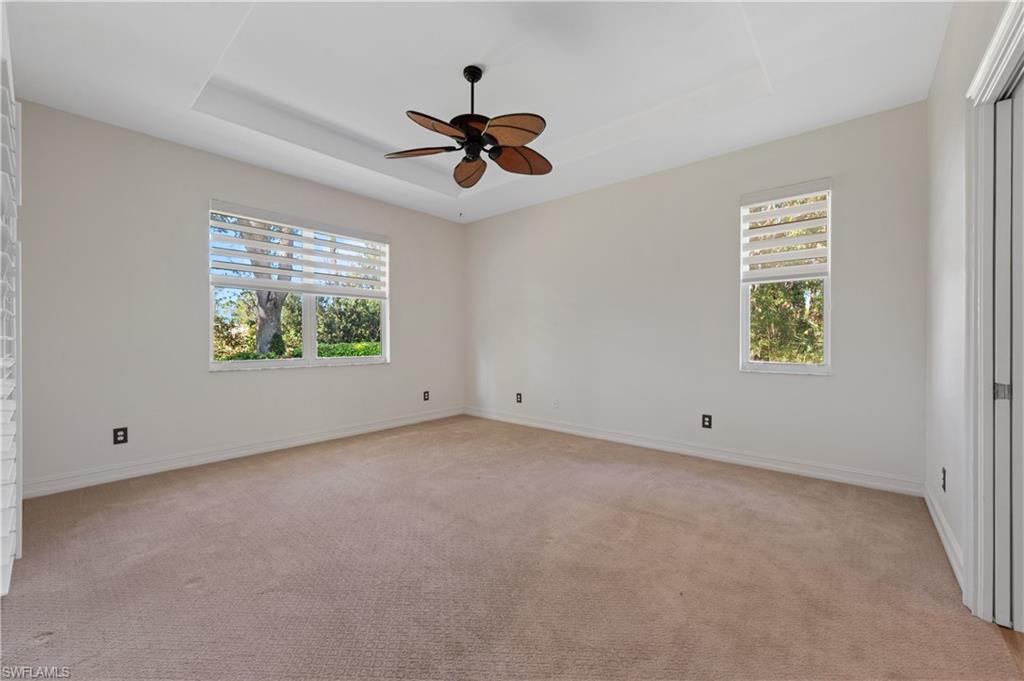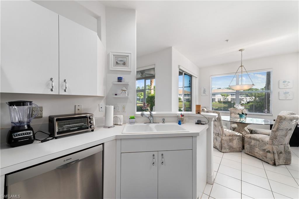 Beautifully maintained COMMODORE model ATTACHED VILLA in desirable TARPON COVE. This spacious 3BR/2BA home features an open floor plan with CATHEDRAL ceilings, abundant natural light, and neutral finishes. The SPACIOUS kitchen offers white cabinetry, white Corean countertops, a breakfast bar, and a cozy eat-in nook. PLANTATION SHUTTERS throughout and manual storm shutters for peace of mind. Recent updates include a NEWER TILE ROOF (2021), and A/C and water heater (both just 2 years old).The primary suite includes TWO walk-in closets and an ensuite bath with DUAL vanities, soaking tub, and SEPARATE shower. Enjoy relaxing on the screened lanai with a peaceful garden view. Two-car garage for convenience. Tarpon Cove offers resort-style amenities with 3 pools, tennis, fitness center, and OPTIONAL Yacht & Racquet Club membership with boat shuttle to the beach. Minutes to Gulf beaches, dining, and shopping in beautiful NAPLES.