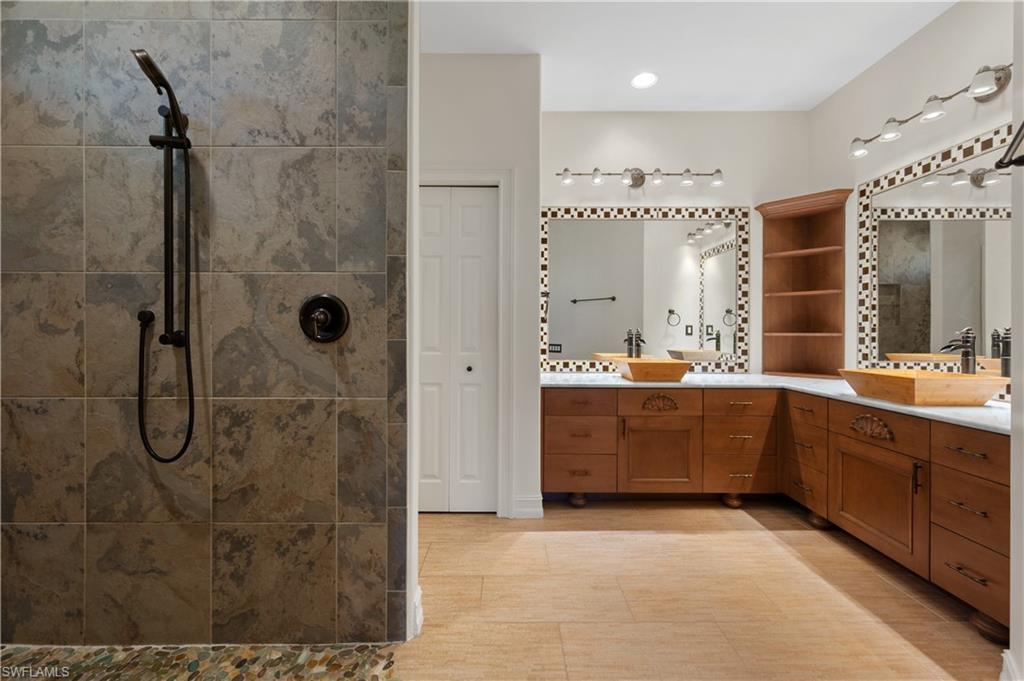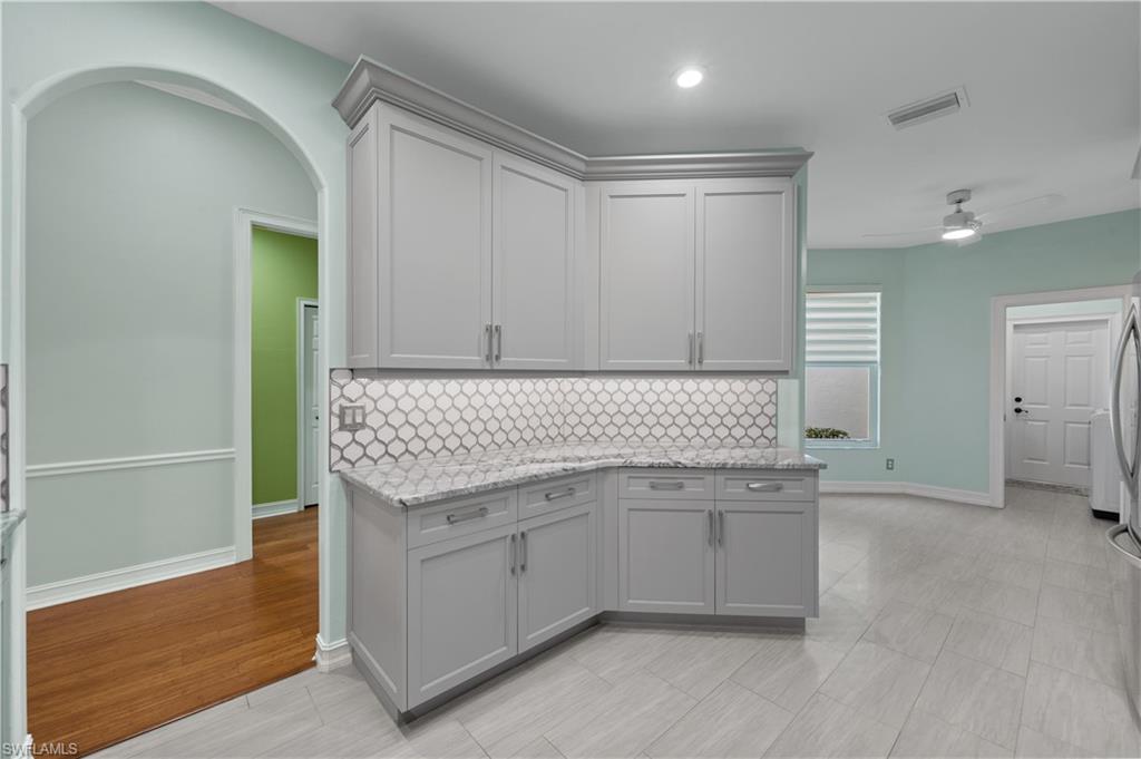 A Villa with private pool priced to sell this June under $600,000 in Tarpon Cove! Rarely available, beautifully renovated Tarpon Cove Villa with private pool, 2 car garage and tropical views is ready for you to Live Your Dream Naples! Tarpon Cove is one of Naples most desirable neighborhoods West of 41! This beautiful one floor living Villa welcomes you with an entertainers dream in upgrades including quartz composite counters in kitchen, under cabinet outlets, custom neutral backsplash, Bosch stainless steel appliances, an induction cooktop, KraftMaid woodframe high end cabinets and a large island with ample room for more than one cook in the kitchen! Beautiful wide open views of pool, tropical landscape and open airspace from your kitchen and living area bring everything we love about Naples and open concept entertaining together in this lovely home. Custom concrete painted flooring and a paint scheme inspired by coastal Naples sets this Villa apart and lends a sophisticated touch for the discerning buyer. Owners have paid attention to every detail when upgrading this home for the buyer down to custom cut out tile niche in the master bathroom shower to hold toiletries out of sight and allow the eyes to be drawn to the neutral tile and custom glass shower door. Your private personal pool (with views and sliders from master and living room) has a new pool heater (2024), new deck drain and new pool light with bulb that will light up the evening sky while you sit on the lanai, take an evening dip or float candles for your enjoyment. Upgrades galore include a new garage door opener and keypad, new electrical panel, washer and dryer, hot water heater, 5 cubic foot chest freezer in the garage and new rollers on sliders to the lanai/pool and HVAC with blue lights. Everything is done for you so you can just walk in the door and enjoy your piece of paradise. Trade your snow shovel for a sand shovel and make this your dream home in this lovely gated community. Tarpon Cove has 3 pools, a jacuzzi, clubhouse and tree lined streets If you love shopping and culinary delights, the Mercato and Whole Foods are minutes away. Grab your bike or walking shoes and be at the beach in no time! Purchase a Tarpon Cove Yacht and Raquet Club membership with boat shuttle to Wiggins Pass beach makes the gulf waters even closer. Vanderbilt Beach sunsets are waiting so bring your charcuterie, blanket and look no further! Come Live Your Dream Naples!