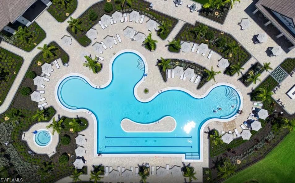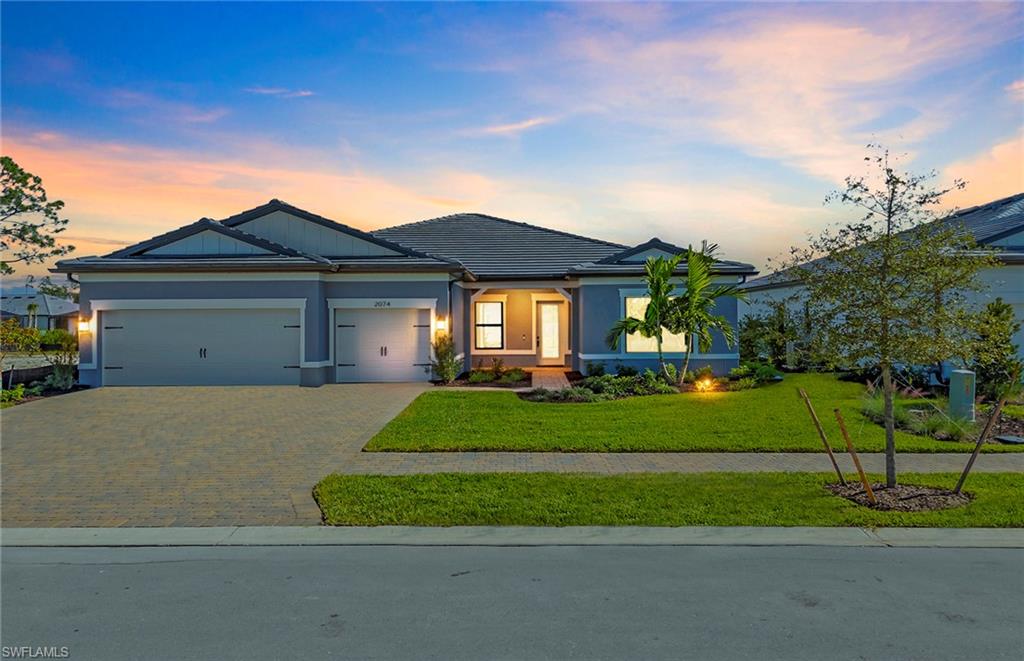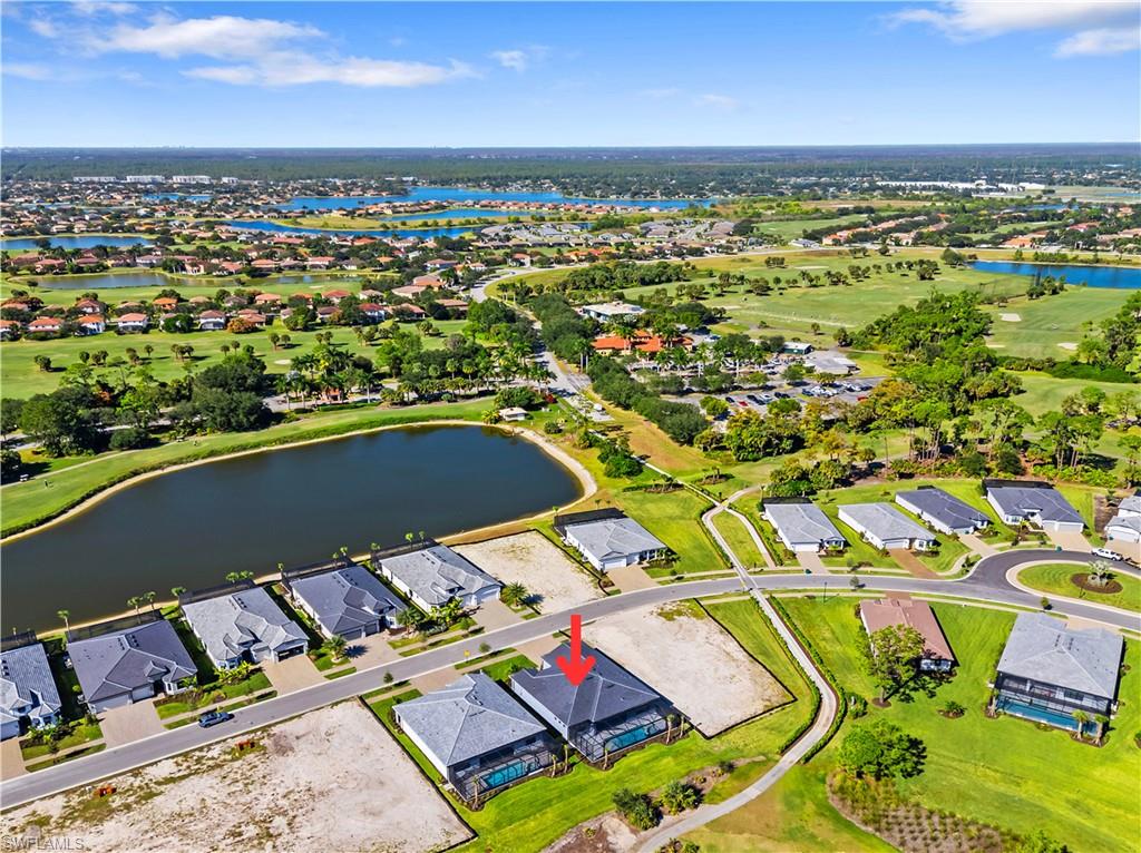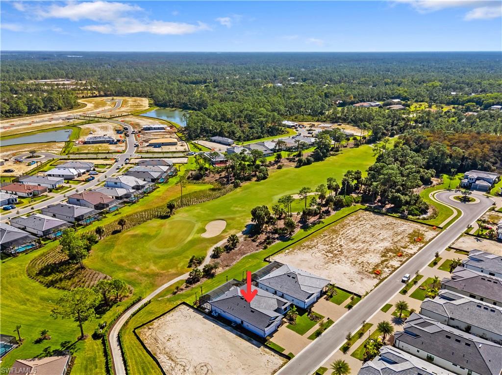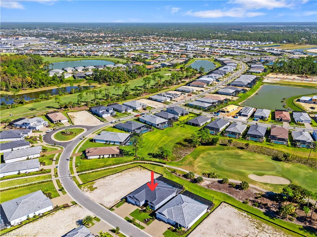 New construction home available now! This Layton 3-car garage, 3 bath+den, screened stunning custom pool and spa home is on one of, if not thee best lots in Terreno. This gem sits within a cul-de-sac and has south facing views of the golf course and lake. Must see in person! This home has been built with a ton of upgrades including: enlarged owner's shower with dual showerheads, separate entry to the screened in lanai from owner's suite, full laundry upgrade including cabinets/countertops with a utility sink, tray ceiling in the enclosed flex room, group 4 countertops, group 5 cabinets, stainless steel appliances including KA 48" built-in refrigerator, floor outlets, under cabinet lighting, pendant pre-wiring, epoxy flooring finish and stucco on walls in garage & more. Terreno by DiVosta is a gated community offering a resort lifestyle with open floor plans, gourmet kitchens, and large outdoor living spaces. For those looking for resort lifestyle communities with private amenities and modern houses, or luxury homes for sale in Naples, FL, Terreno should be your top choice. Neighborhood features include 15,000 sq. ft. grand clubhouse with large community room for events, catering kitchen, state-of-the-art fitness center, exercise studio, 8 pickleball courts, 2 tennis courts, dog park, playground, firepit lounge, dog park, resort style pool, lap lanes, heated spa, full-service restaurant bar & grill, food truck drive-up, 18-hole public golf-course with golf-cart path next door & more!