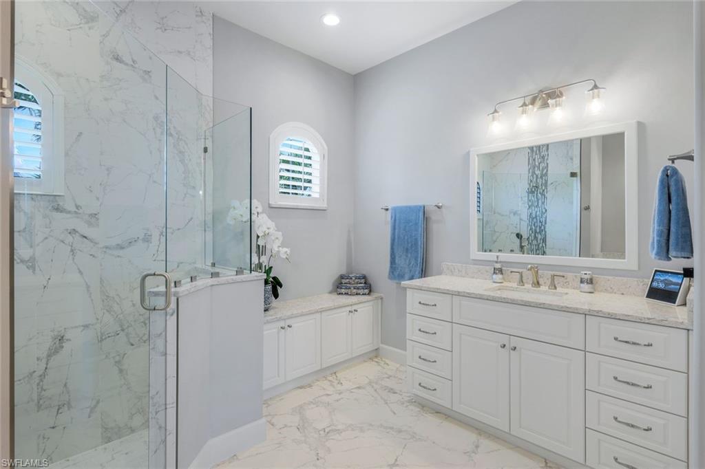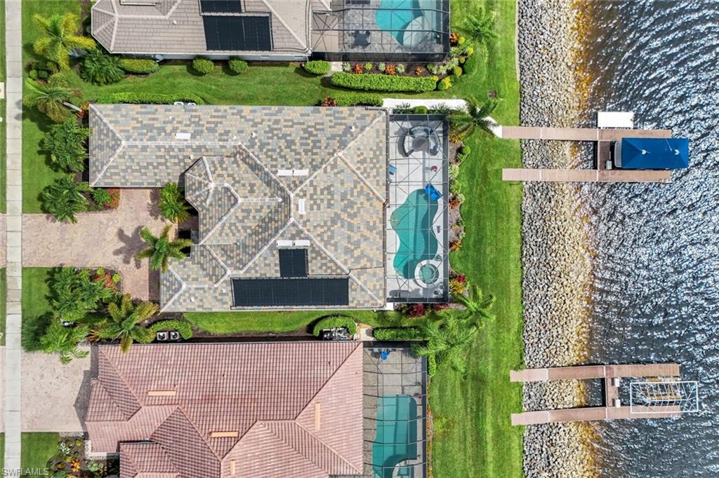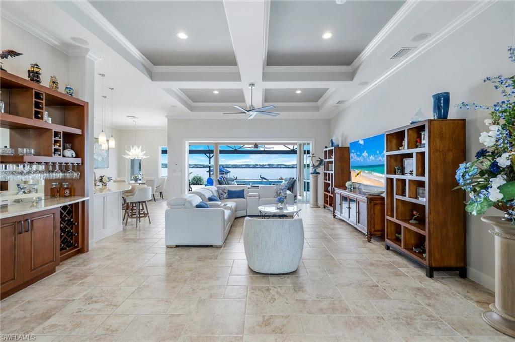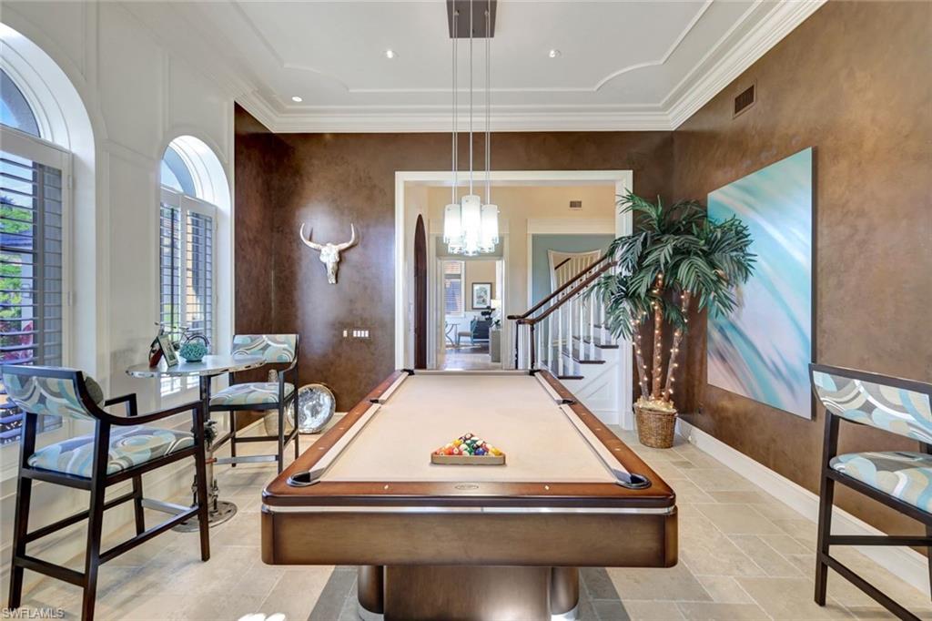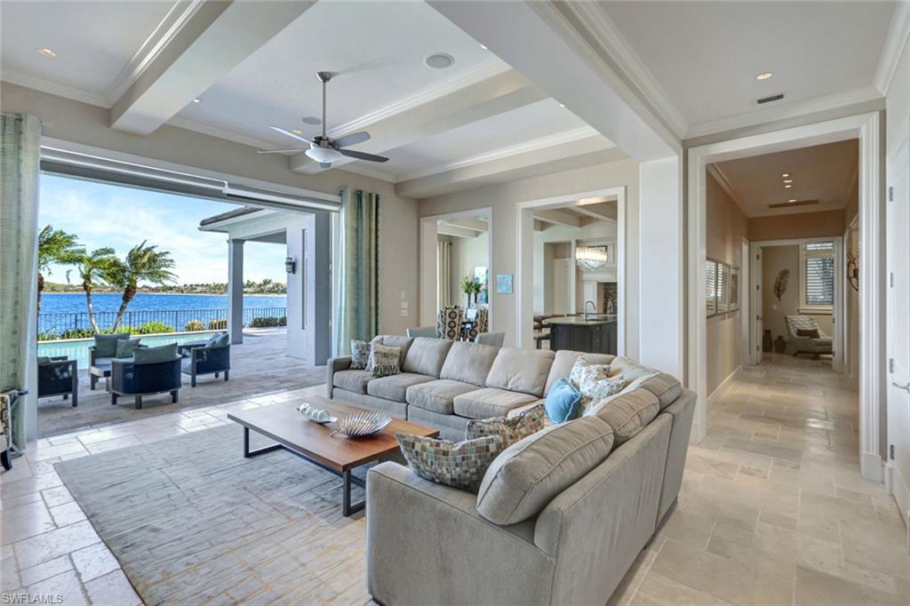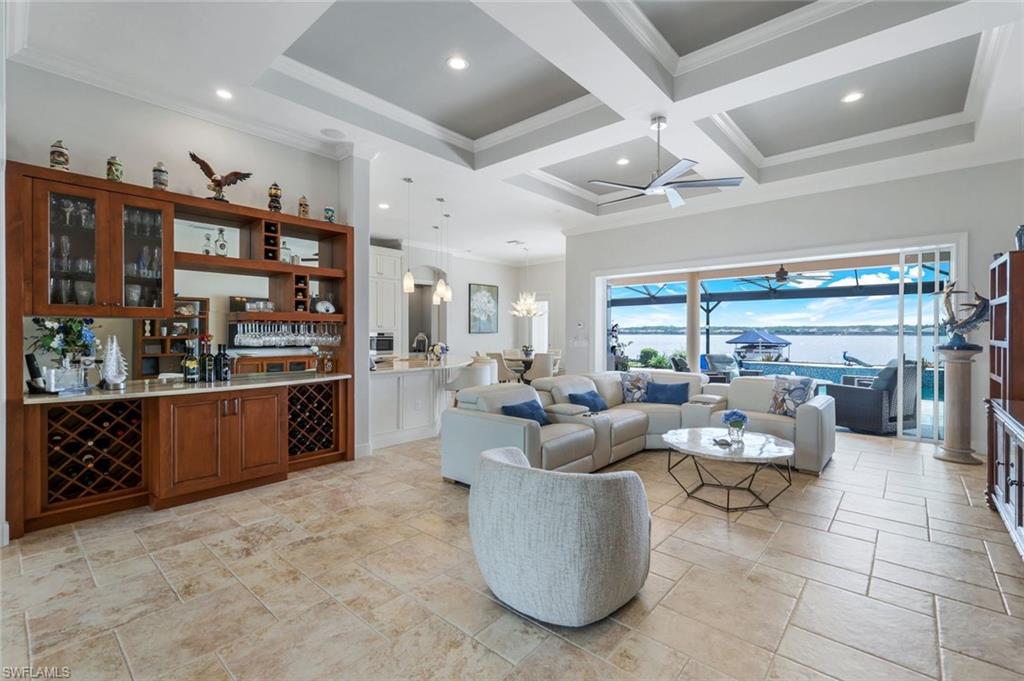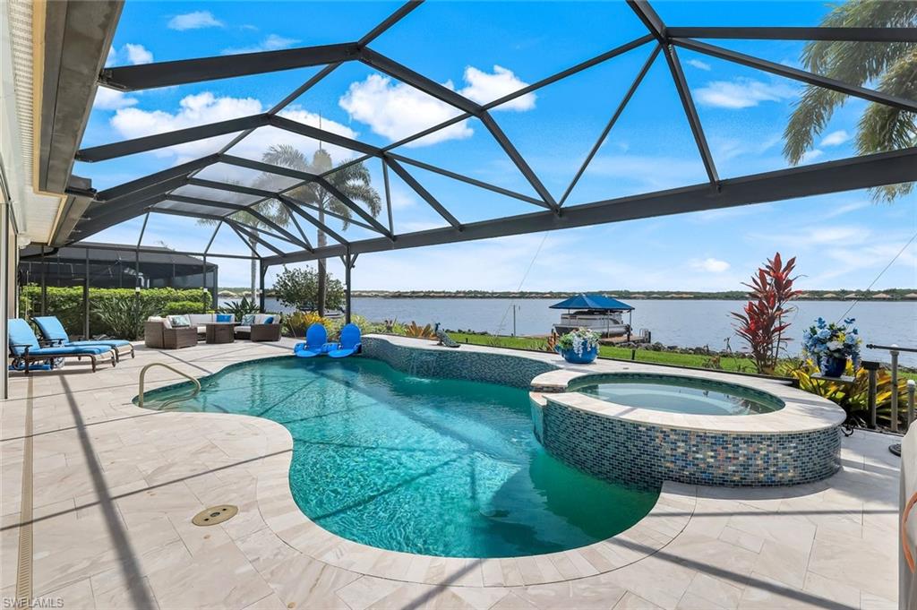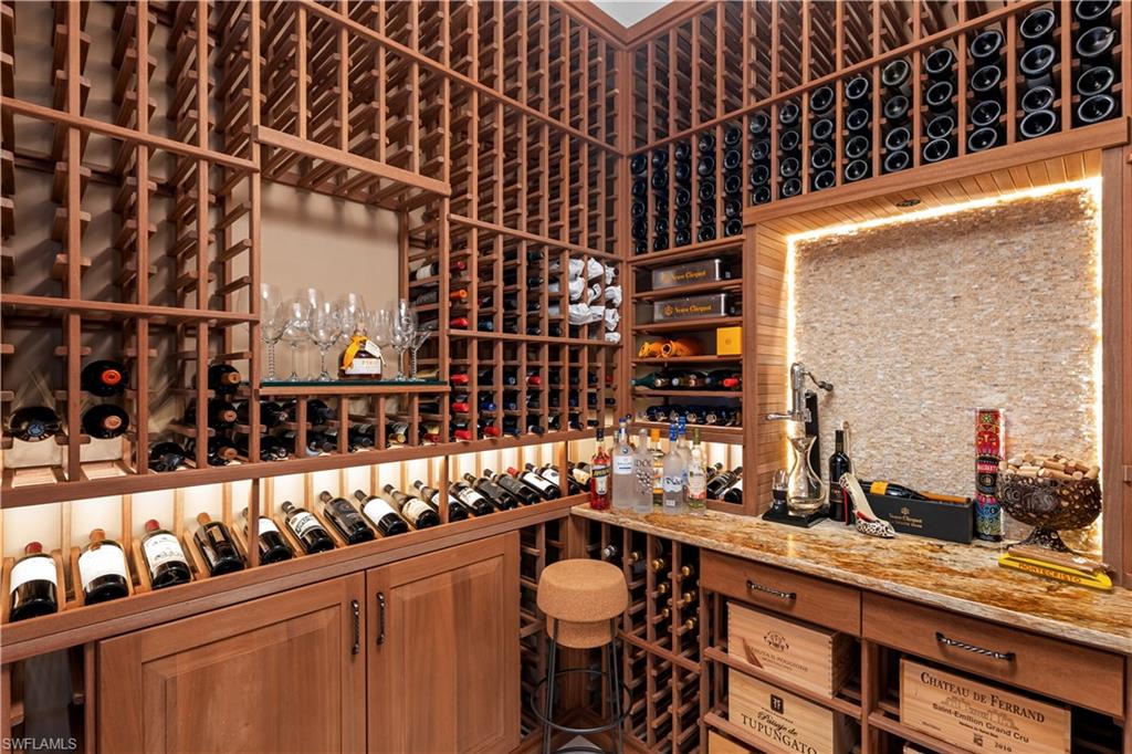 Live the ULTIMATE LIFESTYLE IN The Quarry, a Golf and Beach Community (placed in the top 4% of clubs and communities globally). Step inside this immaculate WATERFRONT home and enjoy BREATHTAKING Sunrise Views of Stone Lake. Boasting 4 spacious bedrooms plus a den, 3 full bathrooms, and a 2-car EXTENDED air-conditioned garage complete with epoxy floor and custom organizers, this home provides over 3,000 square feet of comfort and style. The NEWLY remodeled kitchen is a chef's dream and comes equipped with top-of-the-line appliances (WOLF AND SUB-ZERO), custom cabinets, and quartzite countertops. The crown molding adds a touch of elegance throughout the home, while the custom built-in bar in the great room is perfect for hosting gatherings for friends and family. The recently remodeled primary bathroom comes with custom tile and cabinets for a luxurious and spa like feel. Step outside to the expansive lanai, complete with a custom outdoor kitchen, marble flooring, and Cyprus wood ceiling for the ultimate outdoor living experience. The salt-water pool/spa is perfect for those hot summer days. And don't forget about the deeded dock with covered canopy, hydraulic lift, and jet ski capability for all your boating needs. A 2018 Bennington Pontoon Boat is available for purchase. The whole house generator, electric roll down shutters and accordion shutters will ensure your home is always protected during storm season. This home also features a newer Roof (2019), newer dual zoned air conditioners (2022), plantation shutters and has been freshly painted inside. Tucked away in North Naples, The Quarry isn't just a community, it's a resort-style escape on 500+ acres of pristine lakes and preserves! Vacation vibe amenities include the newly renovated beach club with restaurant, tiki bar, resort pool, lap pool, wellness center, 5 lighted soft-surface tennis courts, 3 lighted bocce courts, 5 lighted pickleball courts, a tennis shop, boating, kayaking, fishing and the full-time activities director will make sure a great time is had by all. In addition, various optional golf memberships are offered at the privately owned Quarry Golf Club - (NO WAIT LIST). Designed by world-renowned architectural team of Dr. Michael Hurdzan and Dana Fry in 2007, this Par 72 championship golf course offers an unparalleled golf experience with spectacular views. Water appears on every hole, and the course is a true test for golfers of all levels. With 5 sets of tees and a unique layout to every hole, you'll never get tired of challenging this exceptional course. Don't miss out on this incredible opportunity to own a piece of paradise in The Quarry!