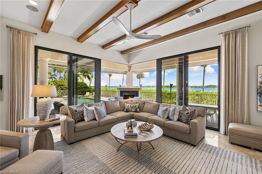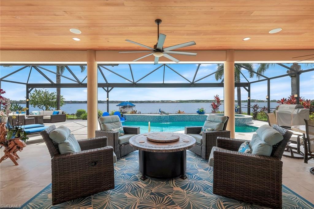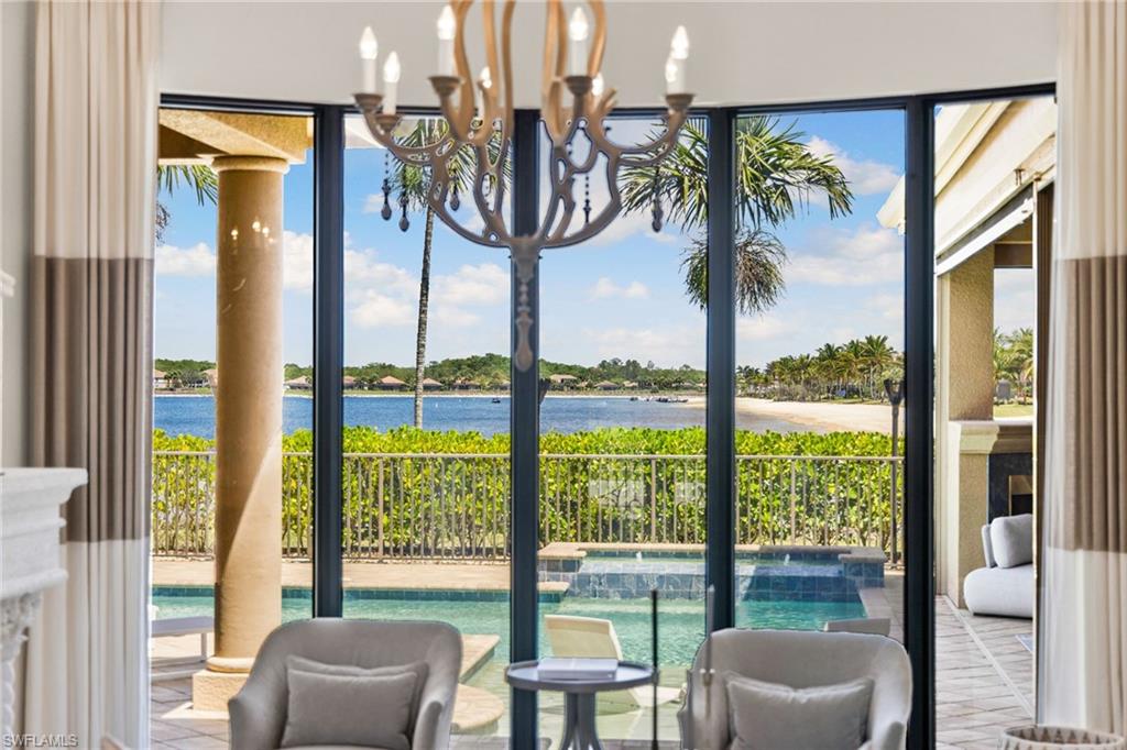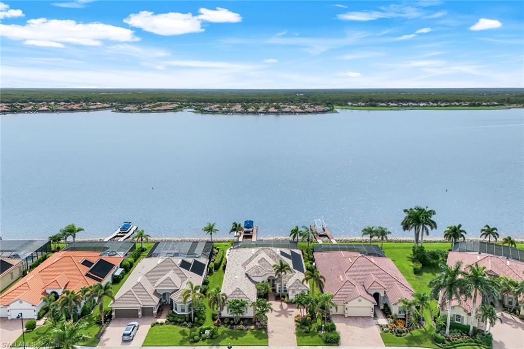 Welcome to your Naples waterfront lifestyle in The Quarry — Located in the EXCLUSIVE gated community of Breakwater Drive close proximity to the amenity-rich beach club where every day feels like vacation. This beautifully enhanced Modified Windsor floor plan featuring 5 Bedrooms (4 Ensuites), 4 full baths and a 3 car garage blends resort living with everyday comfort, offering a flexible layout and stunning lake views that make coming home feel like a getaway. Thoughtfully expanded to include a fifth bedroom with ensuite bath and an added den, this home lives large and feels light, bright, and updated throughout. The freshly painted interior (2025), custom light fixtures, and hardwood floors in the primary suite, guest bedroom, and den give a polished coastal feel. A frosted glass barn door adds privacy and style to the guest suites, while custom closet systems and remote-controlled room-darkening blinds provide everyday luxury. The main living area centers around a custom TV feature wall with a built-in fireplace, creating a warm and welcoming space for gatherings. Surround sound in the main living areas and outdoor lanai enhances movie nights for entertaining. The kitchen includes an induction stovetop and a reverse-osmosis water system, blending practicality with modern convenience. Step through the sliders and into your private outdoor oasis. Enjoy a saltwater infinity pool and spa overlooking PANORAMIC views of Stone Lake, framed by a picture-window lanai screen. A newer outdoor kitchen (2020) makes entertaining easy, while a private beach and deeded boat dock (#5) open the door to boating, kayaking, fishing, water-skiing, or simply watching the sunset over the lake. Behind the beauty, the home is built for lasting comfort and peace of mind with a newer AC handler (2021), whole-house surge-protector (2020), and whole-house generator (2024). Life at The Quarry is all about lifestyle. This gated, amenity-rich environment is perfect for boating, jet-skiing, and water sports, but it doesn’t stop there. The Beach Club features a resort pool, lap pool, hot tub, tennis, pickleball, and bocce courts, plus a Tiki bar with poolside food and beverage service, a state-of-the-art wellness center, and a full-time activities director who curates social events year-round. Golfers will love the optional golf membership at The Quarry Golf Lodge, which currently has NO WAITLIST and offers a limited-time 3-year payment plan for the PGA-level Hurdzan-Fry 18-hole course. Whether you’re a dedicated player or simply love the golf-course lifestyle without the obligation, The Quarry offers the best of both worlds. This move-in-ready waterfront home combines comfort, craftsmanship, and convenience in one of Naples’ most desirable resort communities. It’s a place where you can boat in the morning, golf in the afternoon, and unwind by the pool as the sky glows over the lake — the perfect expression of the Naples lifestyle at The Quarry!