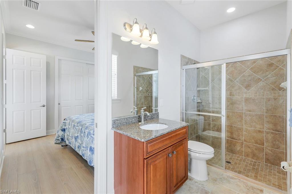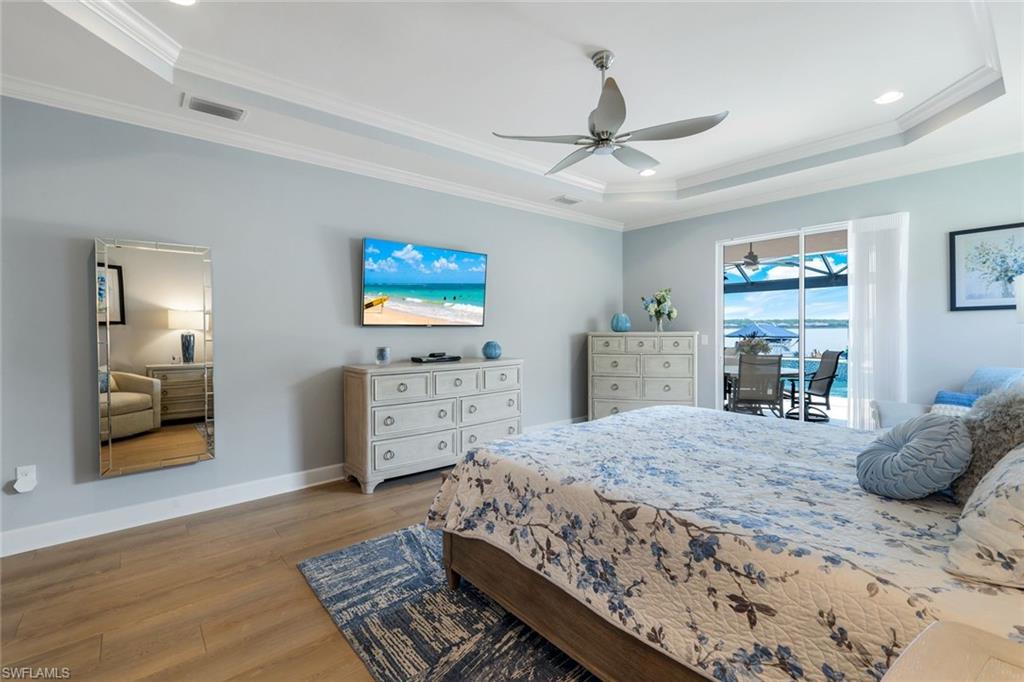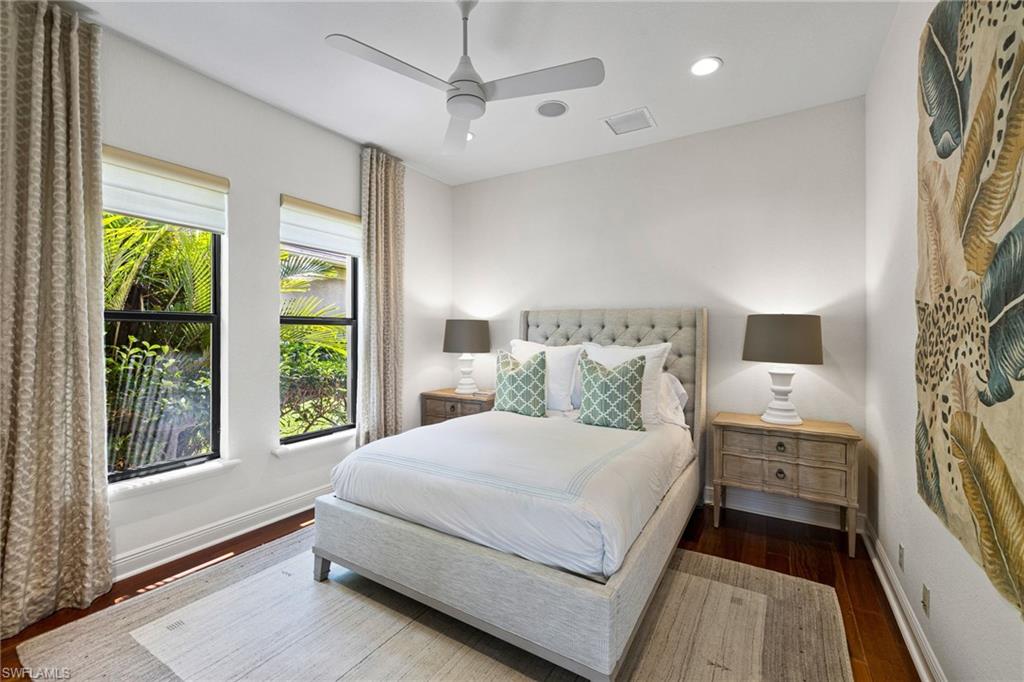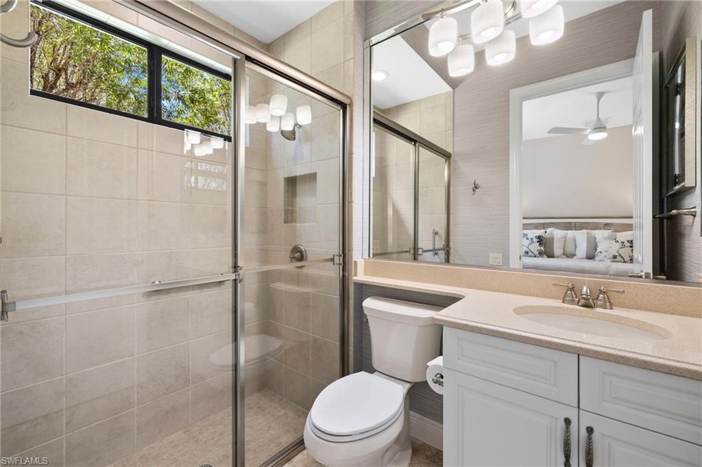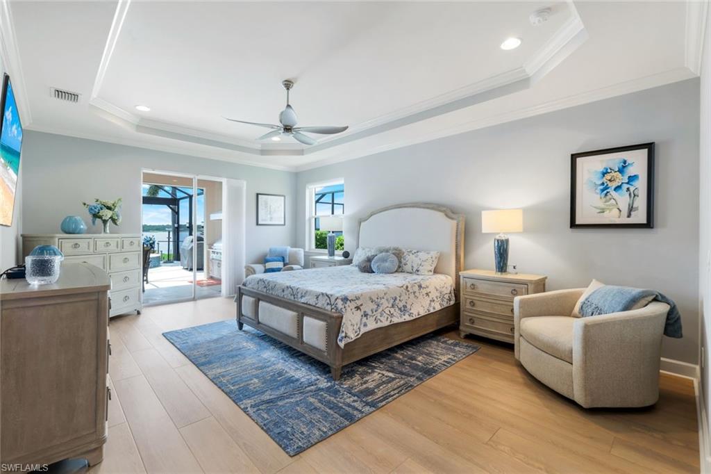 Welcome to your Naples waterfront lifestyle in The Quarry — Located in the EXCLUSIVE gated community of Breakwater Drive close proximity to the amenity-rich beach club where every day feels like vacation. This beautifully enhanced Modified Windsor floor plan featuring 5 Bedrooms (4 Ensuites), 4 full baths and a 3 car garage blends resort living with everyday comfort, offering a flexible layout and stunning lake views that make coming home feel like a getaway. Thoughtfully expanded to include a fifth bedroom with ensuite bath and an added den, this home lives large and feels light, bright, and updated throughout. The freshly painted interior (2025), custom light fixtures, and hardwood floors in the primary suite, guest bedroom, and den give a polished coastal feel. A frosted glass barn door adds privacy and style to the guest suites, while custom closet systems and remote-controlled room-darkening blinds provide everyday luxury. The main living area centers around a custom TV feature wall with a built-in fireplace, creating a warm and welcoming space for gatherings. Surround sound in the main living areas and outdoor lanai enhances movie nights for entertaining. The kitchen includes an induction stovetop and a reverse-osmosis water system, blending practicality with modern convenience. Step through the sliders and into your private outdoor oasis. Enjoy a saltwater infinity pool and spa overlooking PANORAMIC views of Stone Lake, framed by a picture-window lanai screen. A newer outdoor kitchen (2020) makes entertaining easy, while a private beach and deeded boat dock (#5) open the door to boating, kayaking, fishing, water-skiing, or simply watching the sunset over the lake. Behind the beauty, the home is built for lasting comfort and peace of mind with a newer AC handler (2021), whole-house surge-protector (2020), and whole-house generator (2024). Life at The Quarry is all about lifestyle. This gated, amenity-rich environment is perfect for boating, jet-skiing, and water sports, but it doesn’t stop there. The Beach Club features a resort pool, lap pool, hot tub, tennis, pickleball, and bocce courts, plus a Tiki bar with poolside food and beverage service, a state-of-the-art wellness center, and a full-time activities director who curates social events year-round. Golfers will love the optional golf membership at The Quarry Golf Lodge, which currently has NO WAITLIST and offers a limited-time 3-year payment plan for the PGA-level Hurdzan-Fry 18-hole course. Whether you’re a dedicated player or simply love the golf-course lifestyle without the obligation, The Quarry offers the best of both worlds. This move-in-ready waterfront home combines comfort, craftsmanship, and convenience in one of Naples’ most desirable resort communities. It’s a place where you can boat in the morning, golf in the afternoon, and unwind by the pool as the sky glows over the lake — the perfect expression of the Naples lifestyle at The Quarry!