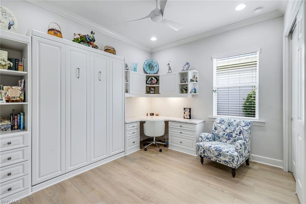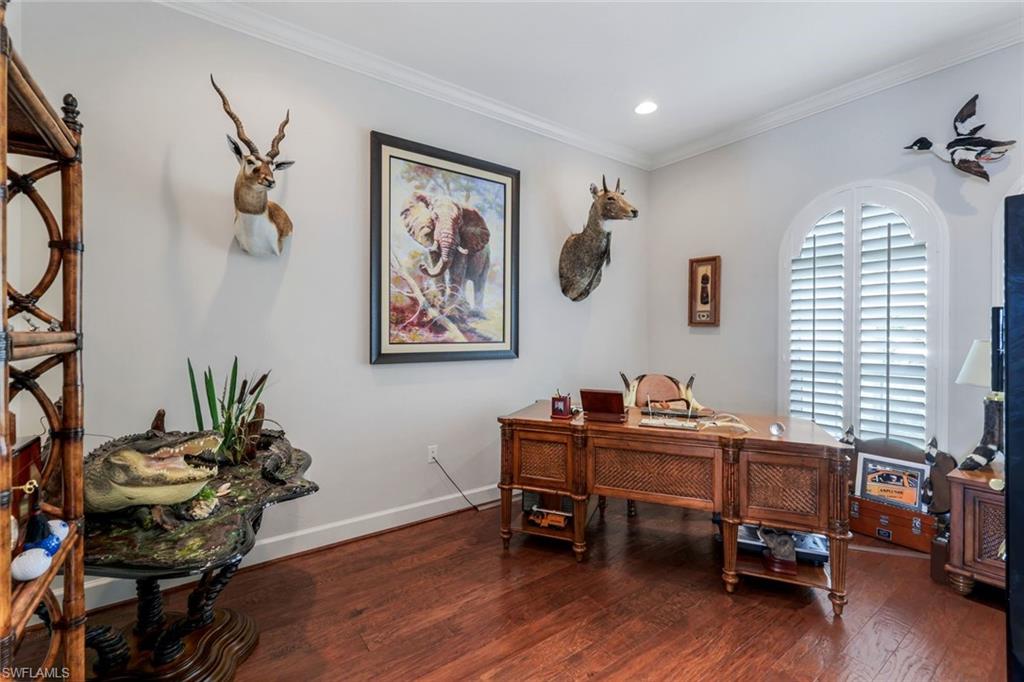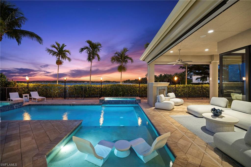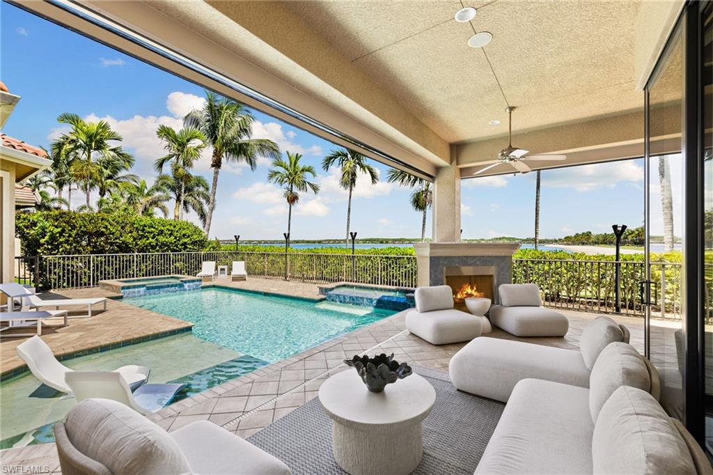 Prepare to be captivated by this jaw-dropping 4-bedroom plus den, 3-full-bath Windsor model masterpiece, sprawling across an OVERSIZED nearly half-acre lot in the ultra-exclusive Quarry community! Commanding spellbinding southern views of the 7th hole of the pristine golf course, this home redefines luxury living with an open floor plan that radiates sophistication and effortless style. Step into a world of opulence, where crown molding, custom-designed closets, and a wealth of storage create an ambiance of refined elegance. The gourmet kitchen dazzles with a brand-new refrigerator, while immersive surround sound envelops the living area and the expansive lanai, setting the stage for unforgettable gatherings. Cutting-edge upgrades, including a new air conditioner, new water heater, and two new garage door openers, ensure peak performance and modern comfort. Venture outdoors to a private oasis that will leave you speechless—meticulously curated landscaping and lighting frame an extraordinary outdoor kitchen and a mesmerizing outdoor fireplace, perfect for starlit evenings. The oversized lanai, crowned by a custom pool and spa, beckons for relaxation, all safeguarded by automatic Storm Smart shutters on the lanai and every window for ultimate peace of mind. The extended 3-car garage, complete with sleek epoxy flooring, offers unmatched space and style. The Quarry has everything for that ultimate Naples vibe with over five hundred acres of lakes for boating, jet-skiing, wakeboarding, or just chilling on a paddleboard. There's a resort-style beach club with a private sandy shore, perfect for picnics. There is tennis, pickleball, bocce ball, plus a tiki bar and indoor/outdoor restaurant with poolside service-grab a cocktail without moving. Fitness center, lap pool, walking paths through preserves, and an activities director keeps things buzzing with events. It's living in a gated resort, right in your backyard. Various optional memberships (NO WAITLIST) are offered at the privately owned Quarry Golf Club. Designed by world-renowned architectural team of Dr. Michael Hurdzan and Dana Fry in 2007, this Championship golf course wraps around the water with eighteen holes of pure scenic bliss. This isn’t just a home—it’s a breathtaking retreat that elevates every moment. Seize the opportunity to claim this jewel as your own!