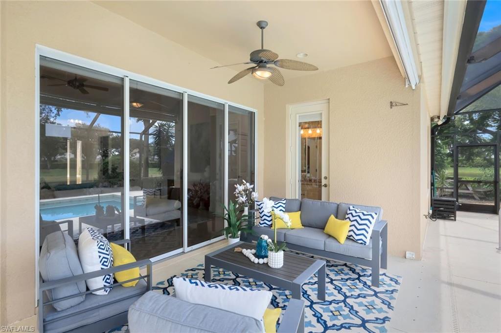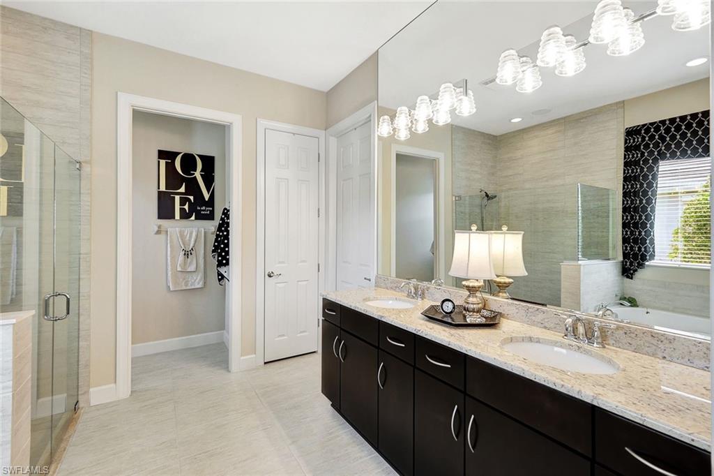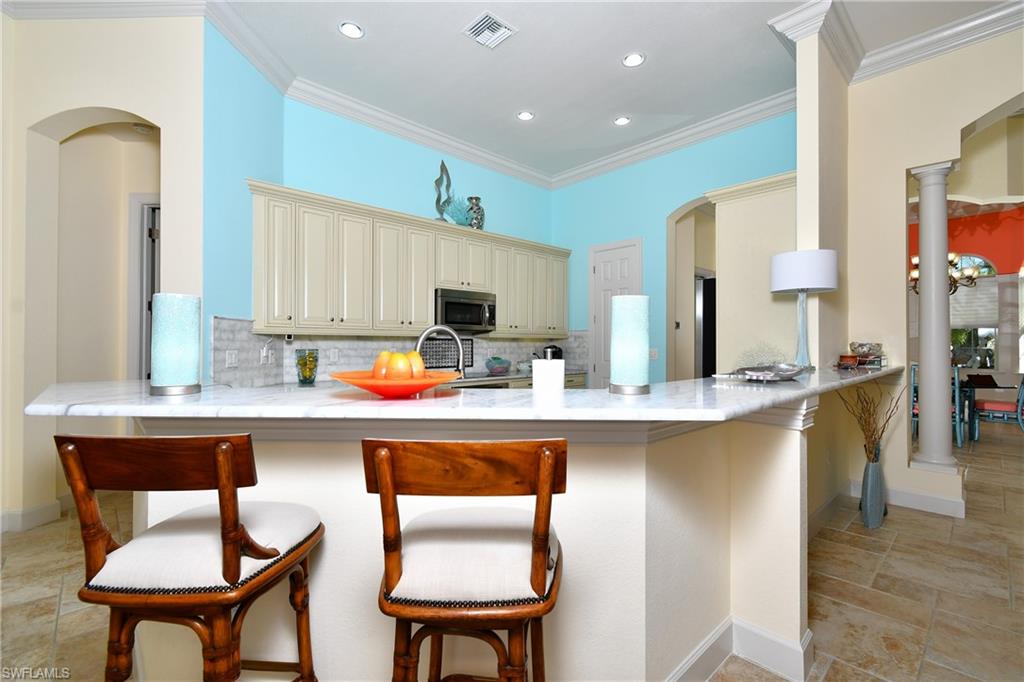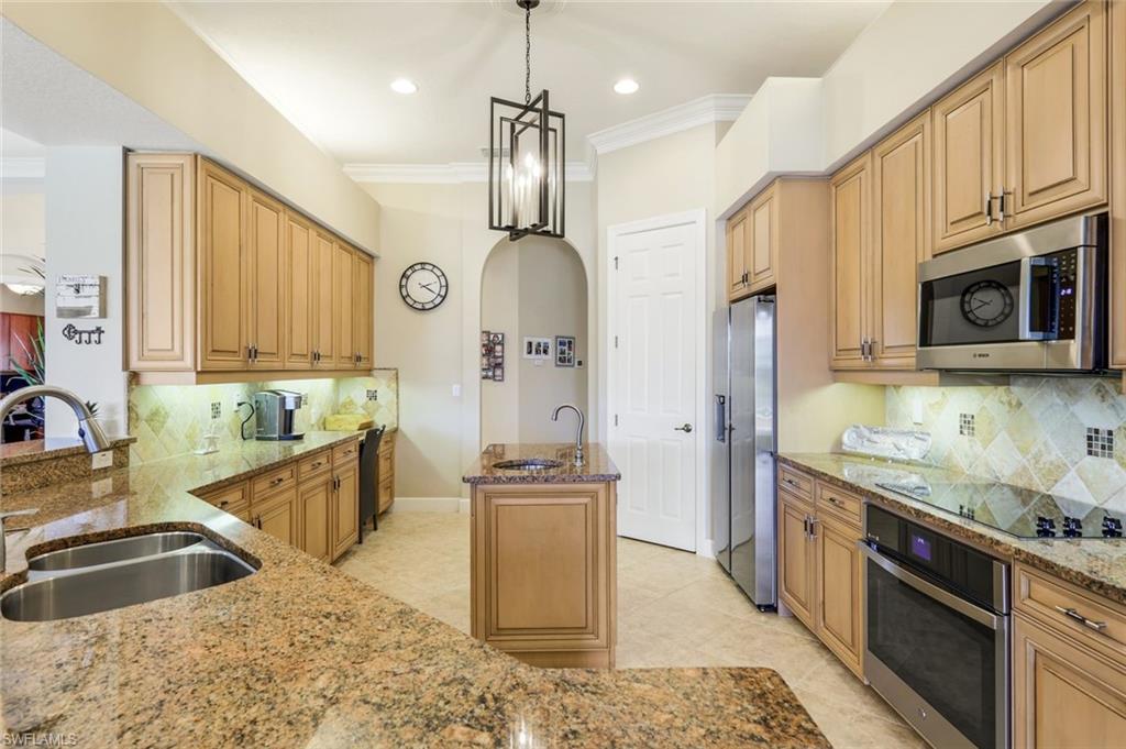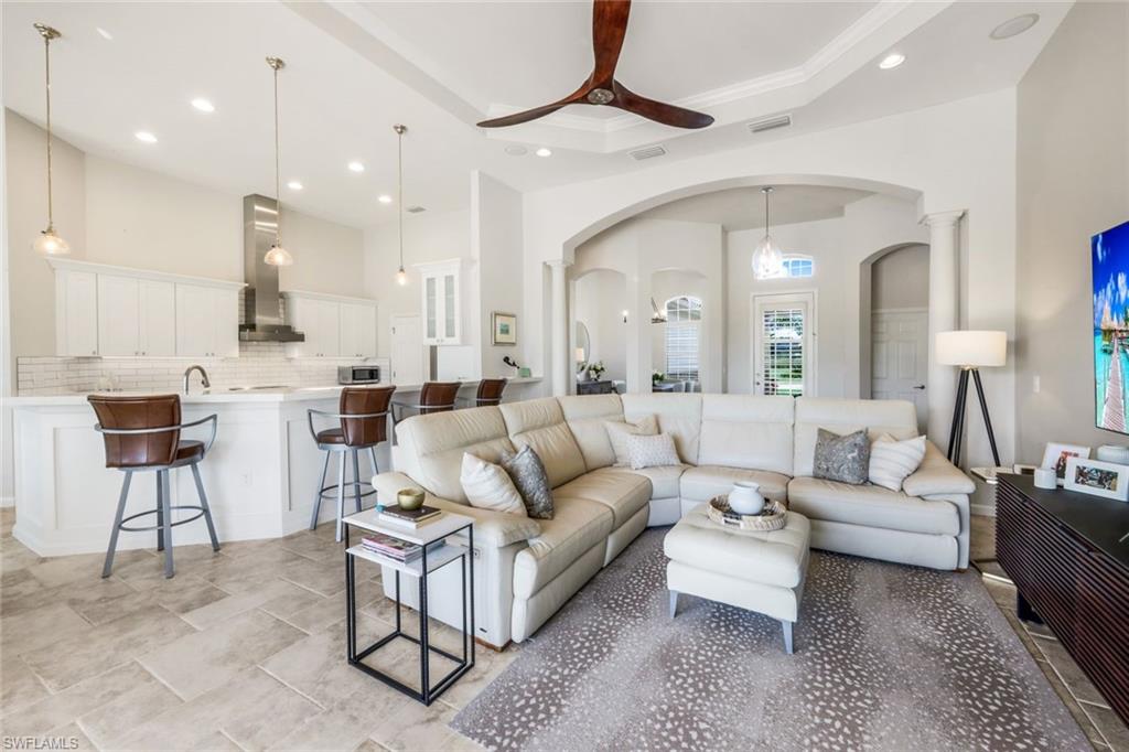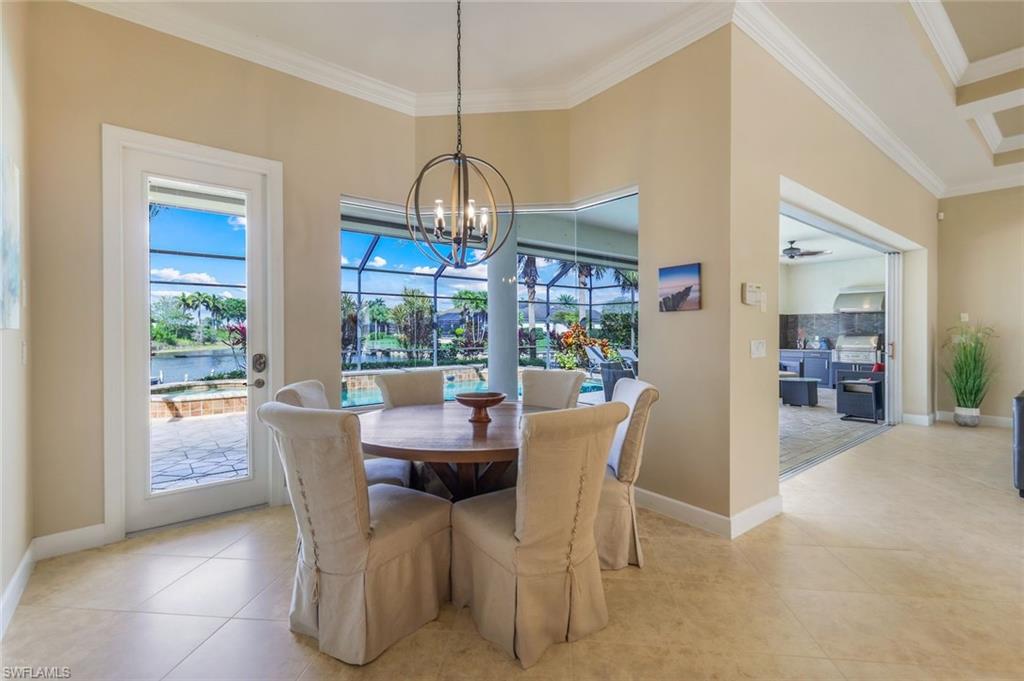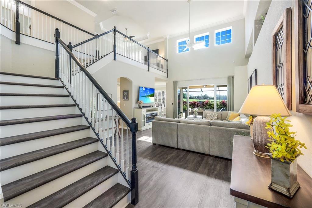 Upgrades galore! This home is a must-see with its fresh paint, a newer kitchen complete with KitchenAid appliances, Carrea Marble countertops, hurricane impact windows throughout, custom cabinetry and a walk-in pantry. The great room is spacious thanks to the removal of the interior partition. Enjoy dinner on the oversized covered lanai by your solar heated saltwater pool and watch the sunset across the lake. The dramatic master suite opens to the Lania and boasts 2 large custom closets, a soaking tub, dual shower heads and dual sinks. The stunning wainscot dining room overlooks the newly landscaped garden. Upscale features include 12 ft. ceilings, tray ceilings, large crown molding, solid wood cabinetry, custom closet cabinetry in every closet, granite and wood floors with upgraded tiles, epoxy garage floor, extended garage and storage. Nestled in North Naples. The Quarry is a one of a kind community built around 3 pristine lakes, approximately 500 acres of interlocking waterways and navigable Stone Lake at its heart. Enjoy boating, water skiing, kayaking or beach activities. Experience Southwest Florida at its best in The Quarry. The Quarry Beach Club is a private member owned club that features a new redesigned resort and lap pool, fitness and wellness center, tennis, pickleball and bocce court and boating. Dining at its finest is available at the indoor dining room or outdoor Q Bar. The lifestyle calendar of events offers something for everyone. It's all right here for you to enjoy. You'll never want to leave.