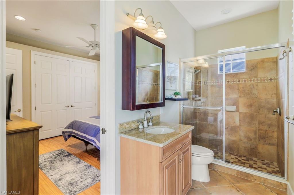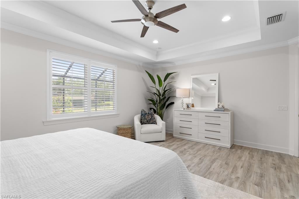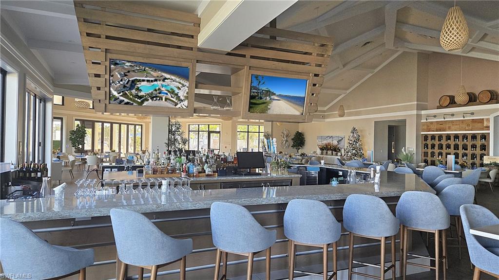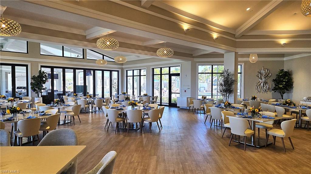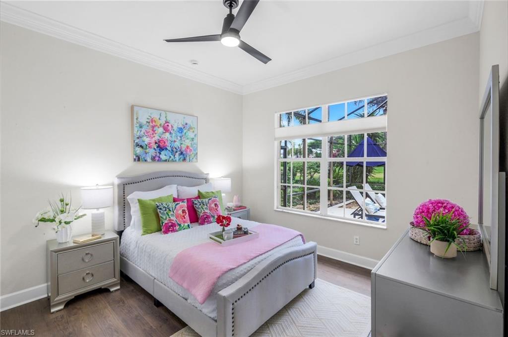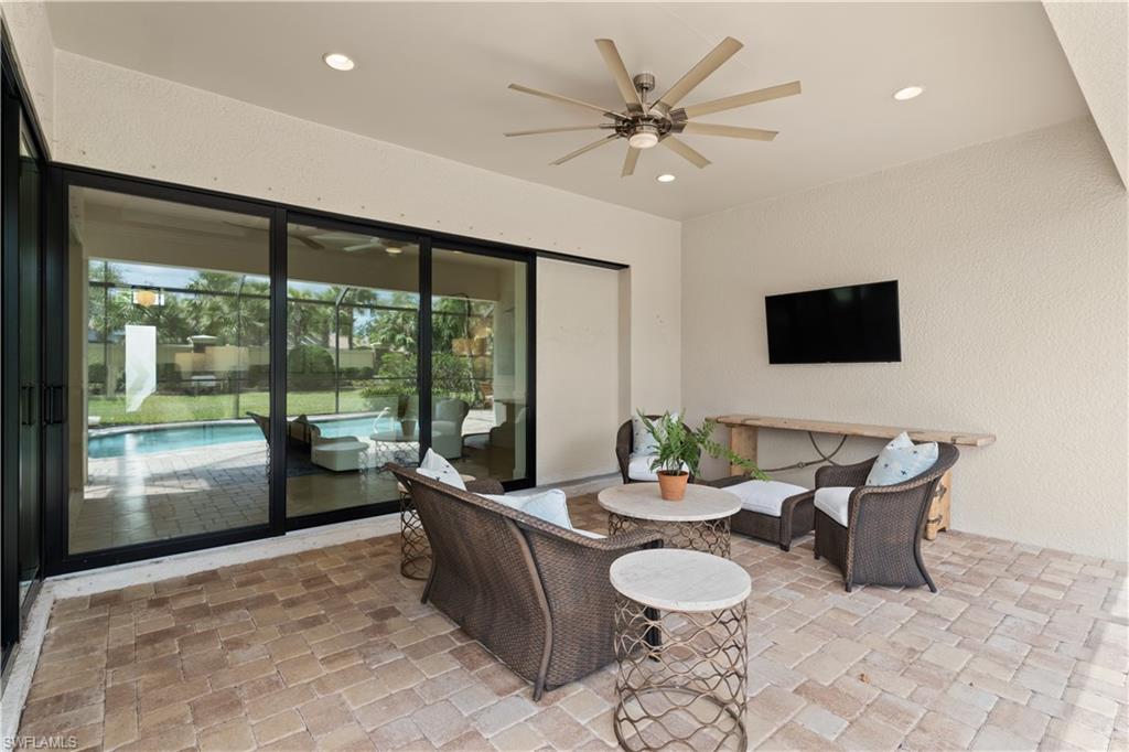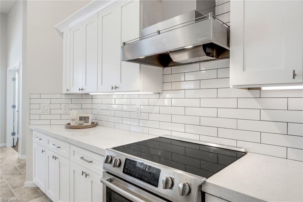 Upgrades galore! This home is a must-see with its fresh paint, a newer kitchen complete with KitchenAid appliances, Carrea Marble countertops, hurricane impact windows throughout, custom cabinetry and a walk-in pantry. The great room is spacious thanks to the removal of the interior partition. Enjoy dinner on the oversized covered lanai by your solar heated saltwater pool and watch the sunset across the lake. The dramatic master suite opens to the Lania and boasts 2 large custom closets, a soaking tub, dual shower heads and dual sinks. The stunning wainscot dining room overlooks the newly landscaped garden. Upscale features include 12 ft. ceilings, tray ceilings, large crown molding, solid wood cabinetry, custom closet cabinetry in every closet, granite and wood floors with upgraded tiles, epoxy garage floor, extended garage and storage. Nestled in North Naples. The Quarry is a one of a kind community built around 3 pristine lakes, approximately 500 acres of interlocking waterways and navigable Stone Lake at its heart. Enjoy boating, water skiing, kayaking or beach activities. Experience Southwest Florida at its best in The Quarry. The Quarry Beach Club is a private member owned club that features a new redesigned resort and lap pool, fitness and wellness center, tennis, pickleball and bocce court and boating. Dining at its finest is available at the indoor dining room or outdoor Q Bar. The lifestyle calendar of events offers something for everyone. It's all right here for you to enjoy. You'll never want to leave.