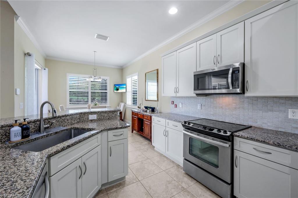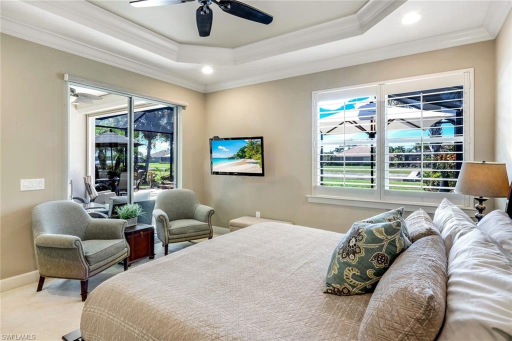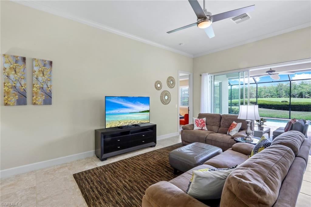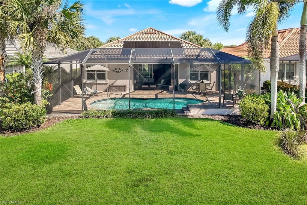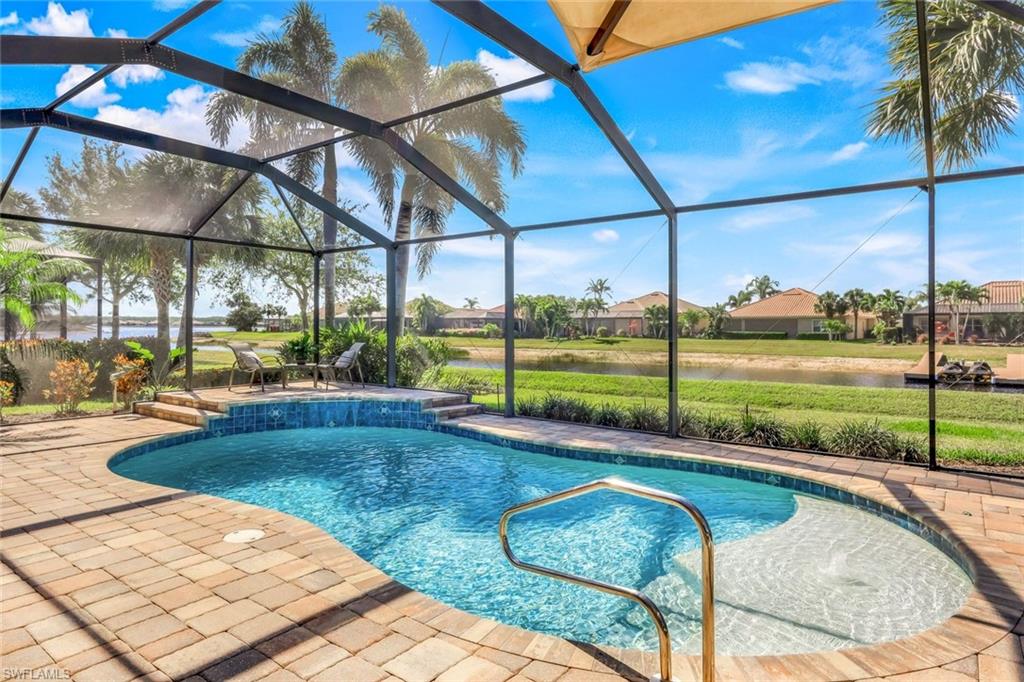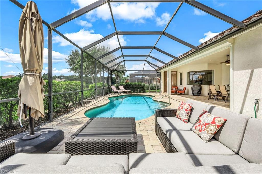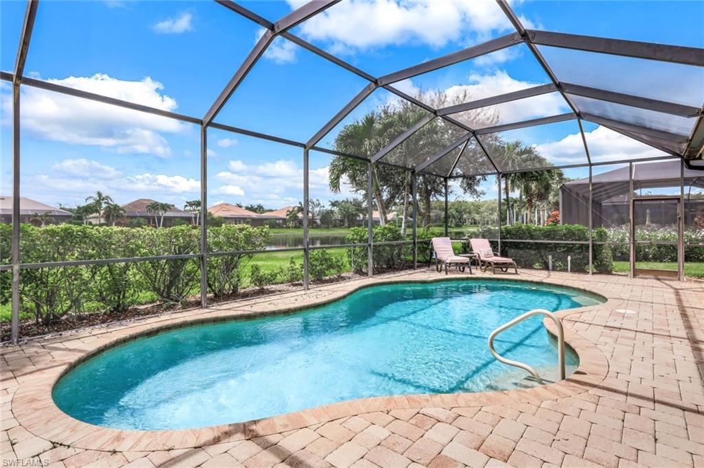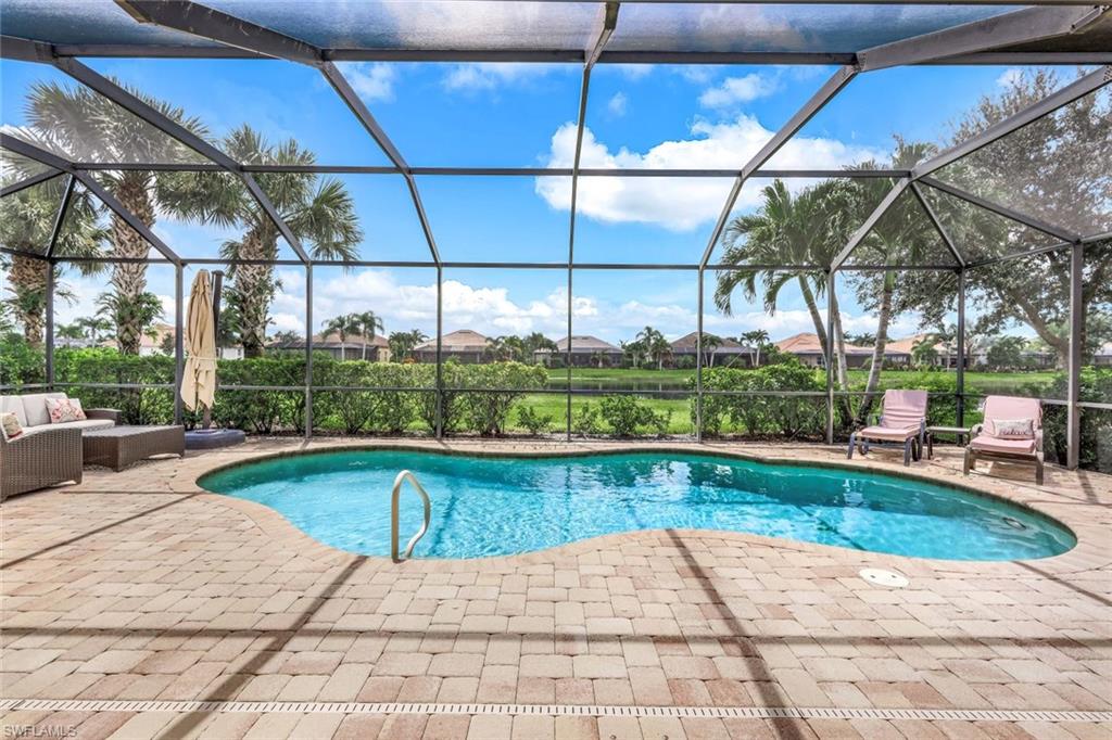 This exquisite home doesn't just offer the Naples Florida lifestysle, it defines it! Welcome Home to Resort-Style Living with Stunning Water Views and a Southern Exposure. This beautifully maintained 3-bedroom, 2-bath home offers the perfect blend of luxury, style and comfort. The expansive lanai serves as an idyllic oasis for quiet reflection or alfresco entertaining beneath the warm Florida sun. Set amidst the natural splendor of a pristine freshwater lake and a picturesque golf course, this home enjoys a setting of unparalleled tranquility and scenic beauty. Step inside to a bright and sun-filled open floorplan that allows plenty of room for family gatherings and entertaining guests. Upgrades include Solar heated pool, Plantation Shutters throughout, crown molding, quartz counters, newer light fixtures, newer carpet in the bedrooms. The open kitchen and spacious island create an inviting hub for gatherings, seamlessly extended by three sets of sliding doors that blur the line between indoors and out. Discover the elegant retreat of the Primary Bedroom; well suited with 2 closets, dual vanities, private water closet, walk in shower and soaking tub. The versatile third bedroom effortlessly adapts to your needs—functioning as a guest suite, home office, or both - featuring a built-in Murphy bed, custom desk area, and sleeper sofa for added convenience. Completing the home is a meticulously organized two-car garage, finished with epoxy flooring and an array of custom shelving systems for optimal storage and functionality. Residing within The Quarry, residents enjoy access to a wealth of world-class amenities. The renovated Beach Club serves as the vibrant centerpiece of the community, offering both casual and fine dining experiences. Wellness and fitness are elevated with a state-of-the-art, two-story fitness center, complete with a variety of group classes and personalized training options. For nature lovers and outdoor adventurers, The Quarry is a true sanctuary. With over 500 acres of navigable lakes, opportunities for boating, kayaking, paddleboarding, and fishing abound. Scenic walking trails meander through lush preserves, inviting peaceful exploration and an immersive connection to nature. This is more than a home, it is a lifestyle of sophistication, serenity, and unparalleled recreation.