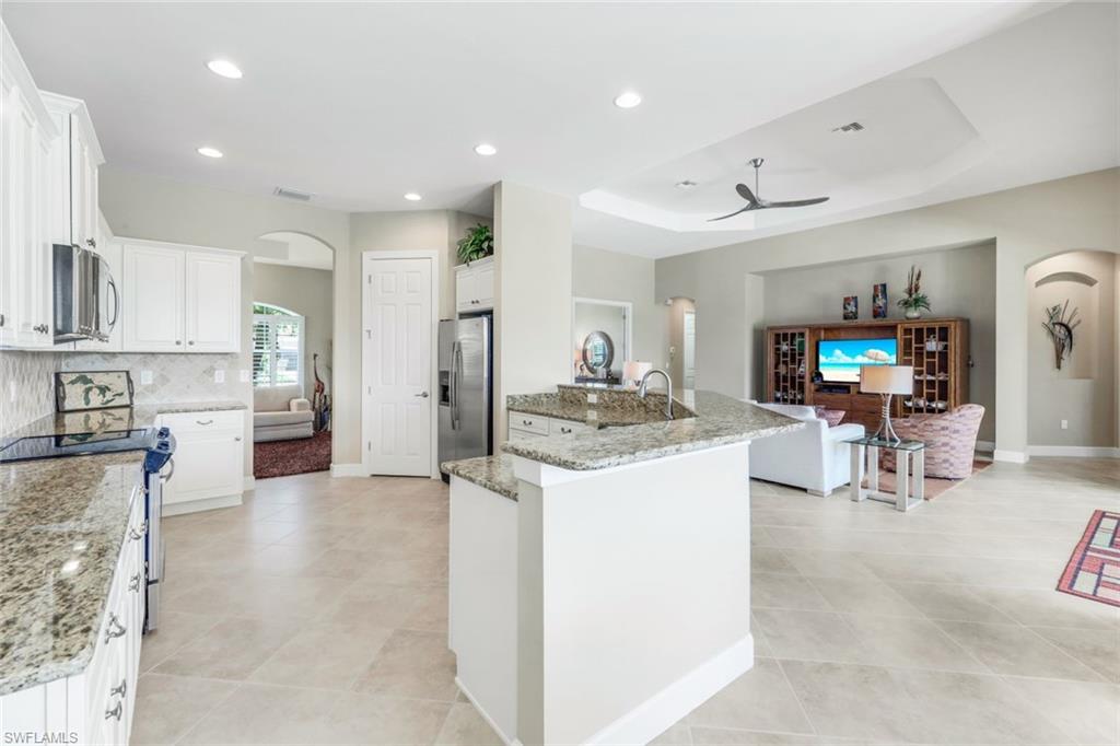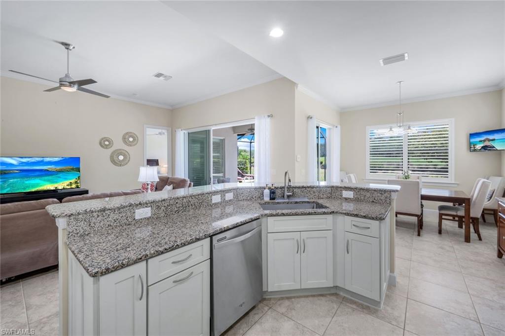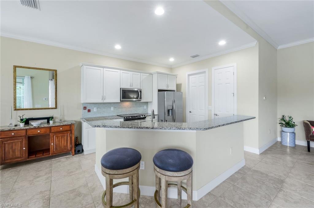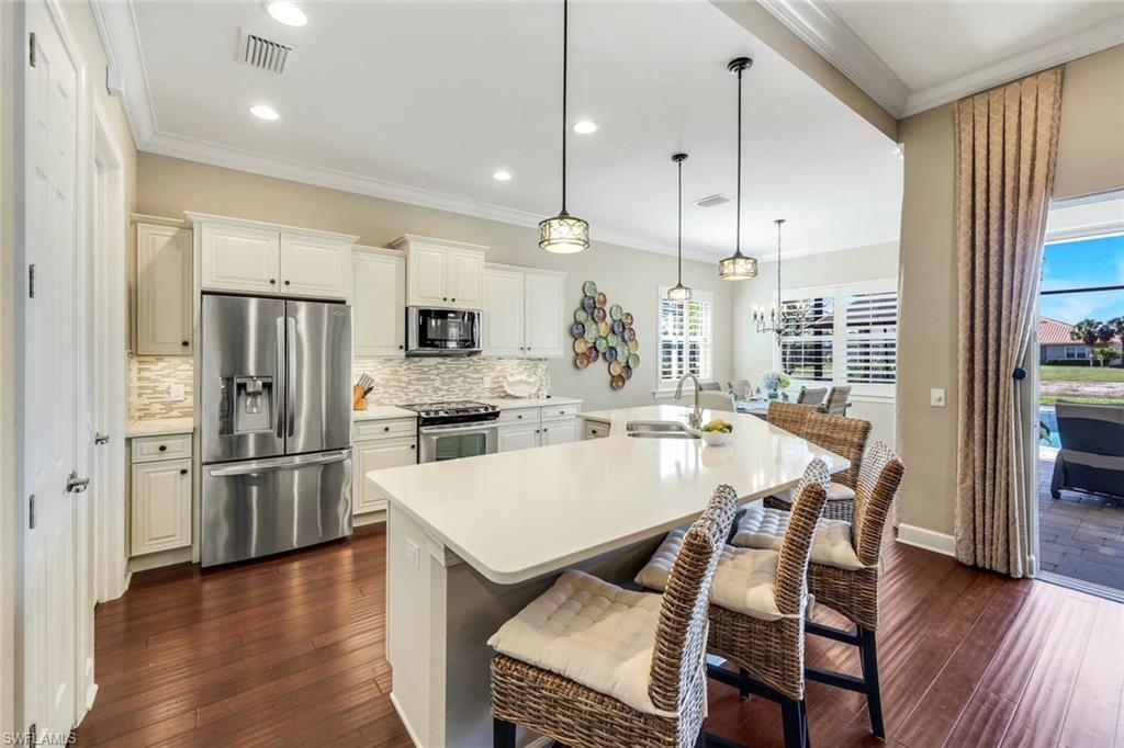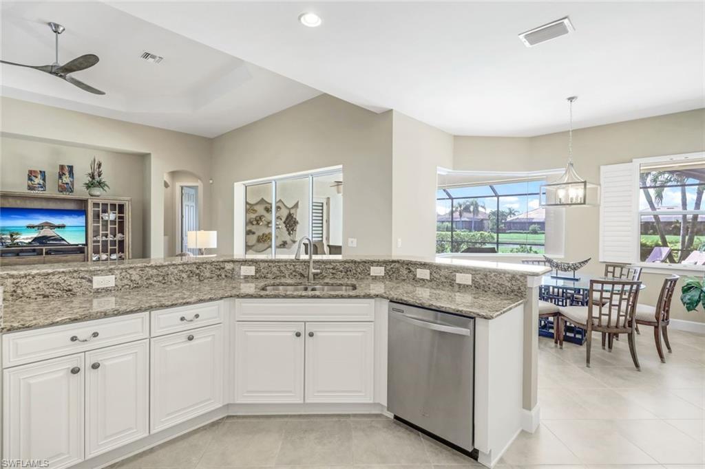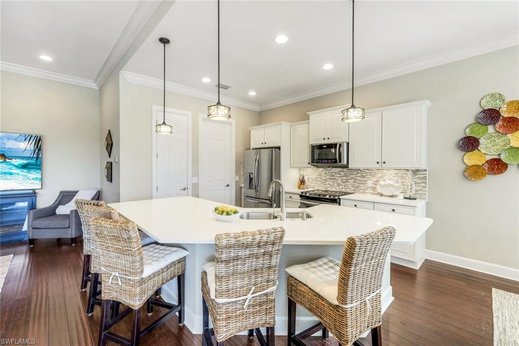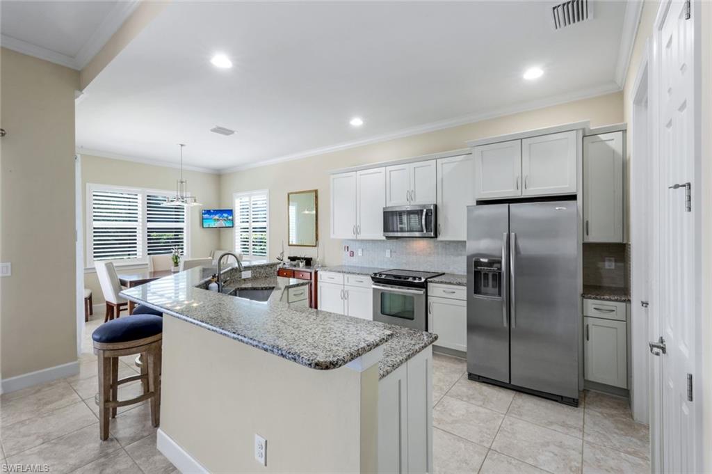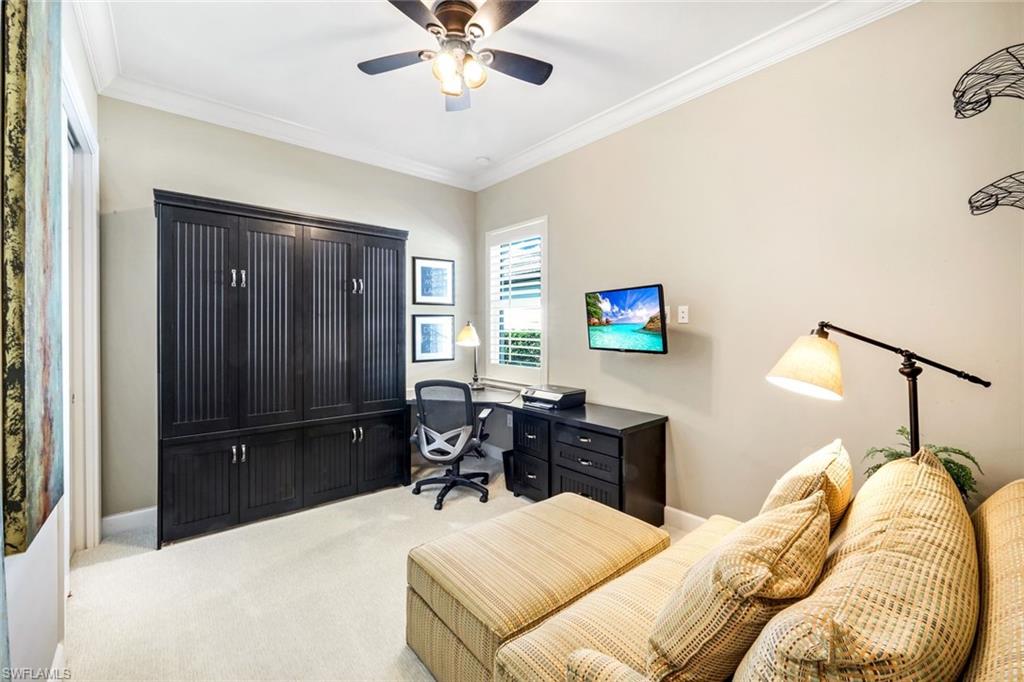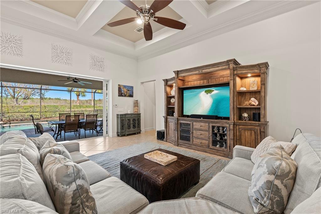 This exquisite home doesn't just offer the Naples Florida lifestysle, it defines it! Welcome Home to Resort-Style Living with Stunning Water Views and a Southern Exposure. This beautifully maintained 3-bedroom, 2-bath home offers the perfect blend of luxury, style and comfort. The expansive lanai serves as an idyllic oasis for quiet reflection or alfresco entertaining beneath the warm Florida sun. Set amidst the natural splendor of a pristine freshwater lake and a picturesque golf course, this home enjoys a setting of unparalleled tranquility and scenic beauty. Step inside to a bright and sun-filled open floorplan that allows plenty of room for family gatherings and entertaining guests. Upgrades include Solar heated pool, Plantation Shutters throughout, crown molding, quartz counters, newer light fixtures, newer carpet in the bedrooms. The open kitchen and spacious island create an inviting hub for gatherings, seamlessly extended by three sets of sliding doors that blur the line between indoors and out. Discover the elegant retreat of the Primary Bedroom; well suited with 2 closets, dual vanities, private water closet, walk in shower and soaking tub. The versatile third bedroom effortlessly adapts to your needs—functioning as a guest suite, home office, or both - featuring a built-in Murphy bed, custom desk area, and sleeper sofa for added convenience. Completing the home is a meticulously organized two-car garage, finished with epoxy flooring and an array of custom shelving systems for optimal storage and functionality. Residing within The Quarry, residents enjoy access to a wealth of world-class amenities. The renovated Beach Club serves as the vibrant centerpiece of the community, offering both casual and fine dining experiences. Wellness and fitness are elevated with a state-of-the-art, two-story fitness center, complete with a variety of group classes and personalized training options. For nature lovers and outdoor adventurers, The Quarry is a true sanctuary. With over 500 acres of navigable lakes, opportunities for boating, kayaking, paddleboarding, and fishing abound. Scenic walking trails meander through lush preserves, inviting peaceful exploration and an immersive connection to nature. This is more than a home, it is a lifestyle of sophistication, serenity, and unparalleled recreation.