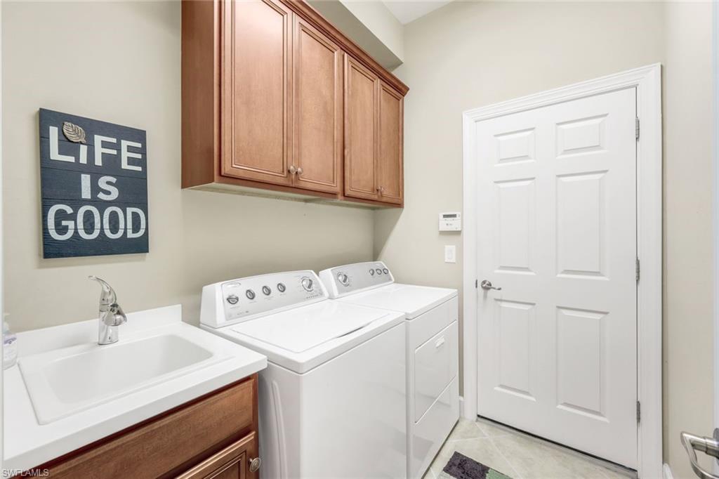 EXPANSIVE GOLF AND PRESERVE VIEWS, NO GOLF WAITLIST! Are you looking for a luxury, amenity-rich optional golf and boating community? Look no further than The Quarry, an exceptional lakefront community sprawled across over 500 acres of pristine lakes. This immaculate 3 bedroom, 2 bath, 2 car garage home is situated on a large lot with stunning golf and preserve views and is now being offered TURNKEY! ALL YOU NEED IS YOUR SUITCASE TO START ENJOYING THE FLORIDA LIFESTYLE! The light and bright kitchen is perfect for entertaining family and friends and features white shaker cabinets with pull out drawers, granite countertops, and stainless-steel appliances. Enjoy sitting on your spacious lanai with a saltwater pool and spa overlooking the golf course. Additional features include 20-inch tile floors in the main living area, upgraded luxury plank floors in the bedrooms, plantation shutters, electric shutters on the lanai, NEW AC plus more! This gated, amenity-rich environment is perfect for golfing, boating, water skiing, jet skiing, kayaking, and fishing enthusiasts. Enjoy the Beach Club, which features a resort pool, lap pool, hot tub, tennis, pickleball, and bocce courts, a Tiki bar with poolside food and beverage service, a state-of-the-art wellness center, and a full-time activities director who organizes a variety of social events. There is also NO WAITLIST for OPTIONAL golf membership to The Quarry Golf Lodge and a NEW Limited-time 3-year payment plan available for the PGA-level Hurdzan-Frye 18-hole golf course. Whether you are an avid golfer or simply want the lifestyle without the obligation, discover The Quarry!