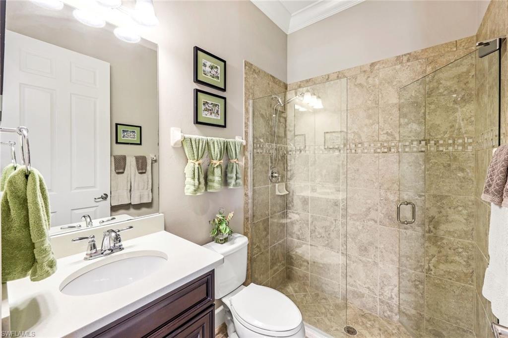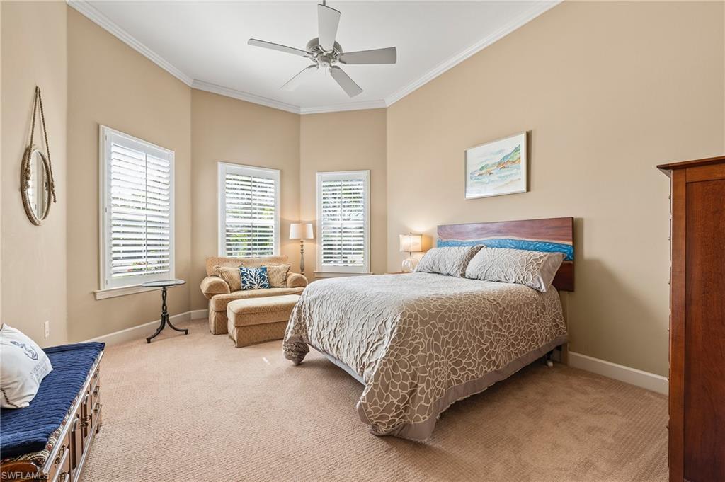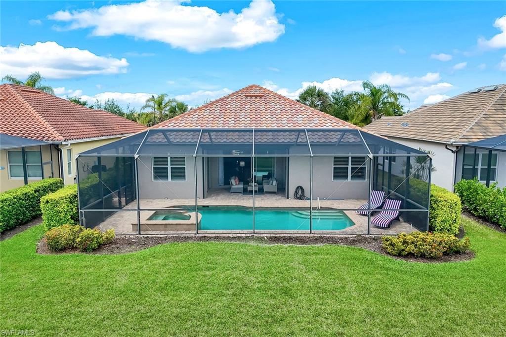 FOR A LIMITED TIME - IMMEDIATE GOLF MEMBERSHIPS AVAILABLE! Discover luxury living in this exquisite 4-bedroom, 3-full-bath home nestled on a spacious corner lot with coveted southern exposure in the amenity-rich community of The Quarry. Perfectly designed for comfort and elegance, this TURNKEY residence is move-in ready and packed with high-end features. The primary bedroom, conveniently located on the first floor, offers a serene retreat with ample natural light, complemented by plantation shutters throughout the home for a touch of timeless sophistication. The open-concept layout boasts crown molding, adding a refined finish to the living spaces. Stay cool year-round with a brand-new air conditioner, ensuring energy-efficient comfort. The oversized lanai with the in-ground pool and spa is perfect for relaxing and entertaining. Whether you are hosting a summer barbecue by the pool or enjoying a cozy night watching the sunset, this home has everything you need to create lasting memories with your loved ones. Situated in The Quarry, this home grants access to a vibrant community lifestyle, including the newly renovated beach club with restaurant, tiki bar, resort pool, lap pool, wellness center, 5 lighted soft-surface tennis courts, 3 lighted bocce courts, 5 lighted pickleball courts, a tennis shop, and over 500 acres of lakes where residents enjoy boating and fishing. The full-time activities director will make sure a great time is had by all. In addition, various golf memberships are offered at the privately owned Quarry Golf Club. Designed by world-renowned architectural team of Dr. Michael Hurdzan and Dana Fry in 2007, this Par 72 championship golf course offers an exceptional golf experience with spectacular views. Water appears on every hole, and the course is a true test for golfers of all levels. With 5 sets of tees and a unique layout to every hole, you'll never get tired of challenging this exceptional course. Don’t miss this opportunity to own a meticulously maintained, turnkey gem in Naples’ premier Golf and Beach community.