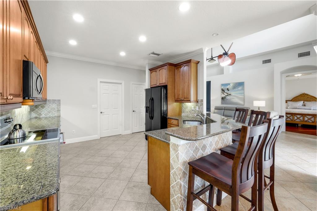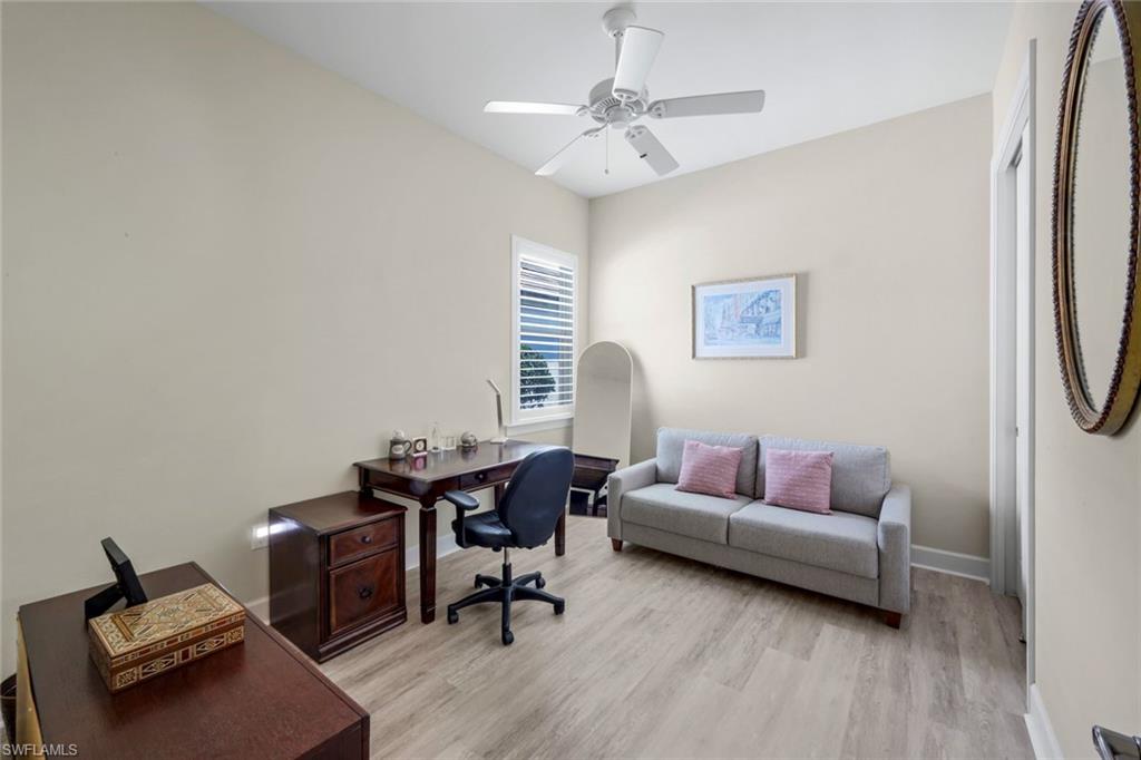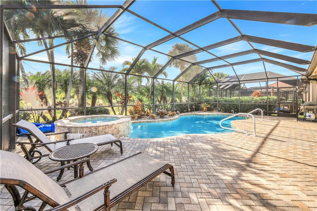 Welcome to this beautifully maintained pool home in a sought-after Naples community! This pristine 2BR plus Den/2BA residence offers upgrades galore! Step inside to find high ceilings, elegant wood flooring, and a spacious great room that flows seamlessly into the upgraded kitchen featuring granite countertops, stainless-steel appliances, and a generous breakfast bar. The split-bedroom floorplan ensures privacy, with a serene primary suite that includes a walk-in closet, and a spa-inspired bathroom. Enjoy Florida living at its finest on the covered lanai with an oversized sparkling pool and spa overlooking the private and lush preserve landscaping. The property also includes an attached two-car garage with built-in storage, an epoxy floor, equipped with a brand new mini split premium Levalor AC, a motorized bike lift, and separate large storage lift. Located just minutes from pristine Gulf beaches, world-class dining, shopping, golf courses, and top-rated schools, this home offers the perfect blend of comfort, convenience, and classic Naples charm. The Quarry is an amenity-rich, gated lakefront community boasting over 500 acres of lakes ideal for boating, water skiing, paddleboarding, jet skiing, kayaking, and fishing. The newly renovated Beach Club features tennis, pickleball, bocce ball, a Tiki bar, a restaurant, poolside food and drink service, a wellness center, and a full-time activities director to keep you engaged. Optional golf membership is available, making The Quarry a perfect fit for everyone! Embrace the lifestyle you’ve always wanted in this vibrant community! Whether you’re seeking a year-round residence, seasonal getaway, or investment opportunity, 9121 Quartz Lane is move-in ready and sure to impress.