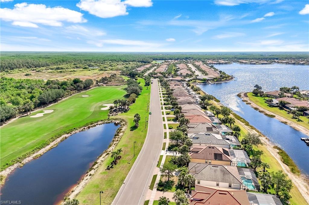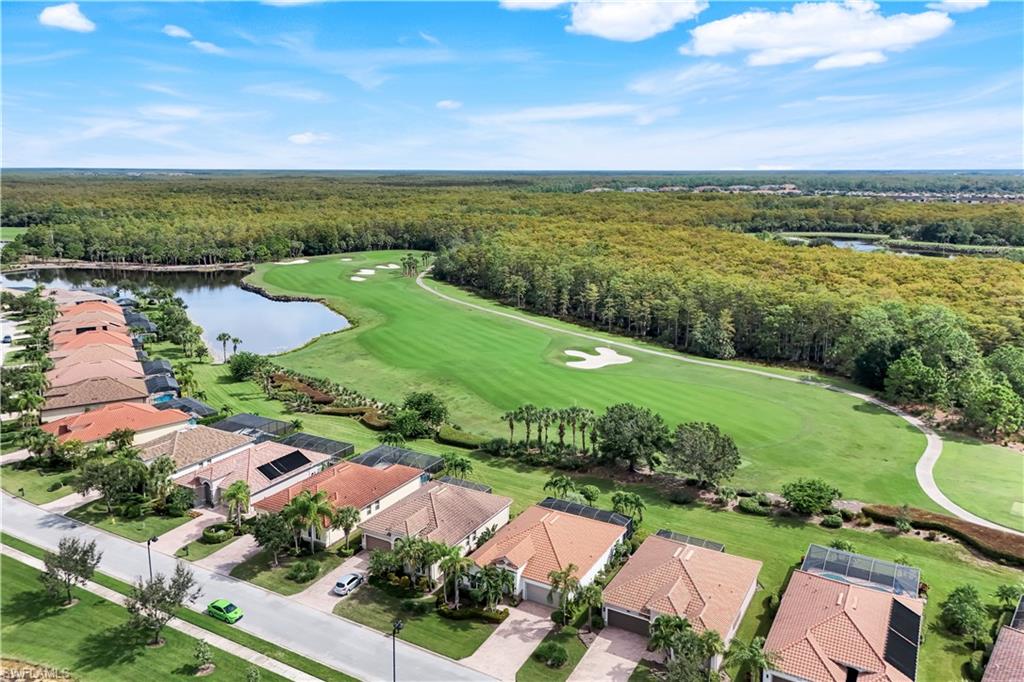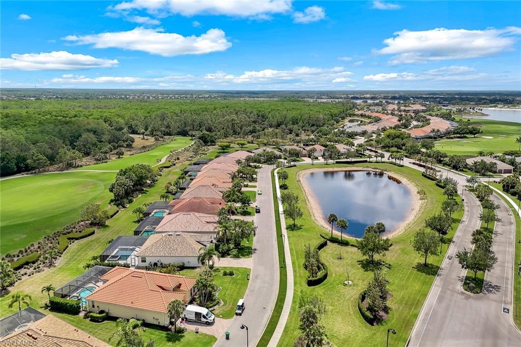 Spectacular sunsets, rare double water views, and a front-row seat to The Quarry’s championship golf course — welcome to the ultimate Southwest Florida lifestyle. This beautifully appointed TURNKEY coach home is ideally positioned at the end of a quiet cul-de-sac, offering added privacy and minimal traffic — a true lock-and-leave retreat. Enjoy expansive views of both a sparkling pond and the lake, plus the 2nd and 3rd golf holes, creating a one-of-a-kind setting. This END UNIT, open floor plan is filled with natural light and highlights high ceilings, tile flooring throughout, and seamless indoor/outdoor living from the oversized screened lanai. The kitchen features granite countertops, stainless steel appliances, and a spacious layout ideal for entertaining. The private owner’s suite showcases incredible water and sunset views and a spa-inspired bath with dual vanities, a walk-in shower, and a soaking tub. Guests can enjoy privacy in their own suite at the front of the home, while the dedicated den/office with French doors is perfect for working remotely. A 2-car garage adds extra storage and convenience. Located in the premier lakeside community of The Quarry, residents enjoy 500 acres of navigable lakes for boating and fishing, boat slips available for lease, tennis, pickleball, bocce, a resort-style pool, lap pool, a two-story wellness center, beach club with Tiki bar & poolside service, and fine dining. For golfers, optional membership is available at the private 18-hole, Par 72 championship course designed by Dr. Michael Hurdzan and Dana Fry. This is your opportunity to live every day like you’re on vacation! Life at the Quarry is true resort-style living in the heart of Naples in Southwest Florida!