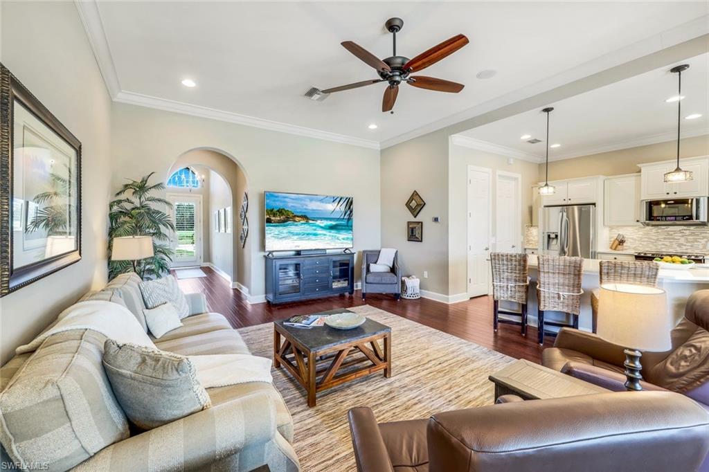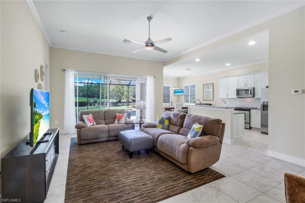 THE VIEWS from this gem in Naples’ Quarry is pure wow! Picture yourself in a stunning two-bed, two-bath with a den that’s basically a flex space for whatever you crave. Every inch screams luxury: freshly painted inside and out, sleek upgraded cabinets, newer appliances, gleaming floors, elegant crown molding, chic lighting, a killer sound system, an insulated garage for your toys and a Generac 20K watt automatic standby generator. The extended lanai equipped with electric storm screens so you can sip wine through any weather, gazing at jaw-dropping views of the seventh fairway and pristine preserve. Oh, and there’s room for YOUR dream pool! The Quarry's got everything for that ultimate Naples vibe with over five hundred acres of lakes for boating, jet-skiing, wakeboarding, or just chilling on a paddleboard. There's a resort-style beach club with a private sandy shore, perfect for picnics. There is tennis, pickleball, bocce ball, plus a tiki bar and indoor/outdoor restaurant with poolside service-grab a cocktail without moving. Fitness center, lap pool, walking paths through preserves, and an activities director keeps things buzzing with events. It's living in a gated resort, right in your backyard. Various optional memberships are offered at the privately owned Quarry Golf Club. Designed by world-renowned architectural team of Dr. Michael Hurdzan and Dana Fry in 2007, this Championship golf course wraps around the water with eighteen holes of pure scenic bliss. It’s not a home-it’s your VIP Naples escape!