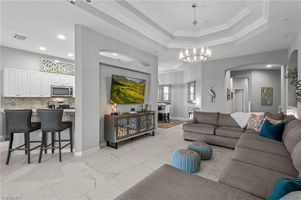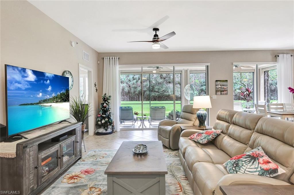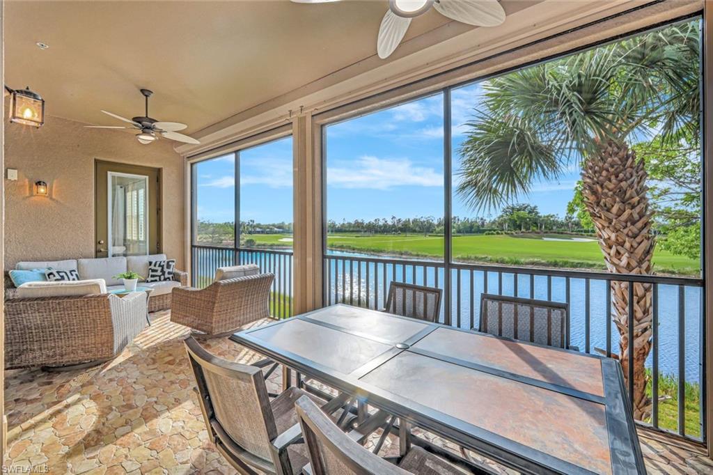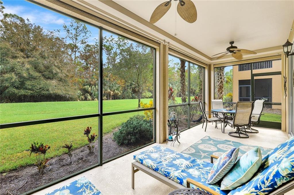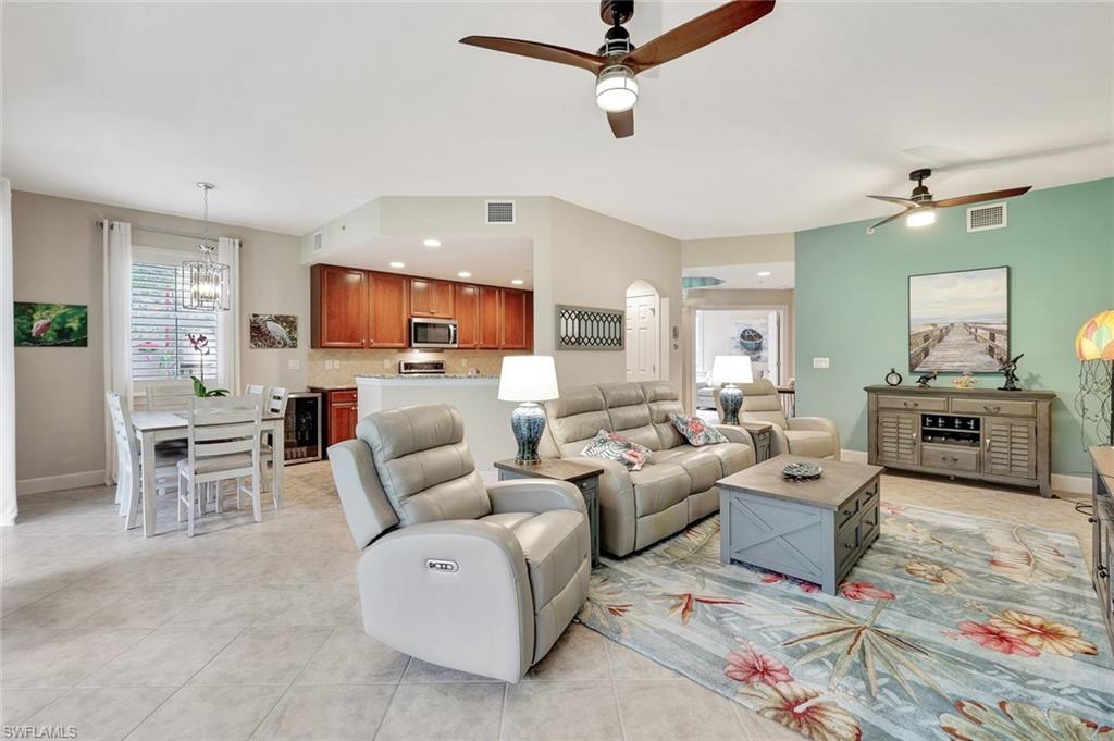 Welcome to your dream condo located in The Quarry. This stunning property boasts 2 bedrooms plus a den, 2 bathrooms, and a spacious 2 car garage. Recently painted inside with fresh, modern colors, this condo is move-in ready and comes beautifully furnished. Step inside and be greeted by new fans that provide a cool breeze throughout the space. But the real showstopper? The gorgeous views of the 12th hole right from your own living room. Imagine waking up every morning to the sight of lush greenery and the sound of birds chirping as you sip your morning coffee. This condo is not just a place to live, it's a lifestyle. New roofs are installed, and new exterior paint is completed, ensuring that your investment is protected for years to come. Additionally, new lighting and landscaping will be completed by year end giving the entire complex a fresh and modern look WITH NO SPECIAL ASSESSMENT! Tucked away in North Naples, The Quarry isn't just a community, it's a resort-style escape on 500+ acres of pristine lakes and preserves! Vacation vibe amenities include the newly renovated beach club with restaurant, tiki bar, resort pool, lap pool, wellness center, 5 lighted soft-surface tennis courts, 3 lighted bocce courts, 5 lighted pickleball courts, a tennis shop, boating, kayaking, fishing and the full-time activities director will make sure a great time is had by all. In addition, various golf memberships (NO WAITLIST) are offered at the privately owned Quarry Golf Club. Designed by world-renowned architectural team of Dr. Michael Hurdzan and Dana Fry in 2007, this Par 72 championship golf course offers an unparalleled golf experience with spectacular views. Water appears on every hole, and the course is a true test for golfers of all levels. With 5 sets of tees and a unique layout to every hole, you'll never get tired of challenging this exceptional course.
