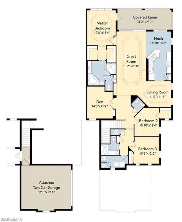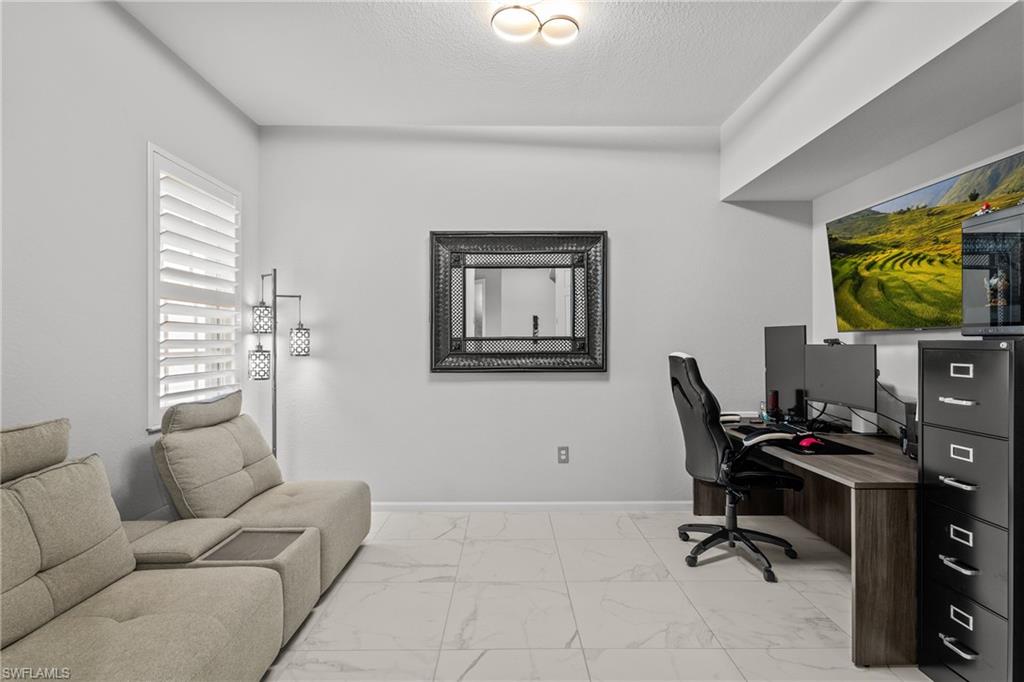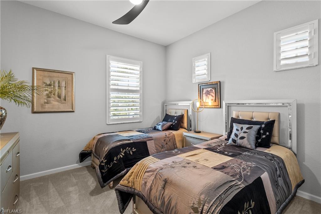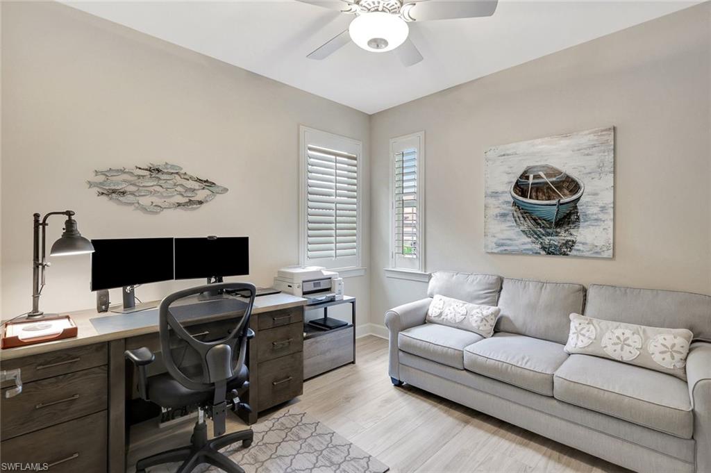 FOR A LIMITED TIME, THERE IS NO WAIT LIST FOR GOLF! Discover your dream home in this charming first-floor condo in the desirable Quarry community! Spanning just under 1,700 square feet, this beautifully updated 2-bedroom plus den, 2-bath residence offers modern comfort and low-maintenance living. Featuring newer appliances, luxury vinyl flooring, and fresh interior paint, this home is move-in ready. Elegant plantation shutters adorn every window, adding sophistication and privacy. Enjoy the spacious 2-car attached garage with sleek epoxy flooring and relax on the lanai, equipped with Storm Smart screen shutters for peace of mind. These condos are enhancing their curb appeal with new roofs, fresh exterior paint, and upcoming landscaping and lighting upgrades—all completed by year-end with no special assessment. Perfect for entertaining or quiet relaxation, this condo blends luxury and convenience in a prime location. Tucked away in North Naples, The Quarry isn't just a community, it's a resort-style escape on 500+ acres of pristine lakes and preserves! Vacation vibe amenities include the newly renovated beach club with restaurant, tiki bar, resort pool, lap pool, wellness center, 5 lighted soft-surface tennis courts, 3 lighted bocce courts, 5 lighted pickleball courts, a tennis shop, boating, kayaking, fishing and the full-time activities director will make sure a great time is had by all. In addition, various golf memberships are offered at the privately owned Quarry Golf Club. Designed by world-renowned architectural team of Dr. Michael Hurdzan and Dana Fry in 2007, this Par 72 championship golf course offers an unparalleled golf experience with spectacular views. Water appears on every hole, and the course is a true test for golfers of all levels. With 5 sets of tees and a unique layout to every hole, you'll never get tired of challenging this exceptional course. Don’t miss your chance to own this meticulously maintained gem in The Quarry!