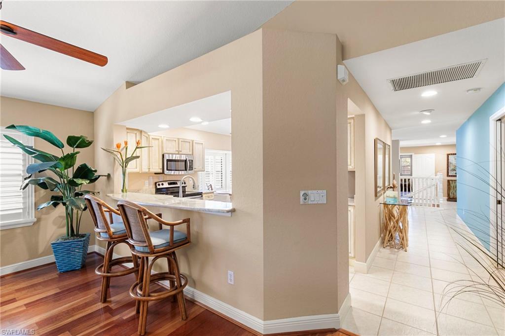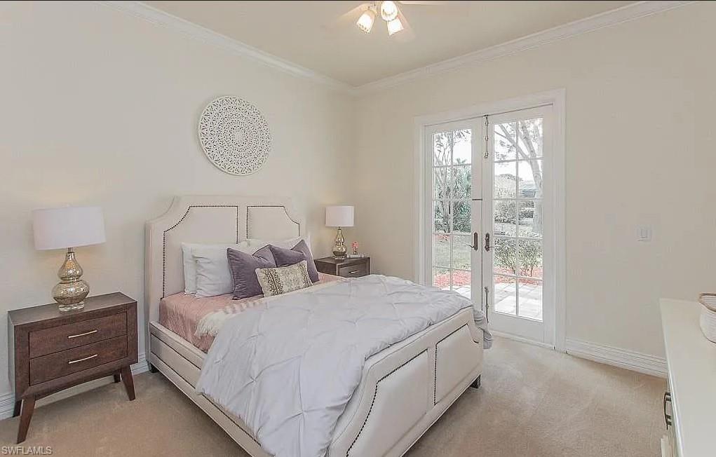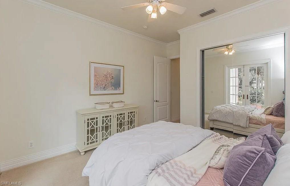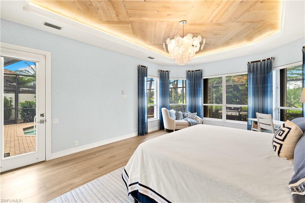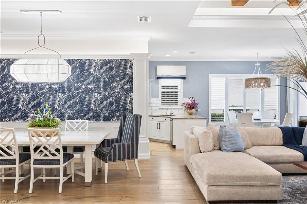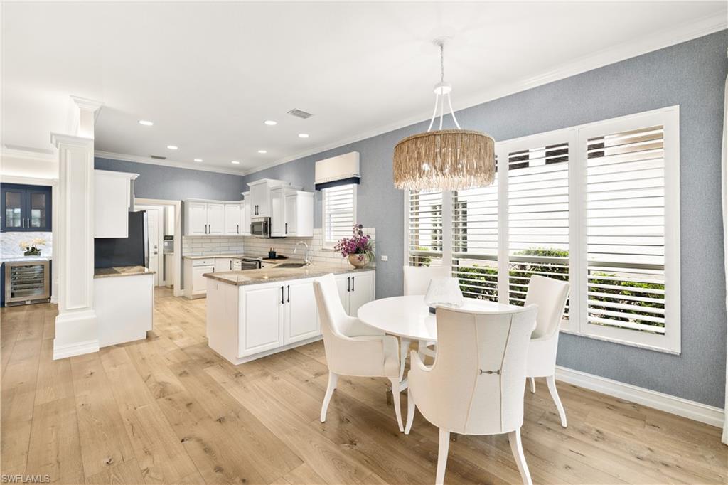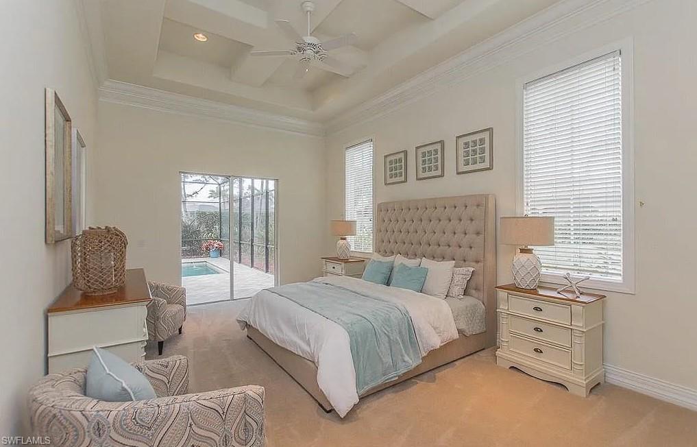 This stunning residence has been completely reimagined by the award winning team at Design West and presents a true “close today and entertain tomorrow” opportunity. Every detail of this three-bedroom plus den, South-facing pool home has been professionally curated and finished to the highest of standards, creating one of the most exceptional turnkey offerings here in Naples. Interiors showcase DuChateau hardwood flooring, a Cristallo Italian backlit quartzite wine bar, designer furnishings and window treatments, striking wallcoverings, custom ceiling inlays, refined lighting, and luxurious accessories that harmonize seamlessly throughout the entire property. The gourmet kitchen, dining, and great room flow effortlessly for entertaining, complete with custom chandeliers, area rugs, and accent furnishings. The primary suite includes a full Design West furnishing package with custom closets, wallcoverings, rug, lighting, and a wood ceiling inlay, while guest rooms and baths are equally tailored with coordinated furniture, mirrors, and finishes. Peace of mind comes with a brand-new tile roof (2019), electronic hurricane shutters with accordion shutters on remaining windows, and a custom epoxy-finished garage with cabinetry plus an extended bay for a golf cart. Outdoor living is equally refined, with a south-facing saltwater pool, sectional seating, dining areas, and designer furnishings overlooking tranquil golf course views. Offered fully furnished and accessorized, this home represents the most effortless and sophisticated move-in experience available in The Strand. Residents enjoy resort-style amenities including a full-service spa, pickleball, tennis, bocce, dining, an active social calendar, and 27 holes of championship golf. Schedule your private tour today to experience the best of Naples living.