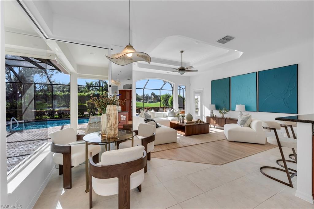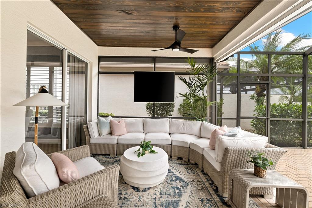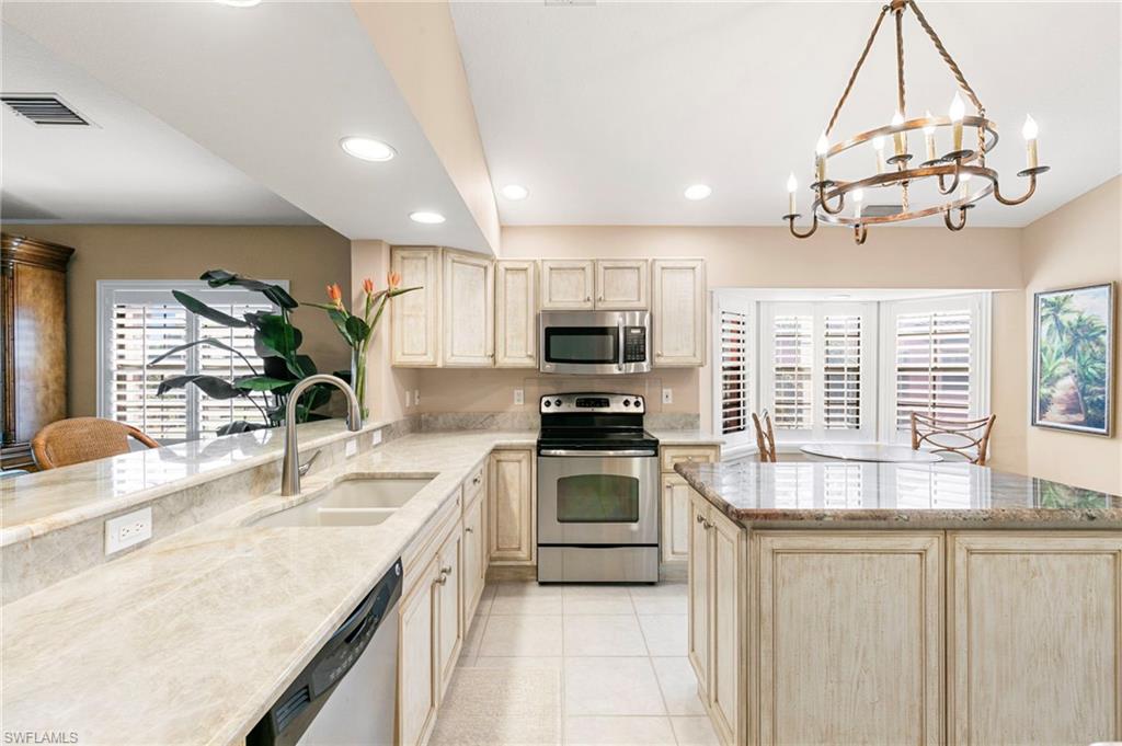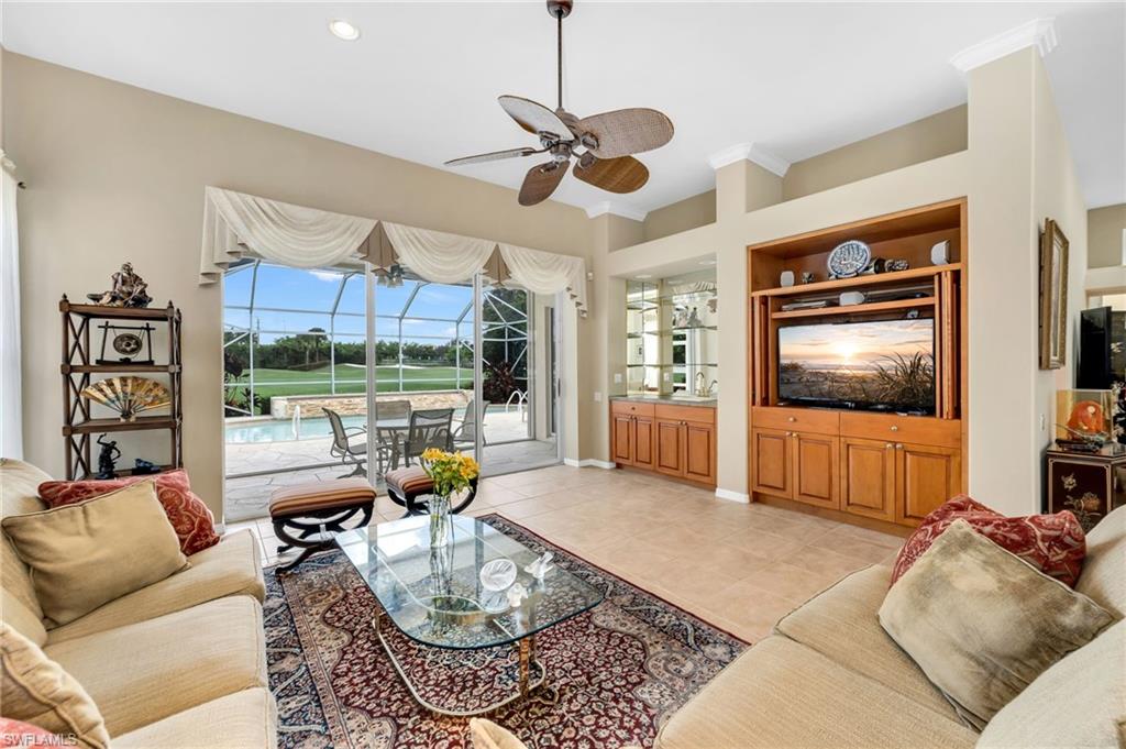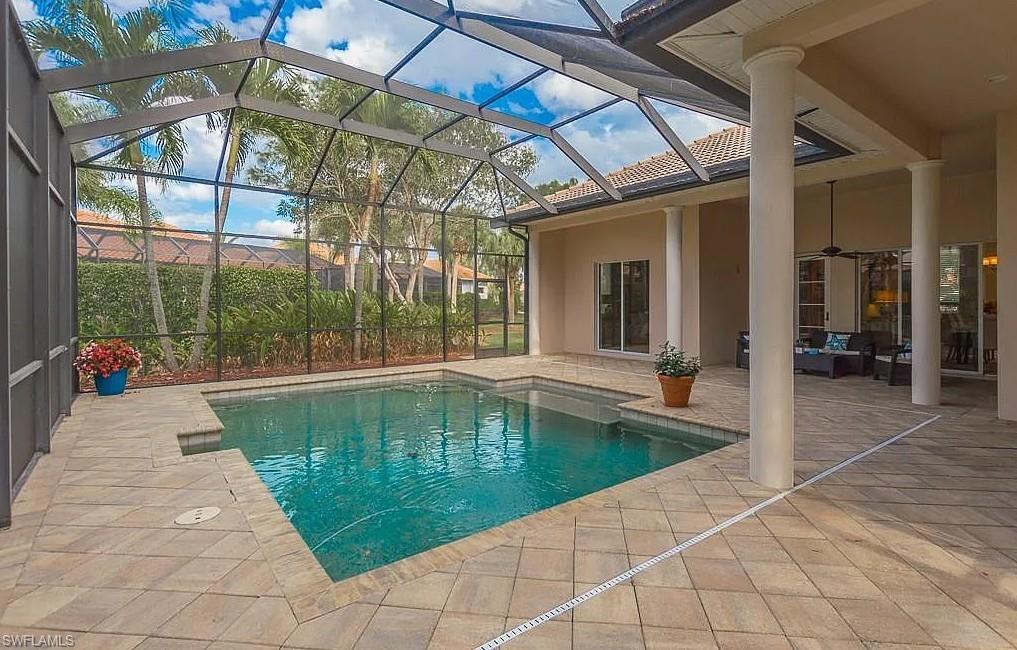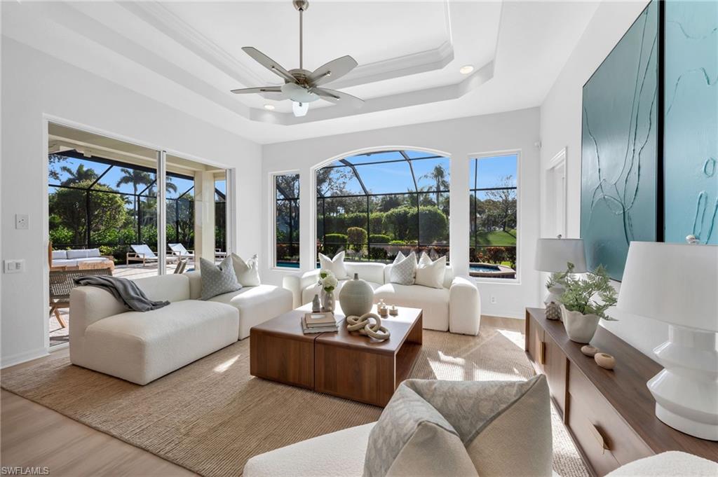 If you’ve been waiting for the right home in North Naples, a place that’s peaceful, beautifully cared for and ready for your next chapter, you will want to see this home. The custom Arthur Rutenberg Tradewinds III blends timeless design with noteworthy updates offering comfort, privacy and easy living in one of Naples’ most respected golf communities. From the moment you step inside, natural light and warm open spaces welcome you. There is a separate living room and great room, as well as a morning room with seamless corner window, all having direct access to lanai. The great room has south-facing oversize picture windows with golf course view. Kitchen has custom cabinetry, two islands, Italian marble, SS appliances, pull out pantry and remote skylight that lets in fresh air and west sunlight. The private primary suite commands the entire length of one side of the house, with oversized bath, room-size custom closet and a separate shoe closet. Primary bath is spa inspired, finished in Porcelanosa tile, French made vanities, free standing air jetted tub, LED mirrors and frameless shower. It is a soothing space that aligns with calming energy. Outdoor living area is just as impressive, with massive lanai, large pool and spa. Mature landscaping and new Calusa privacy hedge bring in Nature’s tranquility. Imagine quiet evenings outside, weekend gatherings or a morning swim before golf with friends. There is even an outdoor kitchen with custom cabinetry, TEC infrared grill, separate built in burner, custom SS venting, bar sink and granite counters. Recent updates to pool equipment (including new heater and pump), screened cage, and complete pool resurfacing allow headache-free enjoyment. Significant improvements make ownership easy, including 2025 roof, new water heaters, new gutters, fresh paint exterior & interior, updated irrigation system, hurricane-rated windows and motorized shutters. A 3.5 car garage with new epoxy flooring and full attic planking round out this exceptional home. The location within the Strand also adds appeal. The private back gate entrance offers quick access. Strand amenities include 27 holes of championship golf, tennis, pickleball, bocce and lawn croquet; as well as a fitness complex, multiple dining venues and a clubhouse with a full calendar of social activities. It is one of North Naples’ most desirable and inviting private clubs. If you are looking for a move in ready home with exceptional outdoor living, thoughtful improvements and a prime location near Publix, Target and Walmart, this home offers a comfortable, relaxed environment that exemplifies the Naples casual easy lifestyle.