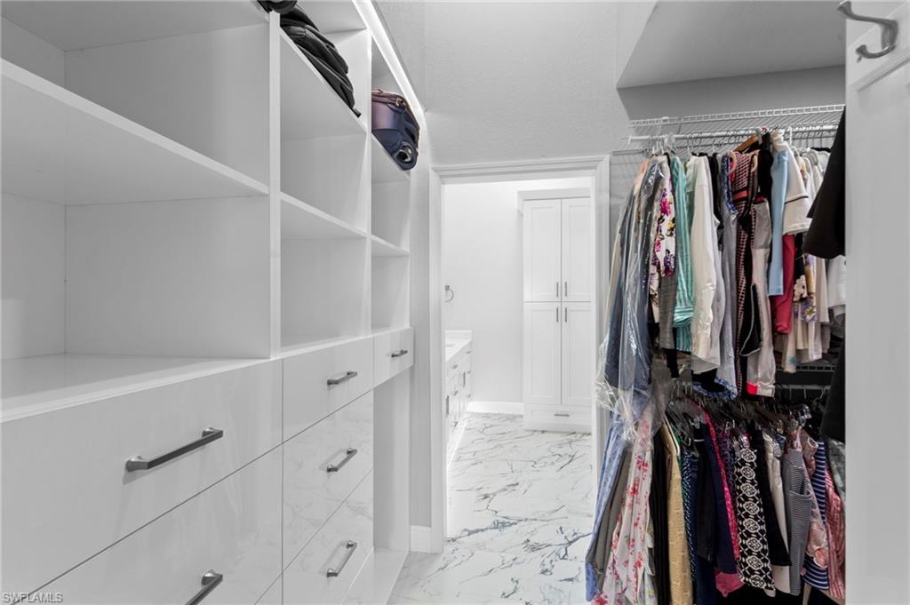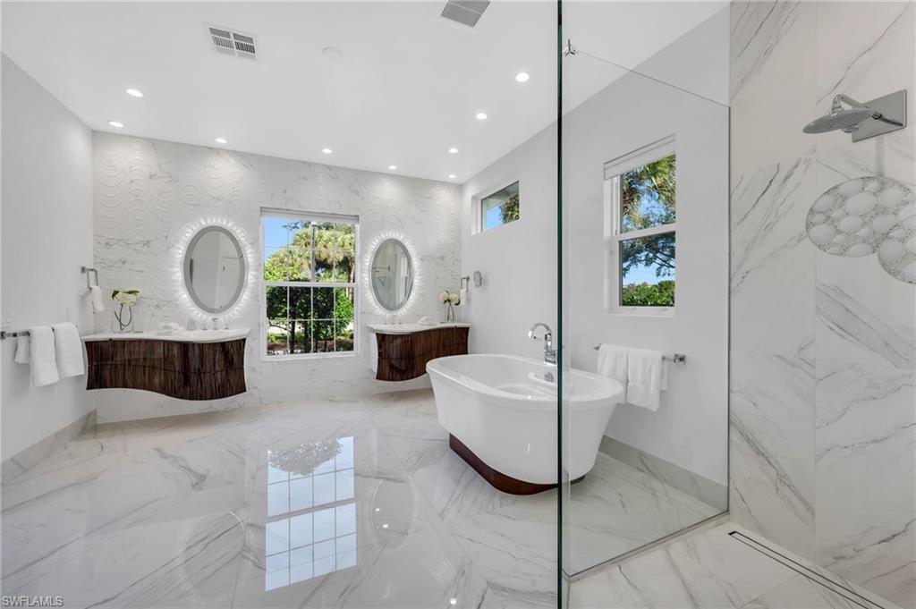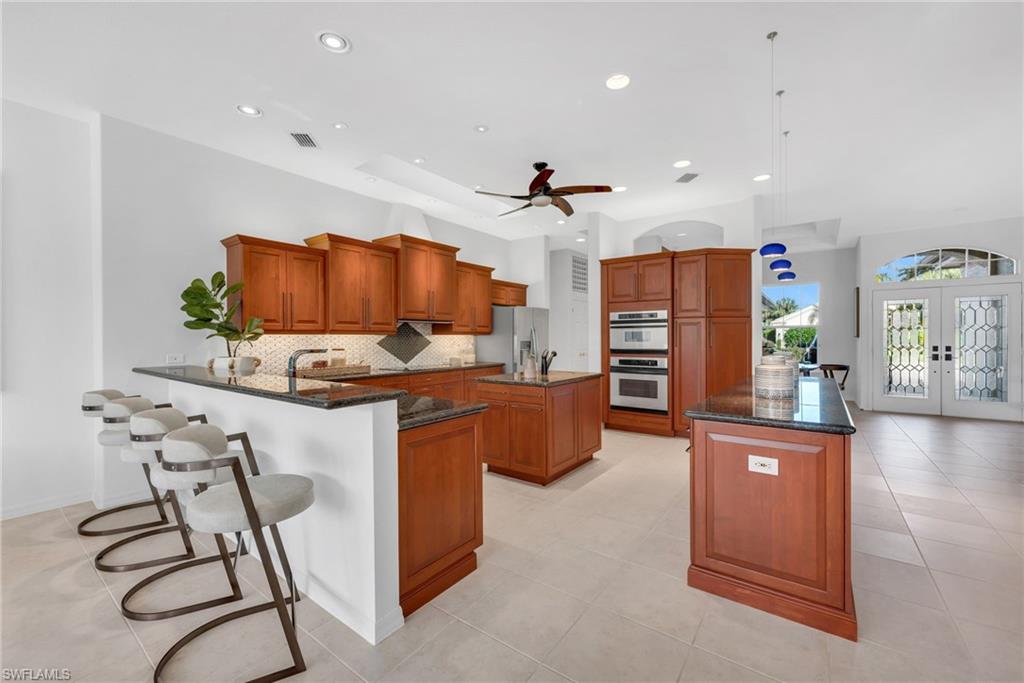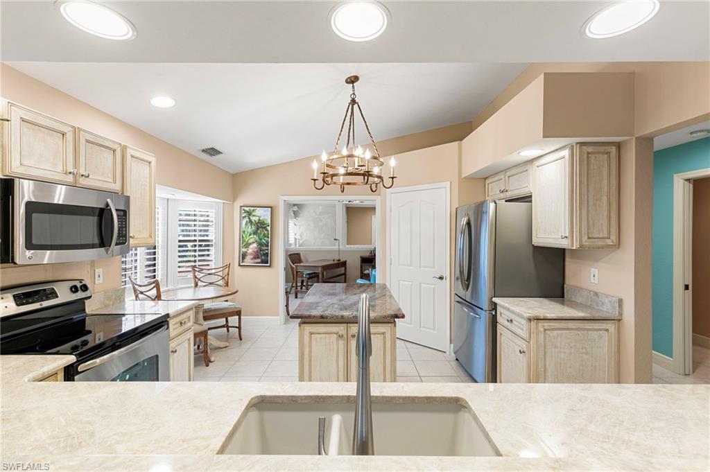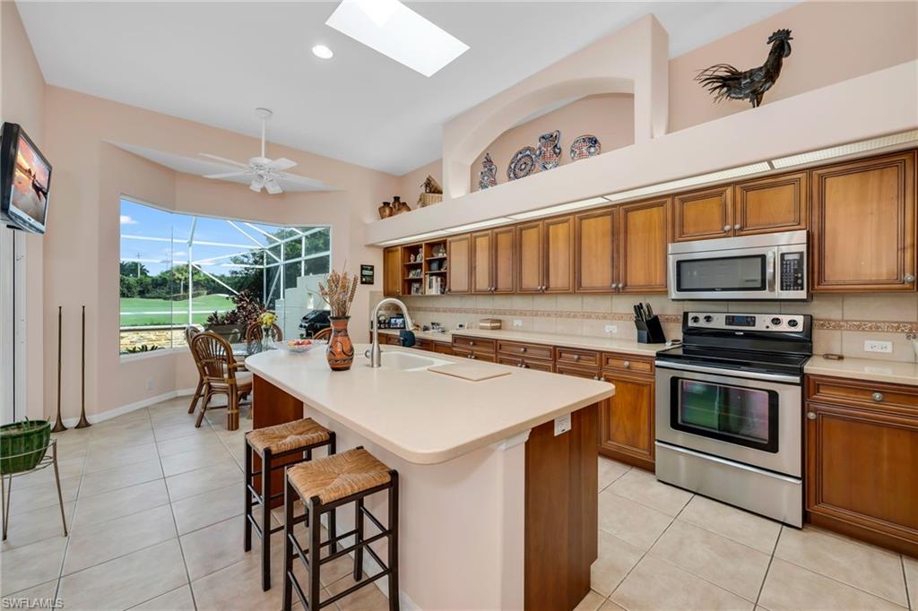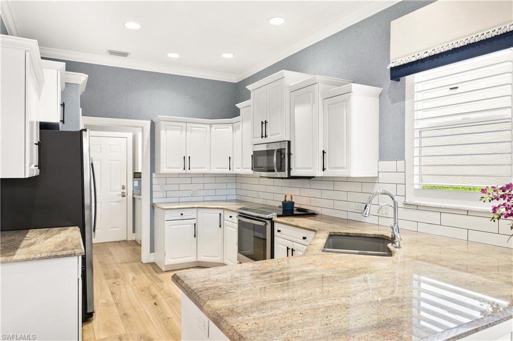 If you’ve been waiting for the right home in North Naples, a place that’s peaceful, beautifully cared for and ready for your next chapter, you will want to see this home. The custom Arthur Rutenberg Tradewinds III blends timeless design with noteworthy updates offering comfort, privacy and easy living in one of Naples’ most respected golf communities. From the moment you step inside, natural light and warm open spaces welcome you. There is a separate living room and great room, as well as a morning room with seamless corner window, all having direct access to lanai. The great room has south-facing oversize picture windows with golf course view. Kitchen has custom cabinetry, two islands, Italian marble, SS appliances, pull out pantry and remote skylight that lets in fresh air and west sunlight. The private primary suite commands the entire length of one side of the house, with oversized bath, room-size custom closet and a separate shoe closet. Primary bath is spa inspired, finished in Porcelanosa tile, French made vanities, free standing air jetted tub, LED mirrors and frameless shower. It is a soothing space that aligns with calming energy. Outdoor living area is just as impressive, with massive lanai, large pool and spa. Mature landscaping and new Calusa privacy hedge bring in Nature’s tranquility. Imagine quiet evenings outside, weekend gatherings or a morning swim before golf with friends. There is even an outdoor kitchen with custom cabinetry, TEC infrared grill, separate built in burner, custom SS venting, bar sink and granite counters. Recent updates to pool equipment (including new heater and pump), screened cage, and complete pool resurfacing allow headache-free enjoyment. Significant improvements make ownership easy, including 2025 roof, new water heaters, new gutters, fresh paint exterior & interior, updated irrigation system, hurricane-rated windows and motorized shutters. A 3.5 car garage with new epoxy flooring and full attic planking round out this exceptional home. The location within the Strand also adds appeal. The private back gate entrance offers quick access. Strand amenities include 27 holes of championship golf, tennis, pickleball, bocce and lawn croquet; as well as a fitness complex, multiple dining venues and a clubhouse with a full calendar of social activities. It is one of North Naples’ most desirable and inviting private clubs. If you are looking for a move in ready home with exceptional outdoor living, thoughtful improvements and a prime location near Publix, Target and Walmart, this home offers a comfortable, relaxed environment that exemplifies the Naples casual easy lifestyle.
