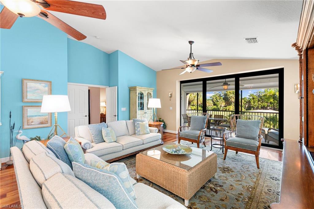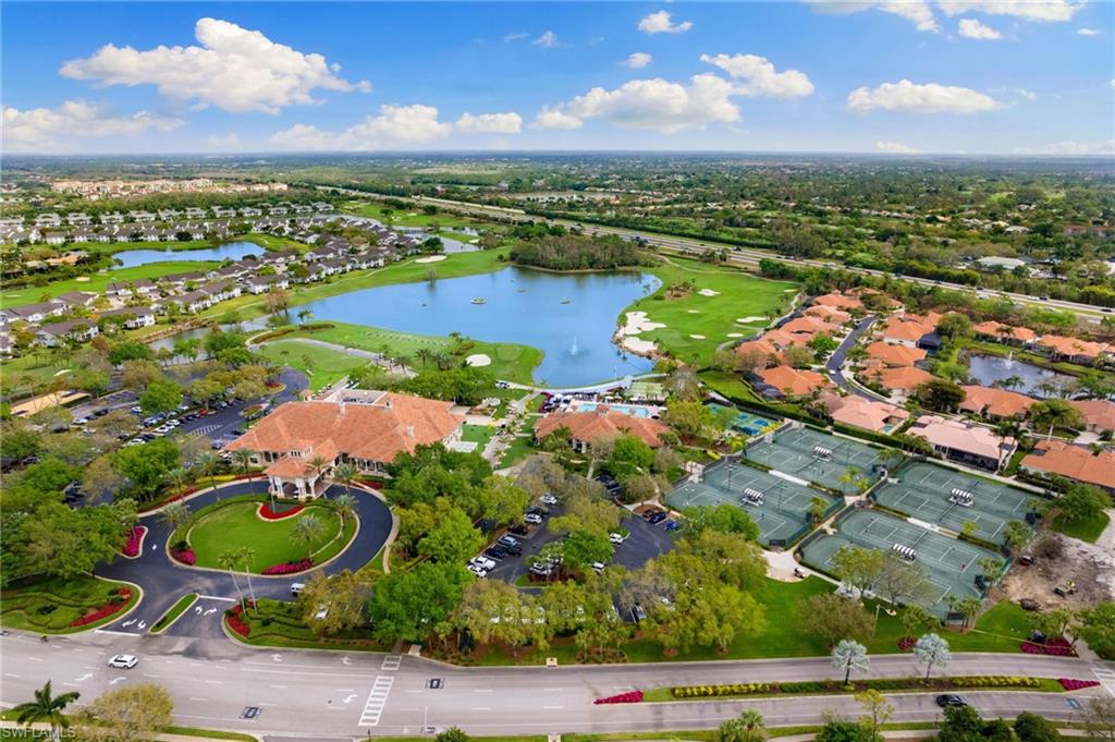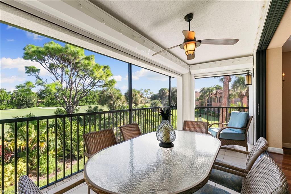 Breathtaking Views! Enjoy immediate golf, lake, and fountain views from this meticulously maintained 2nd-floor condo, offering the spacious feel of a single-family home with stunning southwest exposure. Ideally situated just steps from the community clubhouse and pool, this residence provides ultimate convenience. Featuring three en-suite bedrooms and baths, this home ensures privacy and comfort for both family and guests. High-end furnishings, in pristine condition, are included. Systems: A/c 2 year - prepaid transferable maintenance contract; and Roof is newer at 2 years. The Pinnacle community boasts wide, beautifully landscaped streets, enhancing its curb appeal. Residents enjoy an active, country club lifestyle with access to three impeccably maintained 9-hole golf courses, tennis and pickleball courts, a fitness center, and a resort-style pool with lap lanes. The newly renovated community restaurants—The Grill Room and Veranda, Tavern 59, and The Island Bar—offer fantastic dining options. Additional amenities include new bocce courts and a recently added croquet center. Perfectly located just a short drive from Mercato, Venetian Village, Waterside Shoppes, and the some of the best beaches of the Gulf, this home offers the best of luxury and convenience.