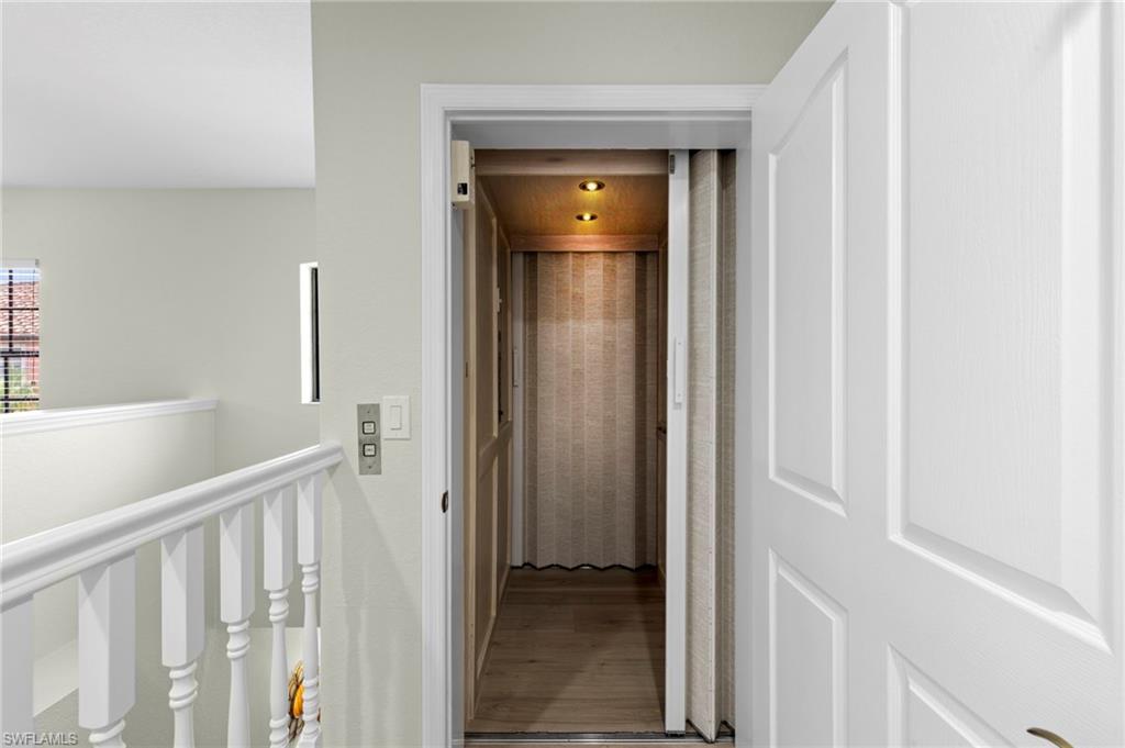 Truly unique and rarely available "Aberdeen" with an additional bonus room ensuite! This is the largest version of this in demand floor plan in The Strand. Impressive, spacious detached villa home boasting a newer roof (2019), power storm protection on the lanai, dedicated golf cart garage bay, and spectacular Western water and golf course views. The property features four true bedrooms, with one being a grand bonus room ensuite. There is also a den with built in shelving, and a large loft space. This home is one of very few in the community with its own private elevator!! There’s also a glamorous tiled open terrace area off of the second-floor bonus room overlooking the pool and view. You’ll quickly fall for this stately property with no home immediately to the left. It is the first home on Persimmon Way, and boasts large windows on the Southern side of the home, allowing the home to be beautiful and bright throughout the day. The rear sliders pocket into the living room wall for a feeling that the living space extends seamlessly outdoors during our beautiful winters. The entire pool area/outdoor space has been extensively updated. The pool decking and pool coping match nicely. The outdoor cabinetry has been updated to create a fresh and bright look. Enjoy an active country club lifestyle, complete with 3 beautifully maintained 9-hole golf courses, tennis, pickleball, all new fitness center, and an impressive pool with lap lanes, newer bocce courts, as well as a recently added croquet center and Island Bar for residents to enjoy. The clubhouse next door to the Jr. Olympic pool houses two upscale restaurants: one upstairs, and the downstairs Tavern 59 restaurant opens into botanical garden/outdoor wedding venue location. The Strand is a golf cart friendly community, and has recently added more dedicated golf cart parking spaces near to the 4 new brand new pickleball courts. Many shopping and dining conveniences are within close proximity, and most importantly, the sugar sand beaches of the Gulf are a straight shot westbound down Immokalee Rd.