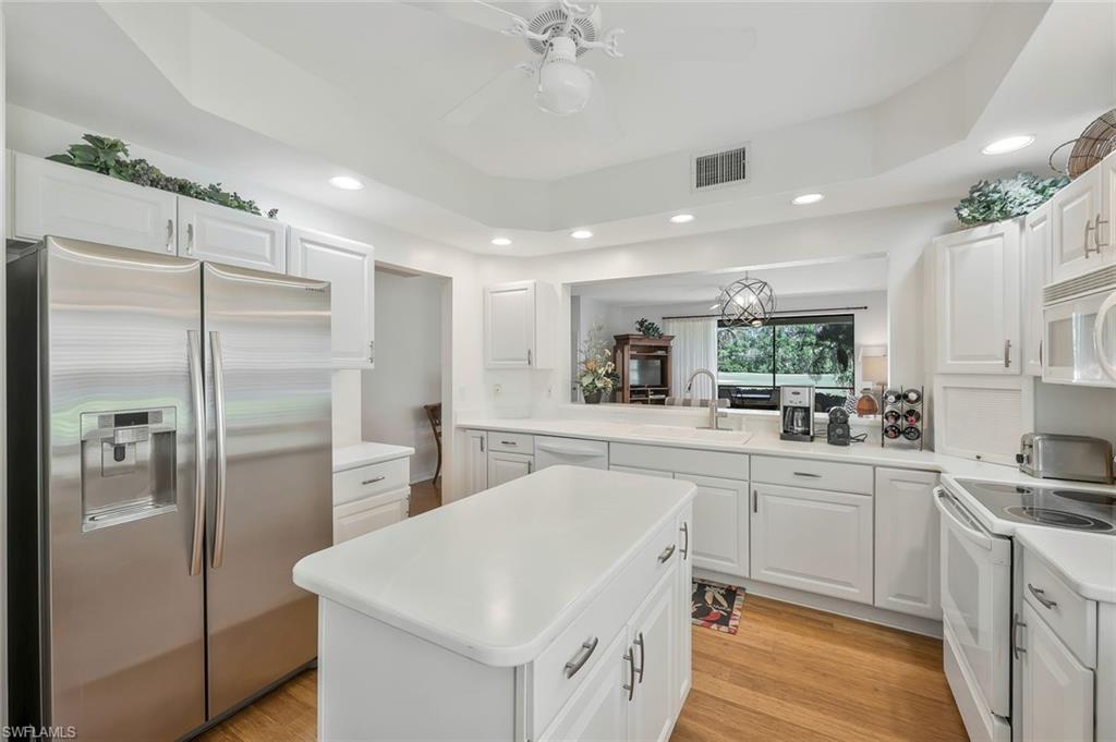 This fully renovated end unit ground floor condo was just completed in February 2025. Enjoy relaxing lake and golf courses views in this 3 bedroom, 2 bath with a coastal modern feel. Features includes new cabinets and quartz countertops, new appliances, new paint, trim, fixtures and custom built in closet systems in all rooms. A spacious open layout perfect for entertaining and enjoying sunsets over the lake. Don't miss out on the opportunity to for make this beautiful condo your new home!.