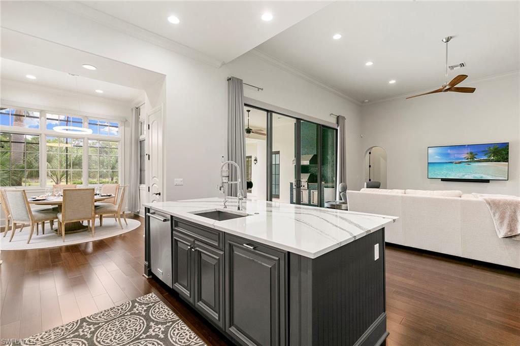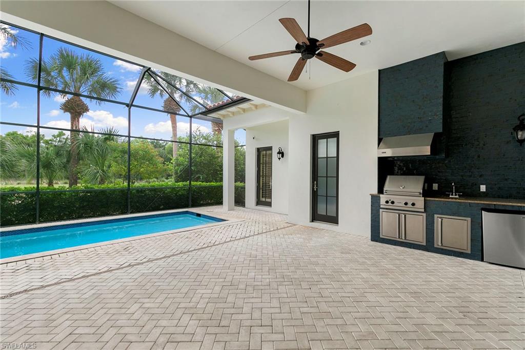 Experience Sunset Views and Luxury Living at Marsala at Tiburón Imagine unwinding each evening with a front-row seat to the spectacular sunsets over the 15th fairway of the prestigious Black Course at Tiburón Golf Club, located within the renowned Ritz-Carlton Resort. With immediate golf membership available, your dream lifestyle is within reach from day one. This spacious, beautifully appointed residence offers over 3,500 square feet of luxurious living space, featuring 4 generously sized bedrooms, a dedicated office, and 3.5 bathrooms—ideal for entertaining guests or enjoying quiet family time. Inside, rich wood flooring flows throughout the main living areas, den, and elegant master suite. The gourmet kitchen is a chef’s dream, complete with soft-close wood cabinetry, stunning granite countertops, top-tier appliances, and a dedicated bar area with glass-front cabinets and a wine refrigerator—perfect for hosting unforgettable evenings. Step outside to your private outdoor oasis. A gas-heated pool and spa invite you to relax or entertain, while the built-in outdoor kitchen makes weekend cookouts effortless. This home is powered by natural gas and designed with comfort and durability in mind, including impact-resistant doors and windows and a prime location in FEMA’s desirable "X" flood zone—offering peace of mind year-round. Set in one of North Naples’ most sought-after and welcoming communities, Marsala at Tiburón offers an unbeatable location—just minutes from world-class beaches, upscale shopping, fine dining, and the iconic Seed to Table, less than two miles away. Don’t miss your chance to own a slice of paradise and enjoy the very best of the Southwest Florida lifestyle!
