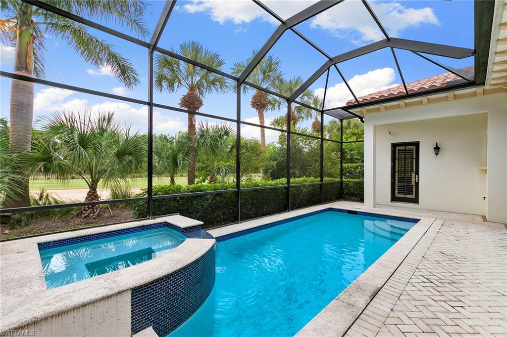 Discover refined living in Marsala at Tiburón, an exclusive enclave within the world-renowned Ritz-Carlton Golf Resort, Naples. Enjoy a front-row seat to captivating sunsets over the 15th fairway of Tiburón’s prestigious Black Course—your private backdrop every evening. With immediate golf membership available, the coveted Tiburón lifestyle is yours from day one. This elegantly designed residence offers more than 3,400 square feet of luxury living, featuring 3 spacious bedrooms, a dedicated office, and 3.5 baths. The open-concept layout is ideal for both relaxed everyday living and effortless entertaining. Rich wood flooring flows throughout the main living areas, den, and primary suite, while expansive windows frame sweeping golf course views and fill the home with natural light. Plantation shutters throughout add timeless appeal. The gourmet kitchen is a chef’s dream, complete with soft-close wood cabinetry, gleaming granite countertops, high-end appliances, and a generous center island perfect for casual dining or hosting guests. A whole-house built-in audio system allows you to enjoy your favorite music indoors and out. Step outside to your private outdoor sanctuary, where a gas-heated pool and spa invite complete relaxation. The built-in outdoor kitchen and fireplace make entertaining a breeze, while lush landscaping creates the perfect sense of privacy. Built for lasting comfort and peace of mind, the home offers natural gas, impact-resistant doors and windows, and is ideally positioned in FEMA’s desirable X-zone (no flood insurance required). Located in one of North Naples’ most sought-after communities, Marsala at Tiburón places you just minutes from pristine beaches, upscale shopping, fine dining, and the vibrant atmosphere of Seed to Table. Don’t miss this rare opportunity to own a home that blends timeless elegance, resort-style amenities, and the very best of Southwest Florida living.