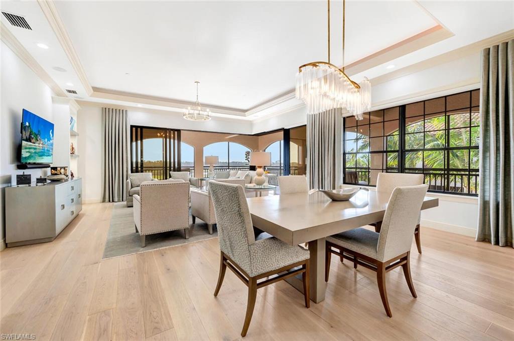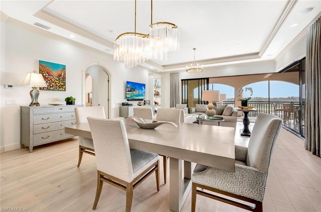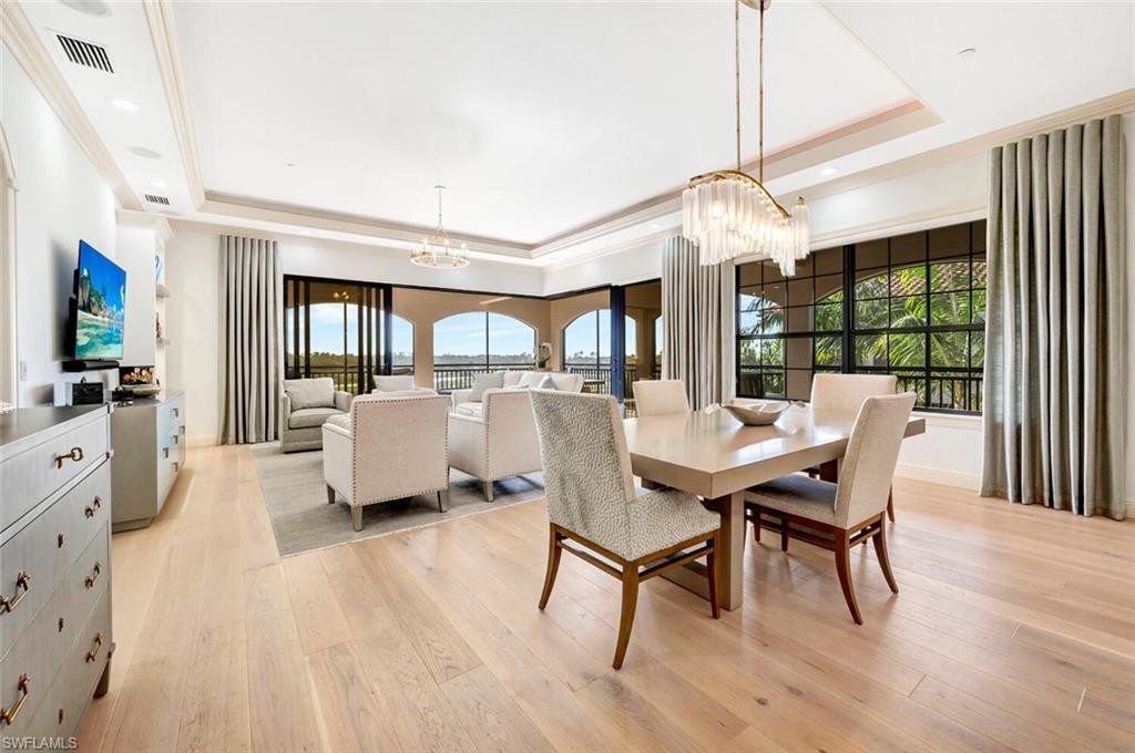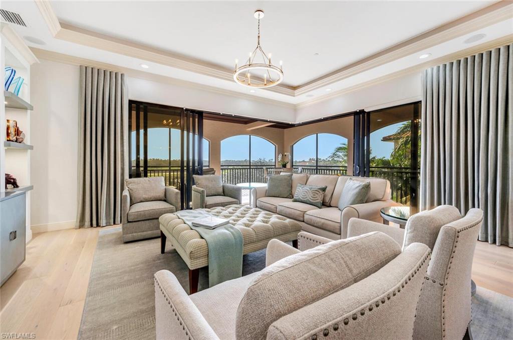 On one of the most desirable lots in Escada at The Ritz-Carlton Tiburón, this is a rare opportunity to own a thoughtfully updated luxury estate with sweeping lake and golf course views. Move-in ready, this light and bright residence offers an expansive floor plan all on one level, featuring soaring ceilings, European white oak flooring, custom millwork and designer lighting that create a refined ambiance throughout. Multiple living areas are designed for relaxation and entertaining, including a stunning open-concept gourmet kitchen with neutral finishes, custom cabinetry, a large island, gas cooking, and top-of-the-line Wolf and Sub-Zero appliances. The expansive primary suite is a private retreat with spa-like finishes, dual closets, dual baths and French doors opening to the covered lanai. Three generously sized guest suites, a large den, and a separate study provide flexible space for comfort and functionality. Outdoors, enjoy a resort-style setting with an impressive gas-heated saltwater pool and spa, water features, summer kitchen, fireplace, covered living areas, upgraded lush landscaping, and a spacious patio overlooking the 14th fairway with preferred southwestern exposure. Additional highlights include impact glass with electric shutters and screens, whole-house generator, newer roof, updated pool equipment, newer HVAC systems 2020–2025 and more. A three-car garage with circular drive and a double-gated entrance complete this exceptional offering. Tiburón membership is optional for access to championship golf, beach privileges and world-class resort amenities. This property represents the pinnacle of Naples living, where timeless luxury meets everyday comfort in a premier gated community.