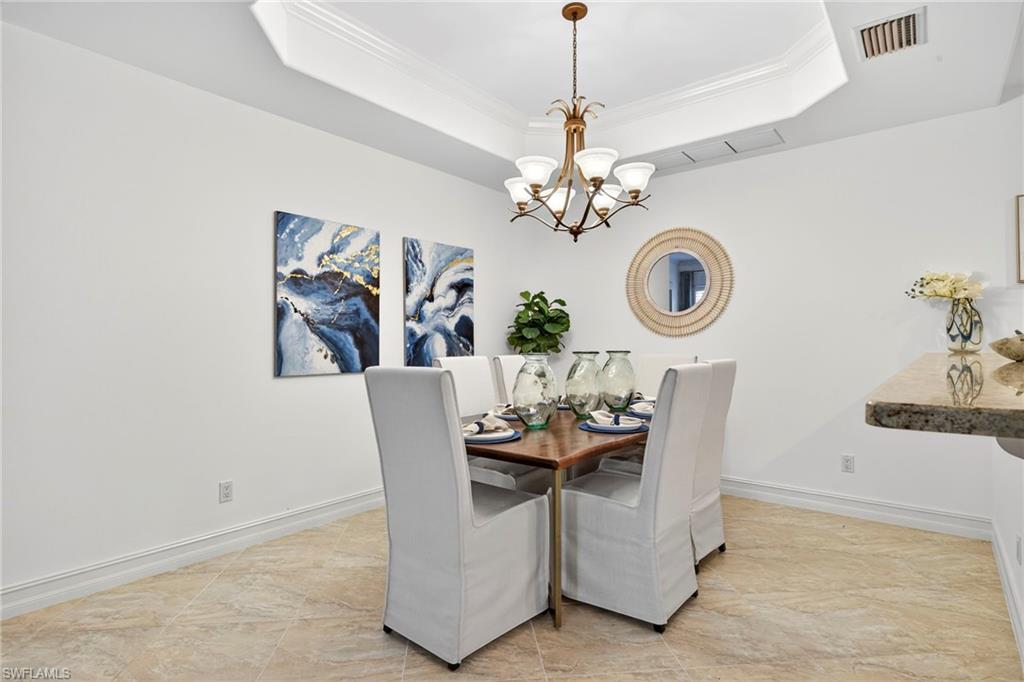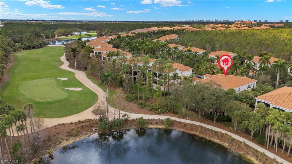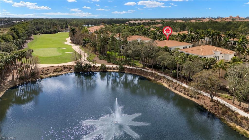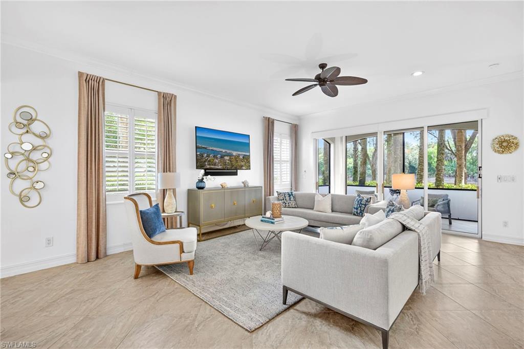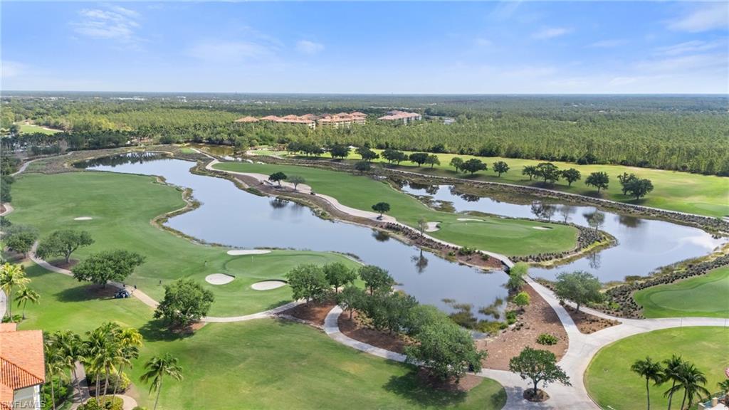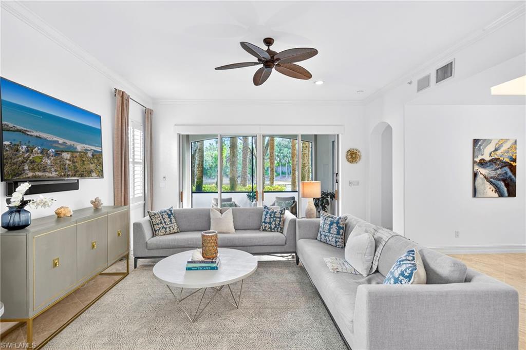 GOLF COURSE AND WATER VIEWS!! Welcome to Castillo at The Ritz-Carlton Golf Resort, Tiburon, where class and elegance converge in this immaculate, partially furnished, first-floor end unit. This exquisite home boasts a secluded open floor plan featuring THREE BEDROOMS, two full baths, a dining room, and ample storage space. Experience the comfort and feel of a single family home with an attached two-car garage and private entry. The interior is adorned with porcelain tile flooring, high ceilings, crown molding, and plantation shutters, adding a touch of sophistication. The well-appointed kitchen is a dream for a property of this size, complete with granite countertops, white cabinetry, built-in wine cooler, stainless steel appliances, gas stove, and spacious island. Unwind in the oversized owner's suite, which includes a walk-in closet and a slider leading to your lanai.The spa-like bath offers double sinks, shower, and separate tub, providing a perfect retreat. Additional features of this exceptional property include a newer roof, a tankless hot water heater, and a U/V air purifier, ensuring comfort and peace of mind. Embrace luxury living at its finest in this remarkable home.Tiburon boasts 36 holes of Greg Norman-designed championship golf, concierge services, restaurants, fitness center, spa, tennis and private beach shuttle. Tiburon is located close to beaches, world-class shopping and dining. GOLF & SOCIAL MEMBERSHIPS are IMMEDIATELY available, but not required to live in the community. Just 3 miles to Vanderbilt Beach and 1.5 miles to the shops and restaurants at Mercato.
