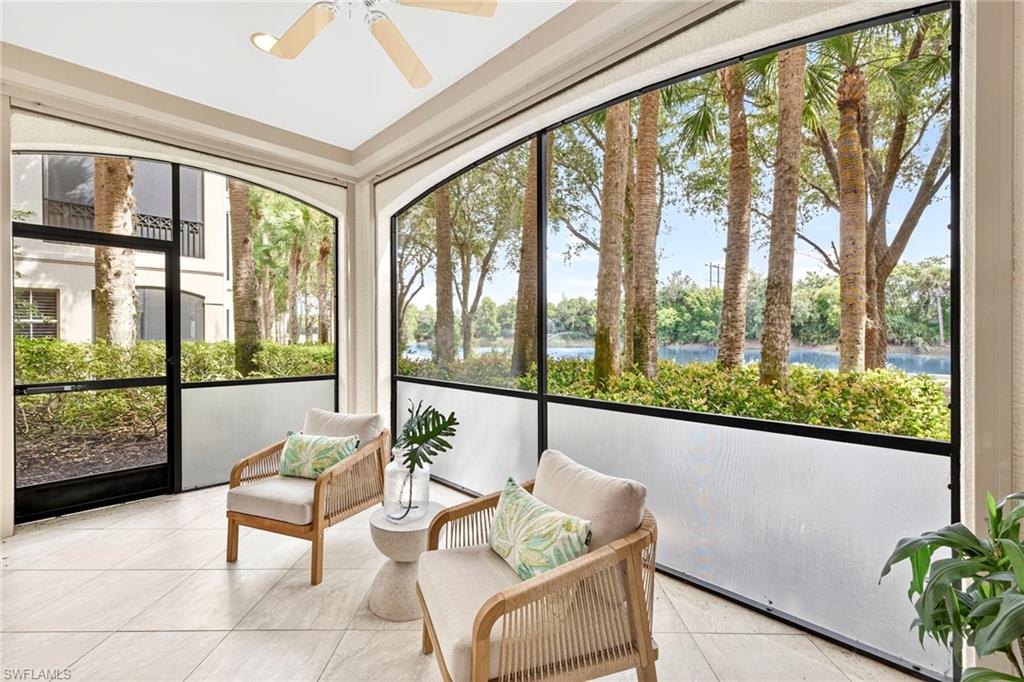 NEW PRICE AND OFFERED FURNISHED!!!! WHAT A DEAL!!! Amazing quality and beautiful upgrades can be found throughout this well appointed Ventanas condo in Tiburon! The 1000 SF PRIVATE OPEN BALCONY is perfect for sun and fun while mornings and evenings can be further enjoyed in the screened lanai area. Neutral colors complement the interior making it perfect for any artwork or furnishings. This spacious one bedroom unit boasts a lovely primary bath, a spacious walk in closet plus an additional full bath. The dining area is currently used as an office and workout area while leaving plenty of space in the great room for seating and entertaining. One deeded parking place in the garage and an air conditioned storage unit are included. The two swimming pools for VENTANAS and the grills are only steps away! Tiburon offers many membership options although no membership is required with this condominium. Plan a preview to see the beautiful Ritz Carlton Tiburon Golf Resort! Tiburon is conveniently located to shopping, restaurants and the Gulf beaches.