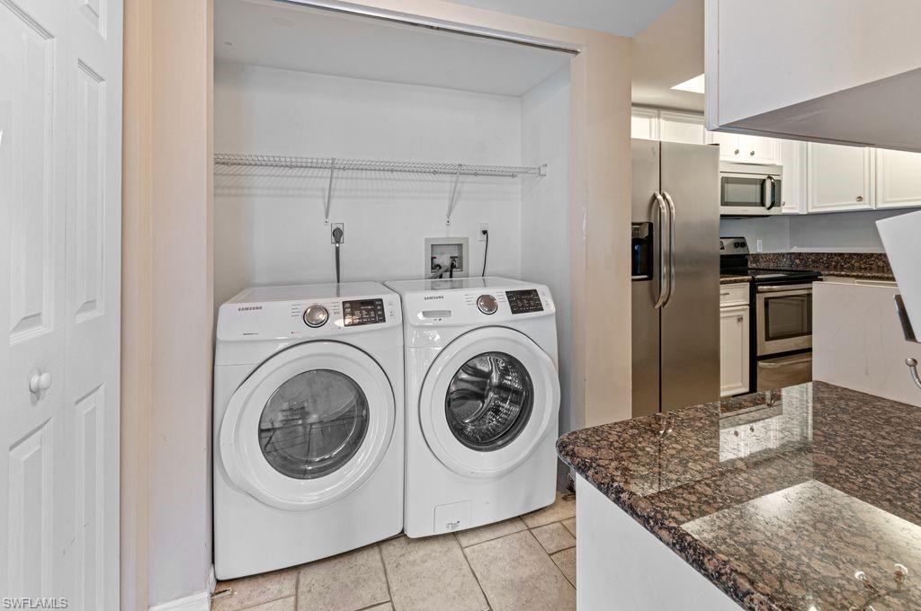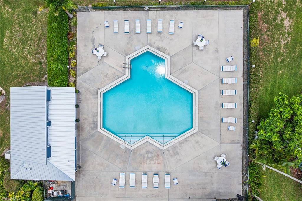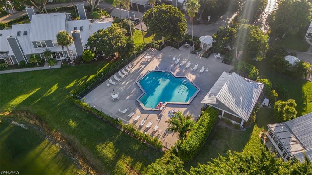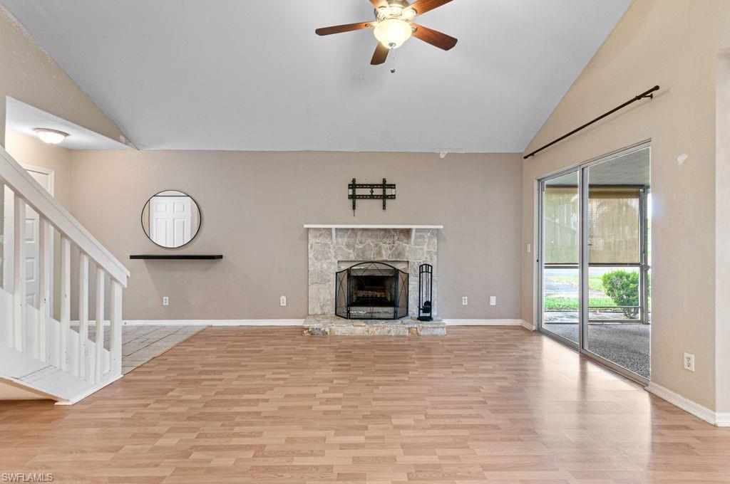 A wonderful WATERFRONT two story villa that offers the privacy of a single family home! This end unit has been well maintained and upgraded with newer appliances and tile flooring. The great room floorplan features a wood burning fireplace. The light and bright split floor plan with the primary bedroom and bath on the main level are separate from the first floor guest bedroom and full bath. The second floor opens on to a loft/den space along with a third bedroom and full bath. The lake front screened patio features an area for grilling as well as relaxation. One covered carport with extra storage along with a second adjacent parking spot are deeded to the unit. Timberwood of Naples is a centrally located non gated community in an incredibly convenient area with shopping and dining steps from your front door. Low HOA dues include a community pool, clubhouse, basketball court and tennis court.