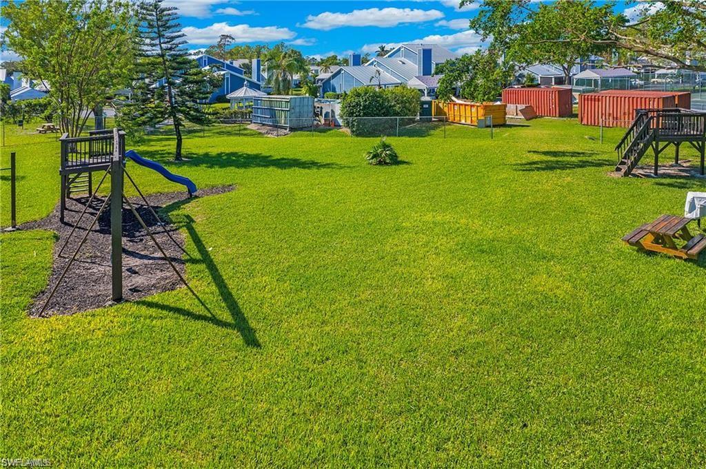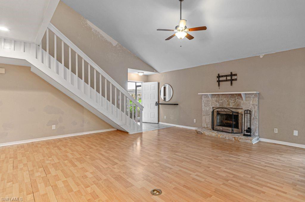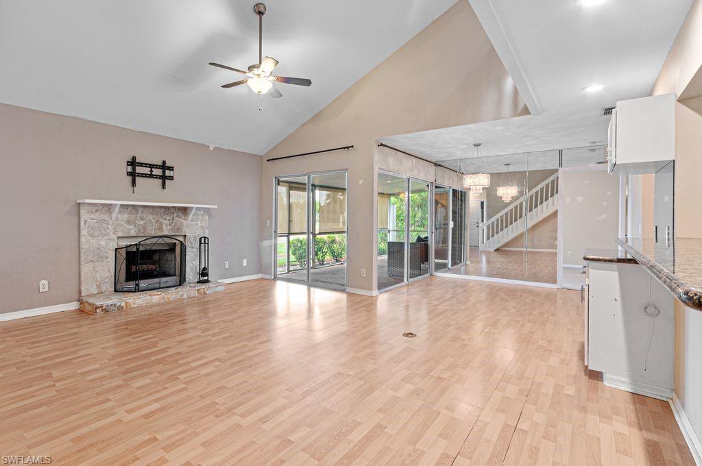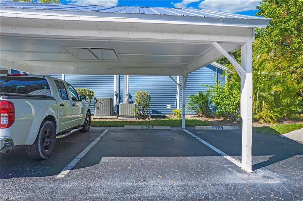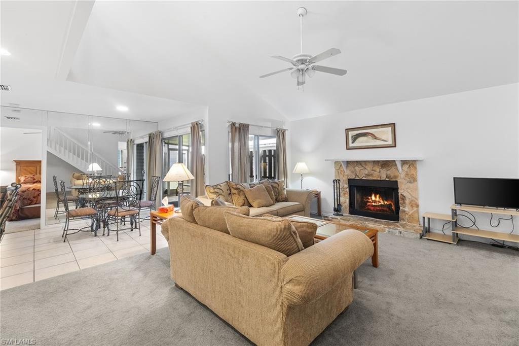 Welcome to this light and airy villa offering an exceptional value and room to make it your own whether you like to entertain or prefer to relax in your own private oasis. This home has been freshly painted in a neutral palette and features an open-concept layout with split bedrooms, plus vaulted ceilings and a cozy, modern fireplace as a focal point in the living area. Enjoy seamless indoor-outdoor living with oversized sliding doors that open to a private, screened-in lanai—perfect for morning coffee or evening gatherings. The large primary suite includes direct access to the lanai and generous closet space while the home also features an in-house laundry area and several storage closets to help with everyday organization. While the kitchen and bathrooms are functional, they present an exciting opportunity for you to design and add your personal updates to make it your own tranquil retreat. Timberwood has new metal roofs and siding and maintains the outdoor landscaping and irrigation for a low-maintenance lifestyle and is located in the X500 flood zone. The property includes 2 assigned parking spaces including a covered carport plus an additional parking space in front of the building and Timberwood is ideally located in a highly rated school zone and provides a close-in Naples’ address located near excellent services, dining and shopping areas for easy access to everyday essentials. The community is pet friendly with a nice dog park and also offers a sparkling pool, clubhouse, playground, basketball court, and tennis courts for year-round outdoor enjoyment. Whether you’re looking for a primary residence, a seasonal escape, or a rental opportunity, this villa offers the perfect blend of charm, privacy, and potential—all in a quiet, well-maintained and desirably located neighborhood.
