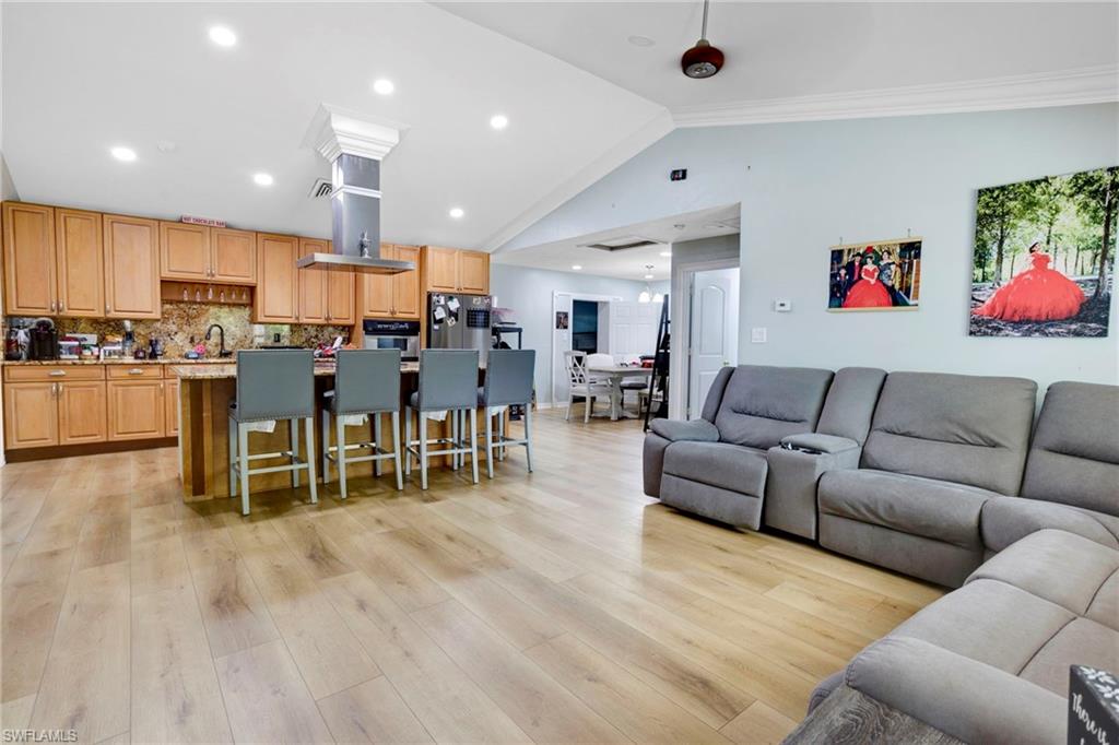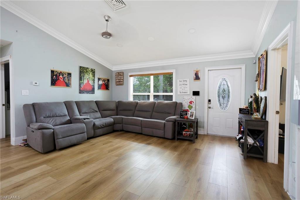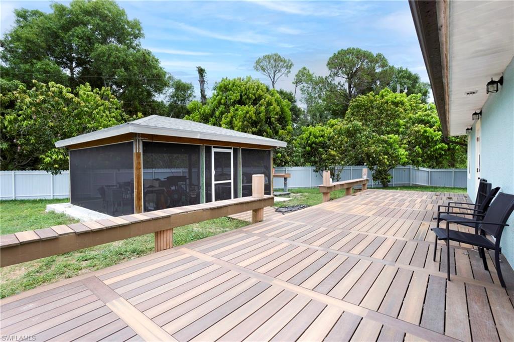 Positioned at the end of a quiet cul-de-sac in sunny Naples, this 4-bedroom, 3-bathroom gem offers the perfect blend of indoor comfort, outdoor living as a high potential property. From the moment you arrive, you’ll appreciate the oversized driveway—perfect for hosting or accommodating multiple vehicles, impact windows—and the fully fenced yard & mature fruit trees provide both privacy and room to roam. Inside, the open-concept living space is designed for comfort and flow, with a spacious kitchen offering an oversized island + stainless steel appliances, BRAND NEW A/C (July-2025) three full bathrooms, and 4 generous bedrooms that make family living, working from home or vacation renting a breeze. Step outside to enjoy a screened gazebo and elevated deck—the perfect setup to enjoy Florida’s famous sunsets. Whether you're grilling, entertaining, or simply enjoying the breeze, this space was made for memory-making. Located just 15 minutes from downtown Naples and 10 minutes from the vibrant waterfront scene at Celebration Park, this home offers quick access to fine dining, boutique shopping, live music, and more. Beach lovers will enjoy proximity to Naples Beach and Marco Island, while boaters will appreciate the nearby public ramps and Gulf access. Golf enthusiasts are just one mile from TPC Treviso Bay and 5 minutes to the renowned public courses at Lely Resort. For those who love food, culture, and the outdoors, the home is near Bayfront Naples, Tin City, the U.S. Open Pickleball Championship courts, and the Naples Botanical Garden. With no HOA restrictions, bring your boat or RV, create a custom vacation rental, or simply enjoy the freedom to live your way. This home combines location, lifestyle, and flexibility—making it an exceptional opportunity in the heart of Naples.