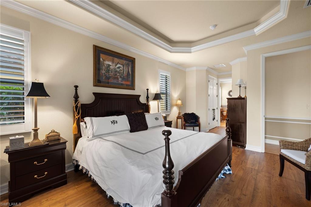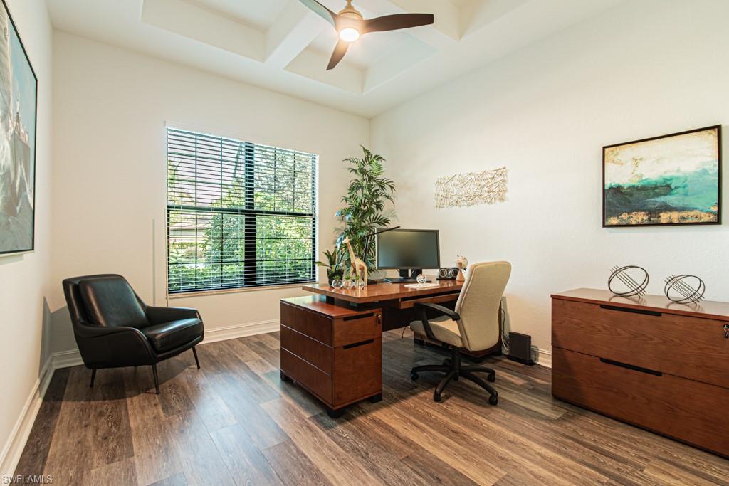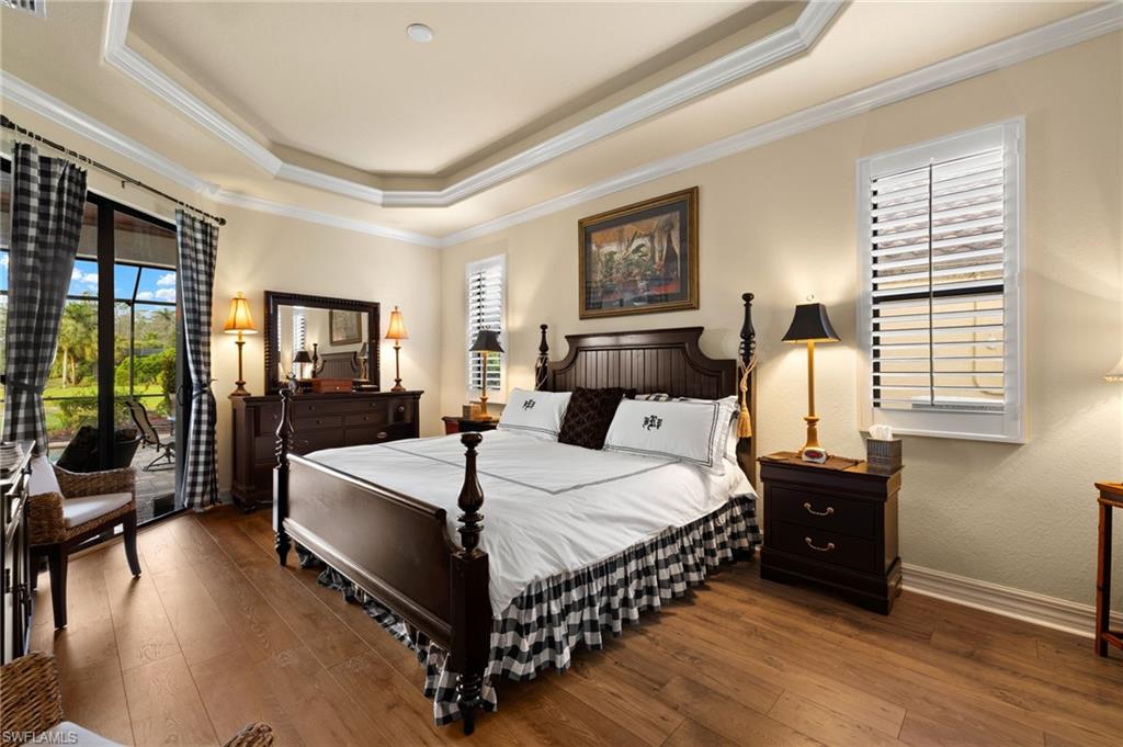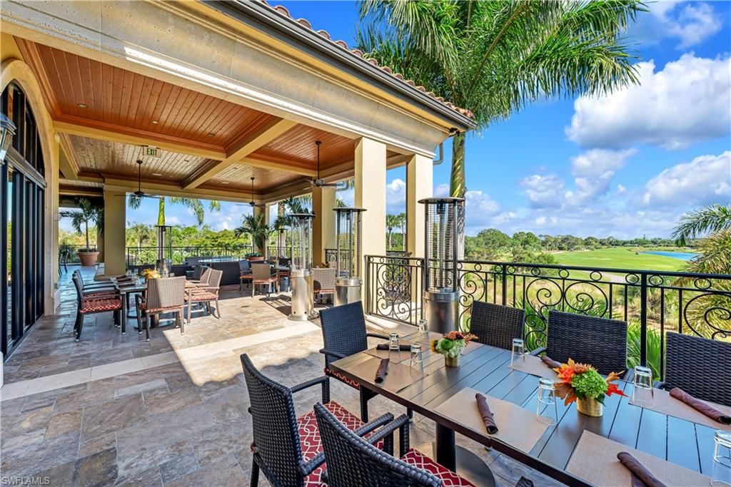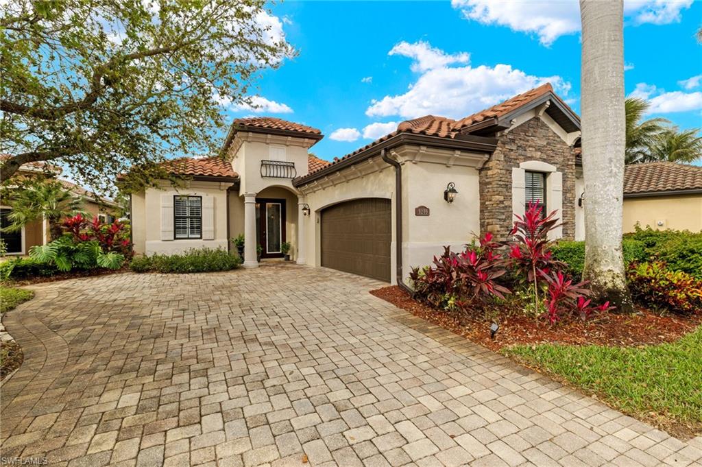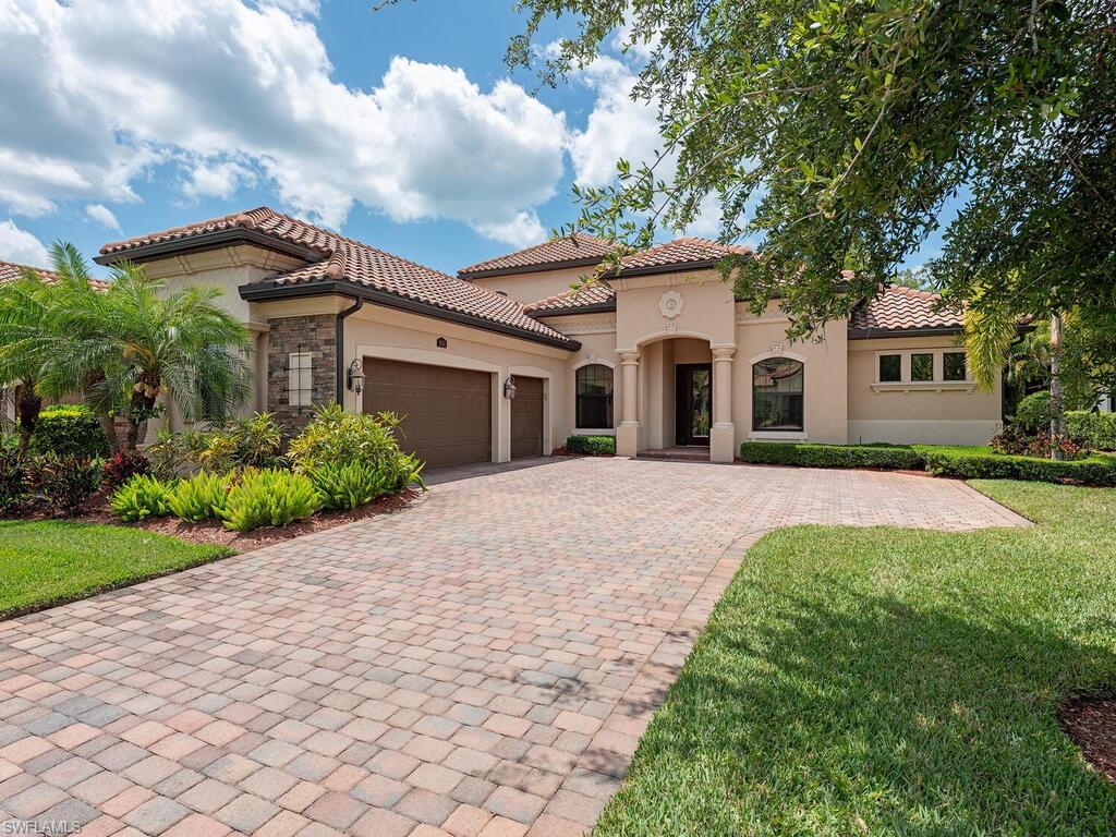 IMMEDIATE FULL GOLF MEMBERSHIP. Welcome to Resort Style living, welcome to Treviso Bay. TPC Treviso Bay is a private golf course within the gated community. The 18-hole Championship Golf Course was designed by Arthur Hills in consultation with Hal Sutton. Treviso Bay amenities include two clubhouses, a resort-style pool with a poolside restaurant, a fitness center, full-service spa/salon, eight tennis courts, bocce and pickle ball, and more. Located approximately 5 miles from world-class Old Naples restaurants, shopping, and beaches. This beautiful Lantana Model is a 4 Bedroom home with 3 full baths and 2 half baths and an upstairs Bonus Room. Custom Legno Bastone Wide Plank flooring throughout the home. The Spacious Owners Suite is located on the Main Floor and has access to the outside area. There are 2 Large Closets, a Spacious Bathroom with Dual Vanities and a Separate Tub and walk in shower. The Office has 2 Custom Built in Desks, which is ideal when working from Home. The three-car garage is climate controlled, there is a whole house generator installed in 2021 and two new 2023 AC Compressors. The outdoor Kitchen has just been remodeled with a new Viking Grill, new Hood and new outdoor beverage refrigerator. The Hurricane sliders open up to a magnificent expansive Lanai with a heated pool and spa and a fabulous Golf Course and Lake view.