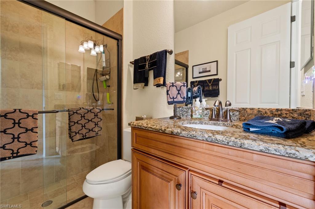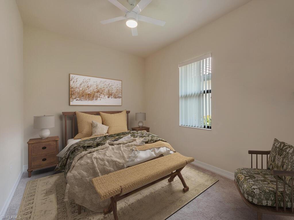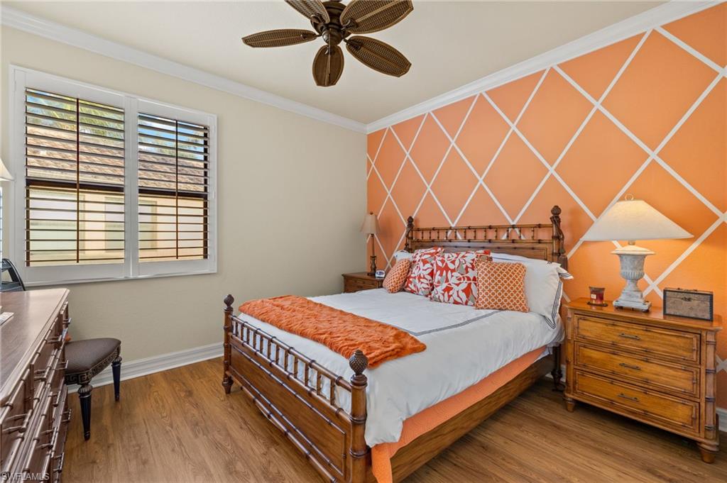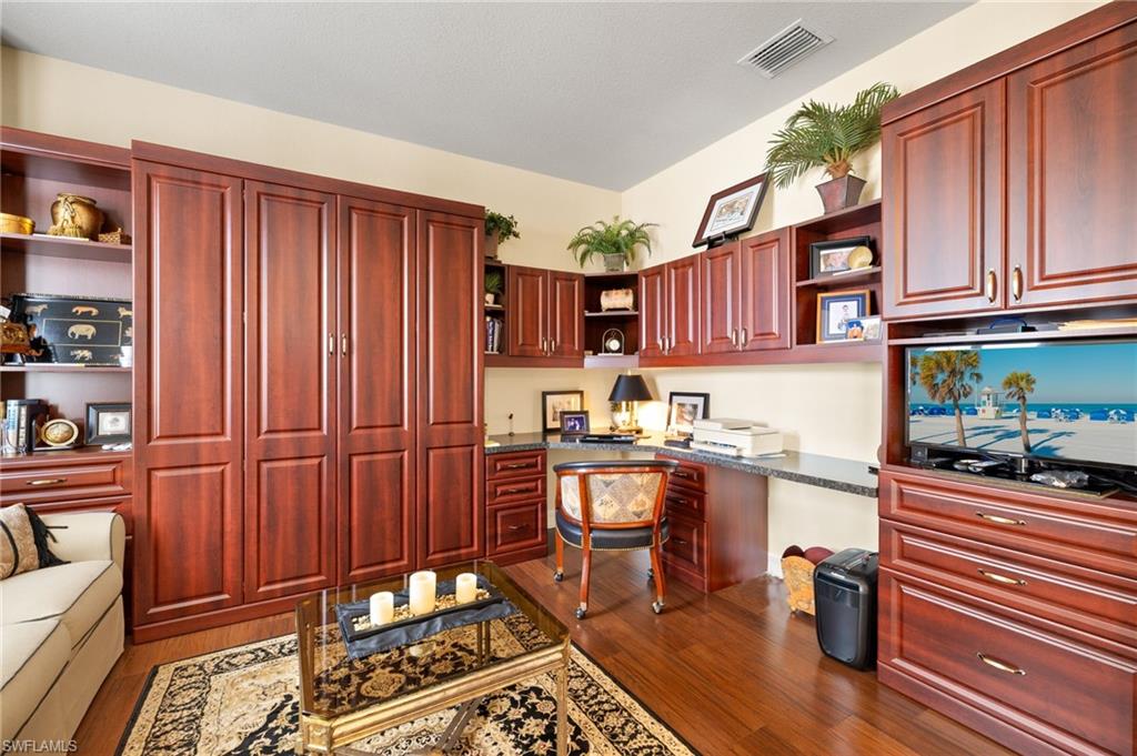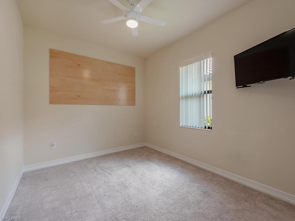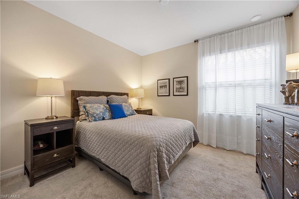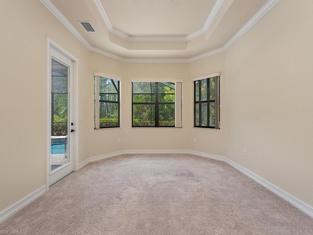 This is an amazing executive home available at Treviso Bay and it could be YOURS!! GOLF MEMBERSHIP INCLUDED and being sold completely furnished/ turnkey or unfurnished, you choose!! Located in the heart of Naples with resort-style amenities, this opportunity tends to be hard to beat. This lake view home is known as the 'Victoria' floor plan which is an open concept, 1-story home with a 2-car garage. Inside offers 1,850 square feet which includes 2 spacious bedrooms, a den, 2 full bathrooms and a half bath located out on your lanai. With this layout you'll notice the living area flows into the kitchen and eating area. Within that very kitchen, you have stainless steel appliances, sleek granite countertops, a breakfast bar, a pantry, and ample cabinet space. On its own side of the home, you have your spacious primary suite with sliding doors leading to your lanai. Features in there include a bathroom with a walk-in glass shower, a separate tub, private bathroom, walk-in closet, and dual sinks. To give ample privacy to everyone residing, there is one spacious guest bedroom, bathroom, and den on the opposite side of the home. In that same den, you have a built in desk with a drop down Murphy bed - Perfect for accommodating extra guests! Additional tasteful updates added by the owner include plantation shutters throughout, storm shutters on the exterior (a value of over $7K), a glass shower door in guest bathroom, laminate flooring in bedrooms, updated paint schemes, custom woodwork on ceiling in living room, chair rail/ picture framing woodwork in main areas and wood ceiling on lanai. As for appliances, the fridge is less than a year old, the washer is about a year old and the dishwasher was replaced 2 years ago! Everything is move-in ready for you! The best part? Step outside onto your screened in lanai where you have the luxury of enjoying the long lake views by the pool and spa or even cooking at your outdoor kitchen! Enticing, wouldn't you agree? The luxury amenities are the topping on the cake, featuring: an 18 hole - par 72 - TPC championship golf course, a spa & salon, fitness center, 8 tennis courts, a resort style pool with poolside restaurant & tiki bar, pickleball, and MUCH MORE.