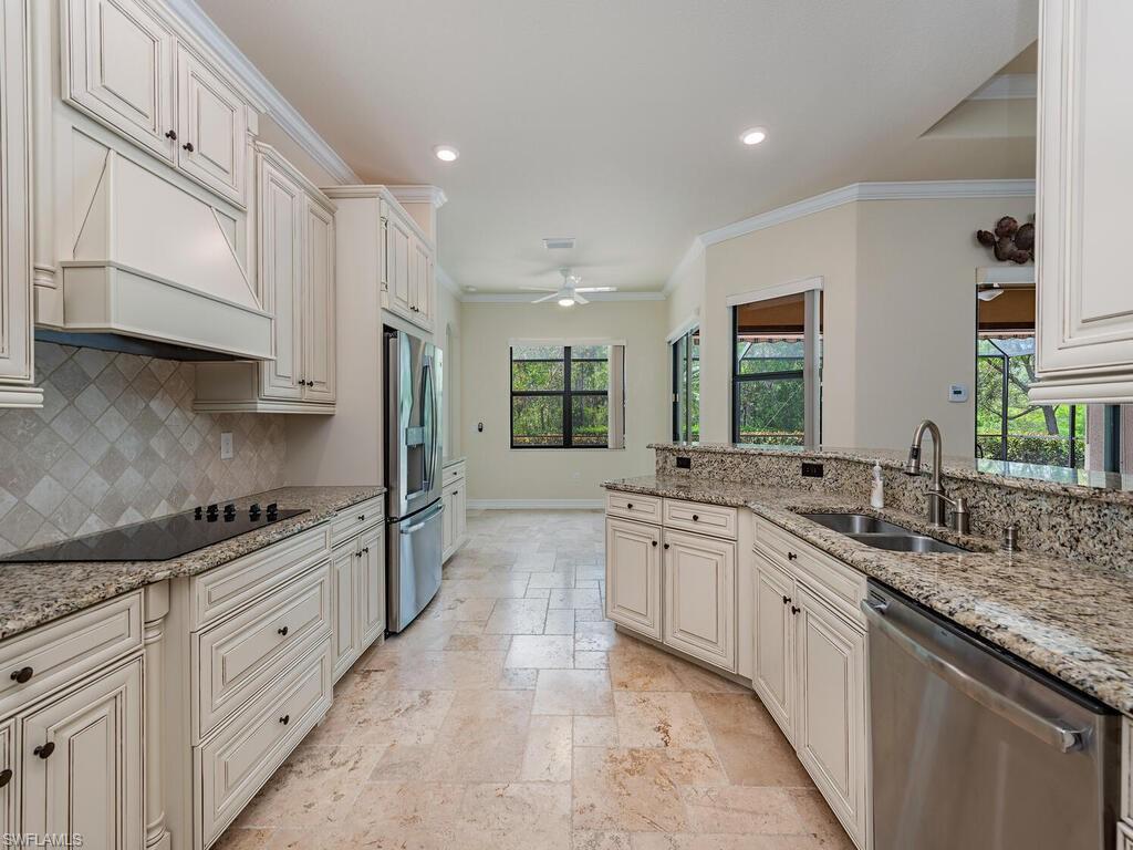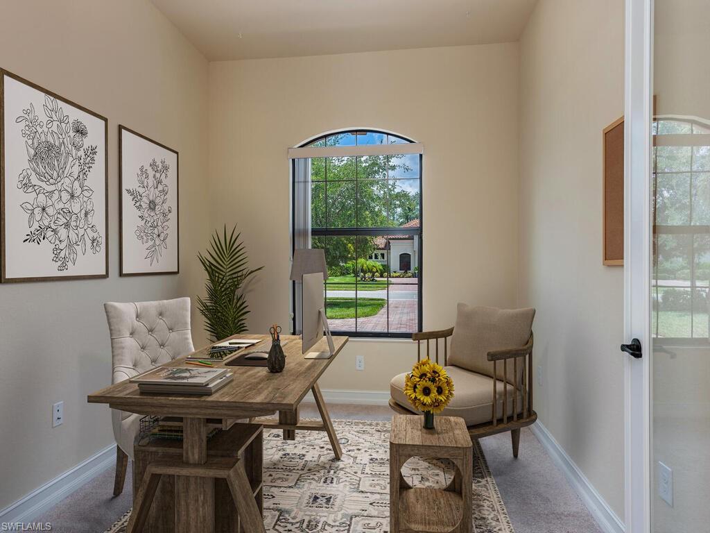 Fresh Price Drop! Lowest Priced Available Single Family Home with Golf Membership. Welcome to this exceptional Victoria model home built in 2014, located in the prestigious TPC Treviso Bay with DEEDED GOLF MEMBERSHIP & very close proximity to the Treviso Bay Club. This stunning 1,901 sq/ft residence features 2 bedrooms + Den and 2.5 bathrooms, offering both comfort and flexibility. With Western Exposure, you'll enjoy breathtaking sunsets from your luxurious outdoor retreat-perfect for entertaining. Inside, you'll find tray ceilings with crown molding throughout, granite countertops, stainless steel appliances, a wine fridge, and custom built-in cabinets in the great room and office area. The master bath features dual sinks, a separate tub, and a large walk-in shower. The expansive pool deck with a spa, outdoor kitchen with pool bath, and large palm landscaping package create an ideal setting for relaxation. Recent upgrades include a new AC and exterior paint in 2024. The garage is equipped with a mini split for added air conditioning, a built-in storage wall system, and epoxy-coated floors. Residents of Treviso Bay enjoy a wealth of amenities, including a 64,000 sq/ft luxurious main clubhouse, Villa Rilassare, resort-style lagoons, lap pools, a tennis center with pro shop, a fitness center, an aerobics and Pilates studio, and bocce ball courts. This home truly offers the perfect blend of luxury and comfort.