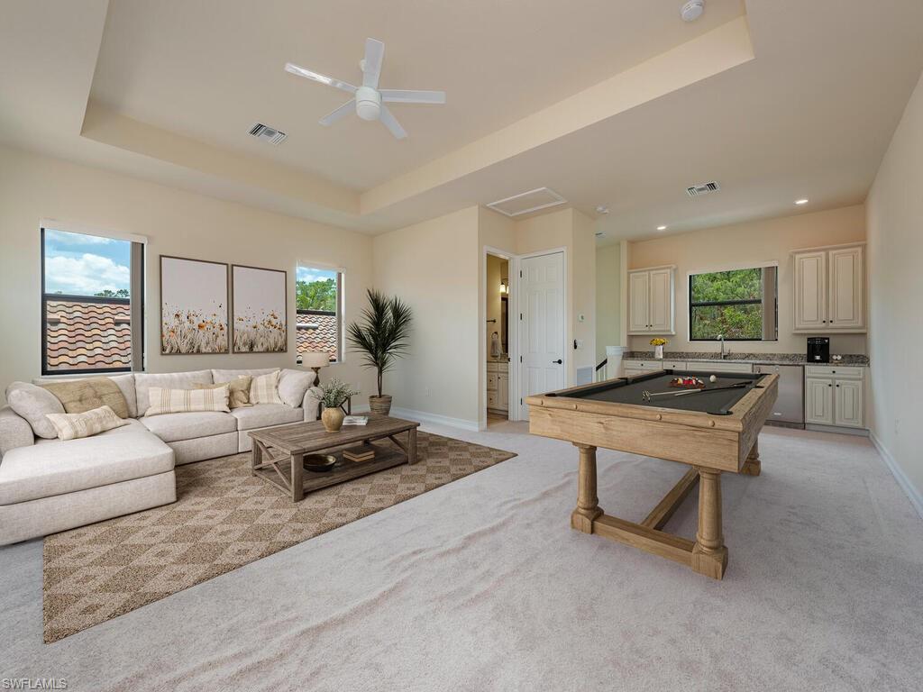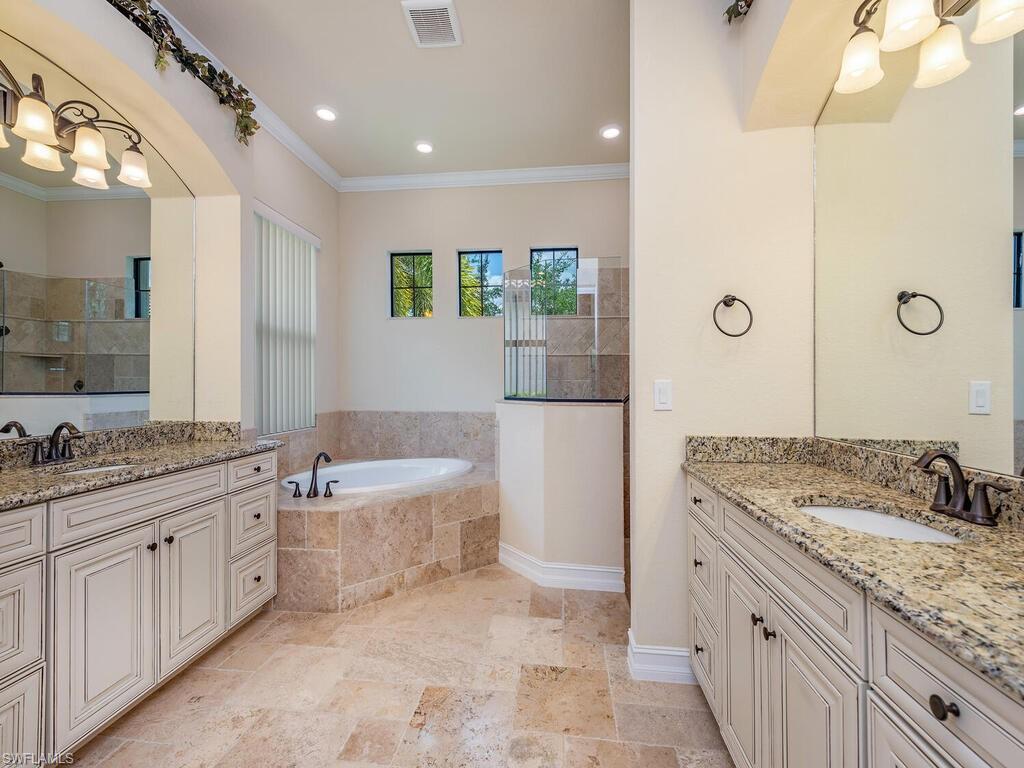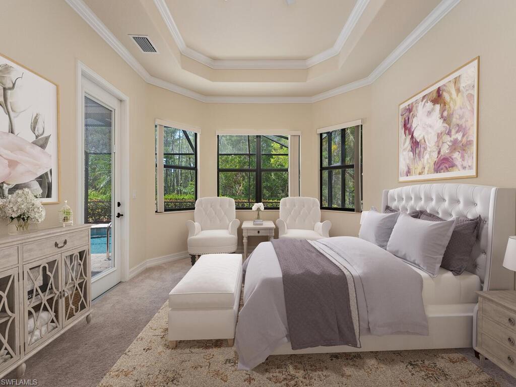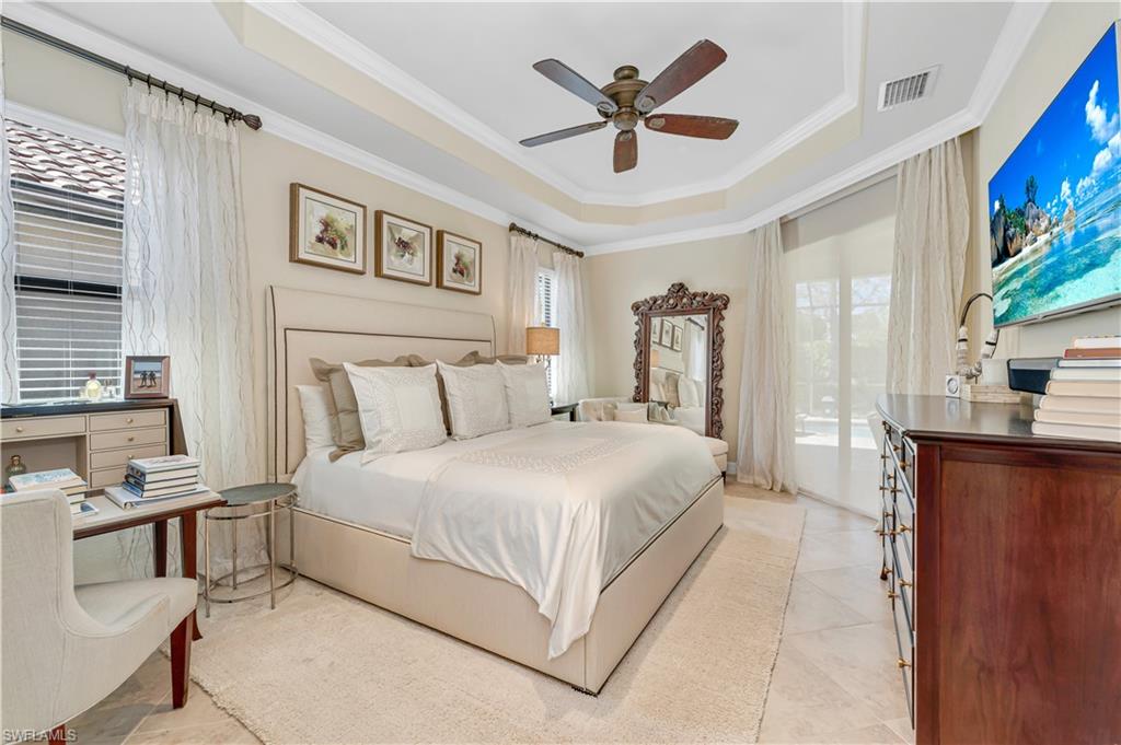 Welcome to the LOWEST PRICE PER SQ/FT of single family homes available in Treviso Bay, the world class resort gated community just 5 miles south of downtown Naples. Experience the elegance of a move-in ready Taylor Morrison partially furnished executive home, recently receiving a TOTAL EXTERIOR MAKEOVER & 2 NEW LENNOX HVAC SYSTEMS. With a courtyard gated entrance, this spacious 2935 sq ft home is a bright, open-concept family retreat with modern finishes, a chef's kitchen, and backyard built for entertaining. It features 3-4 bedrooms (or den/office), 3 full/2 half baths, a formal dining room adjacent to a well-appointed kitchen with gas stovetop & double oven & reverse osmosis sink faucet. 2 private guest suites with walk-in closets & full baths have their own wing, as does the primary suite at the opposite side of the house, with 2 custom finished closets & an expansive master bath. Wall to wall sliders open to a SW facing screened & heated pool for year-round enjoyment. Multiple lanai upgrades enhance the quiet privacy of your backyard oasis, including outdoor kitchen & shower, half bath & electric storm shutters. 12 foot ceilings, all tile/wood floors, custom light fixtures & window treatments, all bedrooms with walk-in closets, solid core doors, storm impact windows, tankless gas water heater, Bosch fridge, & whole house water softening system all contribute to the home’s allure. Key amenities center is walking distance from home, which includes 8 tennis courts, 3 bocce ball courts, basketball court, fantasy-lap-baby pools, tiki sports bar, fitness & spa centers, his/her saunas and bike/dance studio. 8 pickle ball courts, 5 remote pools & 17 miles of stress free paved bike riding are complemented by (18) activity clubs available for social interactions. TPC golf access May-Oct.