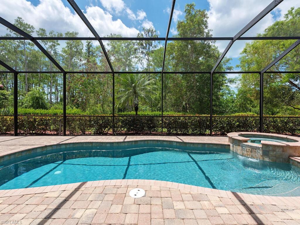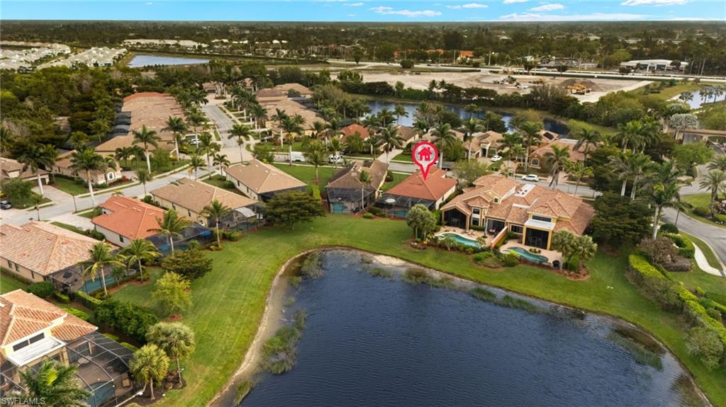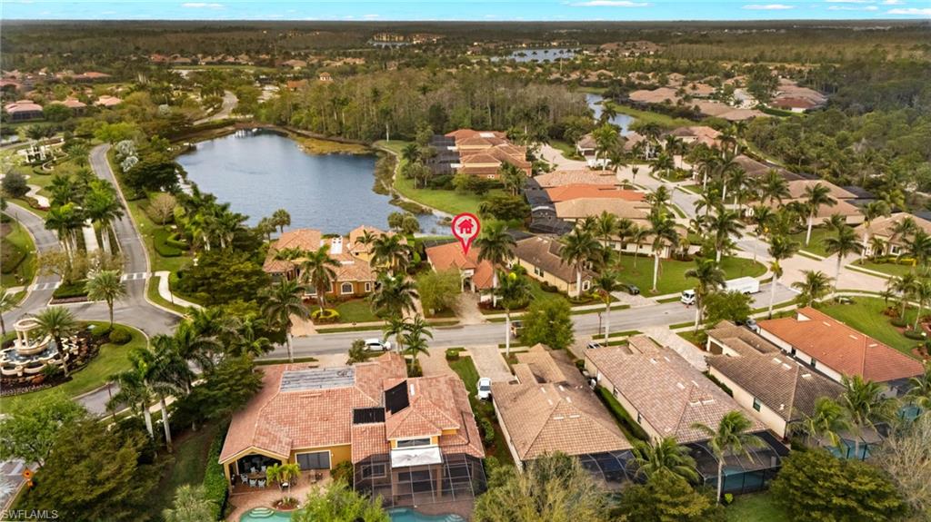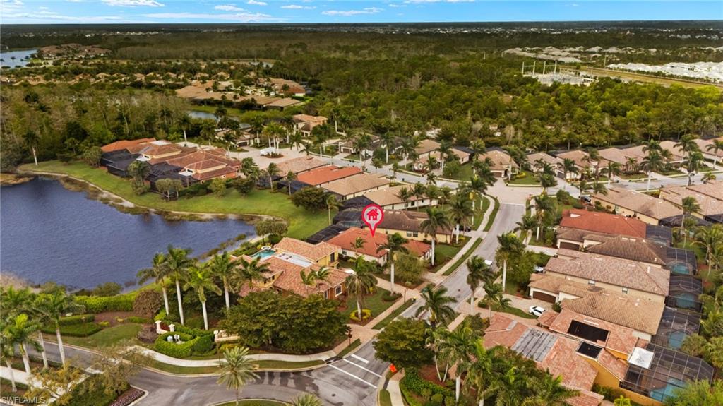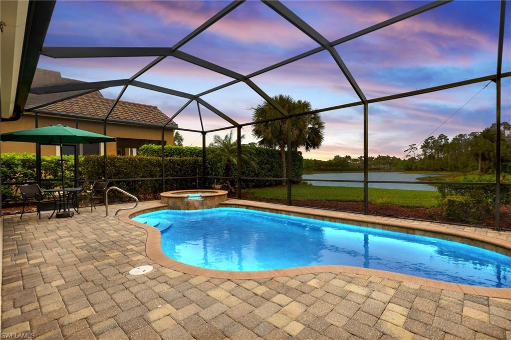 PEACEFUL, QUIET, GORGEOUS WATER VIEW home with FULL TPC Treviso Bay golf membership sold Turnkey! Welcome to 9522 Piacere Way, a meticulously maintained 3-bedroom plus den (or 4th bedroom), 2-bathroom pool home situated on an exceptionally beautiful lot with water and preserve views in the sought-after Treviso Bay community. This lot is situated near the Piacere Way cul de sac providing a tranquil location just walking distance to the 5 star Treviso Bay amenities. This charming residence offers a thoughtfully designed floor plan which brings abundant natural light, welcoming foyer, guest rooms and den are separated from the primary suite, large kitchen with stainless steel appliances and relaxing living room which invites you to the peaceful outdoors! This home boasts 2,200 sq ft of easy living! The owners have even installed a drop down electric screen to project your favorite movies or streaming your favorite series! Tile flooring is cut on the diagonal and continuous throughout the home, no carpet! Once you enter the foyer your eye is drawn all the way to the calm eastern exposure lanai offering an outdoor kitchen with wine cooler and gas grill, in ground pool/ spa, relaxing patio furniture, mindfully placed landscaping and lighting beyond the screened in cage! Move in ready this home is sold turnkey with everything you could think of~ just bring your suitcase! This lovely home comes with a TRANSFERABLE TPC GOLF MEMBERSHIP to enjoy! This entitles you to play the many TPC designated golf courses around the United States! Treviso Bay's Five Star amenities are second to none boasting the Villa Rilassare amenity center La Brezza resort style pool and full bar, professionally staffed fitness center, tennis courts, bocce, pickle ball, basketball and full spa services. The spectacular Treviso Bay TPC Golf clubhouse has two dining rooms, library, TPC pro shop, luxurious locker rooms and a breathtaking terrace over looking hole 9 and 18 to enjoy cocktails or fine dining. Just 5 miles away from Naples beautiful sandy beaches and fabulous 5th Ave shopping and restaurants!