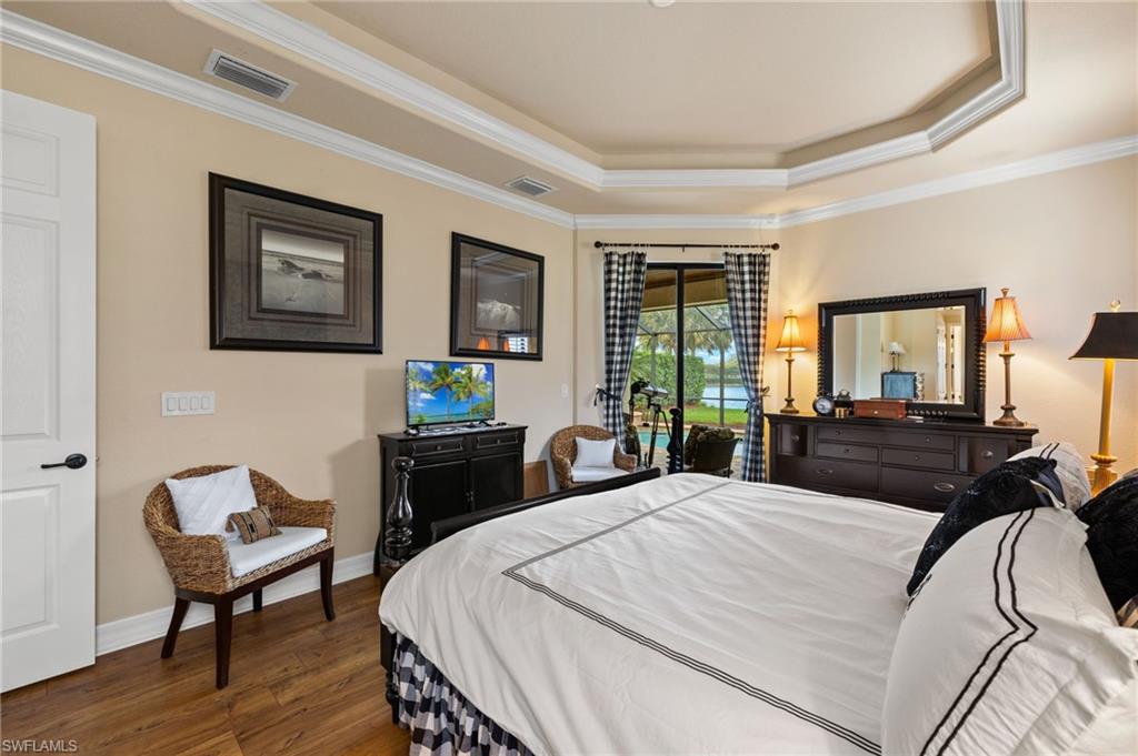 The view upon entry Welcomes you to Paradise with deeded TPC Golf Membership! Lovingly referred to as “Two Lakes Lodge”, this gorgeous extensively upgraded Bougainvillea model with 3 beds/den or 4 bed, 3 ensuite baths and Primary is its own wing with gorgeous views of the lake and wildlife. Sold turnkey, this Tuscan Style home sits in one of the best kept secrets in Naples. Treviso Bay is a well-managed, well-maintained community with a budget conscientious board. Recent upgrade newsletter proves statement. This guard gated entry homestead has Basic Comcast currently under contract, community amenities including a Huge club house and an exercise/SPA/pool/bar resort atmosphere complex with Bocci, tennis and pickleball, not to mention it’s beautifully landscaped. With soaring ceilings and abundant natural light, this home is loaded with upgrades, from multiple eating areas indoor and out, outdoor TV entertainment with surround sound and Leader’s Outdoor furniture with brand new upholstered cushions, natural gas whole house Generac Generator with maintenance plan from original installer, Condee Electric a trusted staple in Naples for decades, you couldn’t ask for more….oh but there is… New LG Fridge (designer ice) 2024, quartzite countertop replacement throughout, with waterfall kitchen panels (2024), Garage upgrade for your luxury vehicles, includes AC, EV charger, custom cabinetry and epoxy flooring (2024). Closet upgrades are fitted for the craftsman/woman who enjoys their indoor/outdoor choices for working with your hands (2024). STORAGE GALORE, 700 LB lifts in garage, workbench, and mega lighting for good visibility. New natural gas pool heater 2023, SILENT Bosch dishwasher 2020…this list is long! (see details) This executive home comes with a TRANSFERABLE TPC GOLF MEMBERSHIP to enjoy! This entitles you to play the many TPC designated golf courses around the United States! Treviso Bay's Five Star amenities are second to none! Don't miss out on this dream home in SW Florida a premier destination with luxury living!